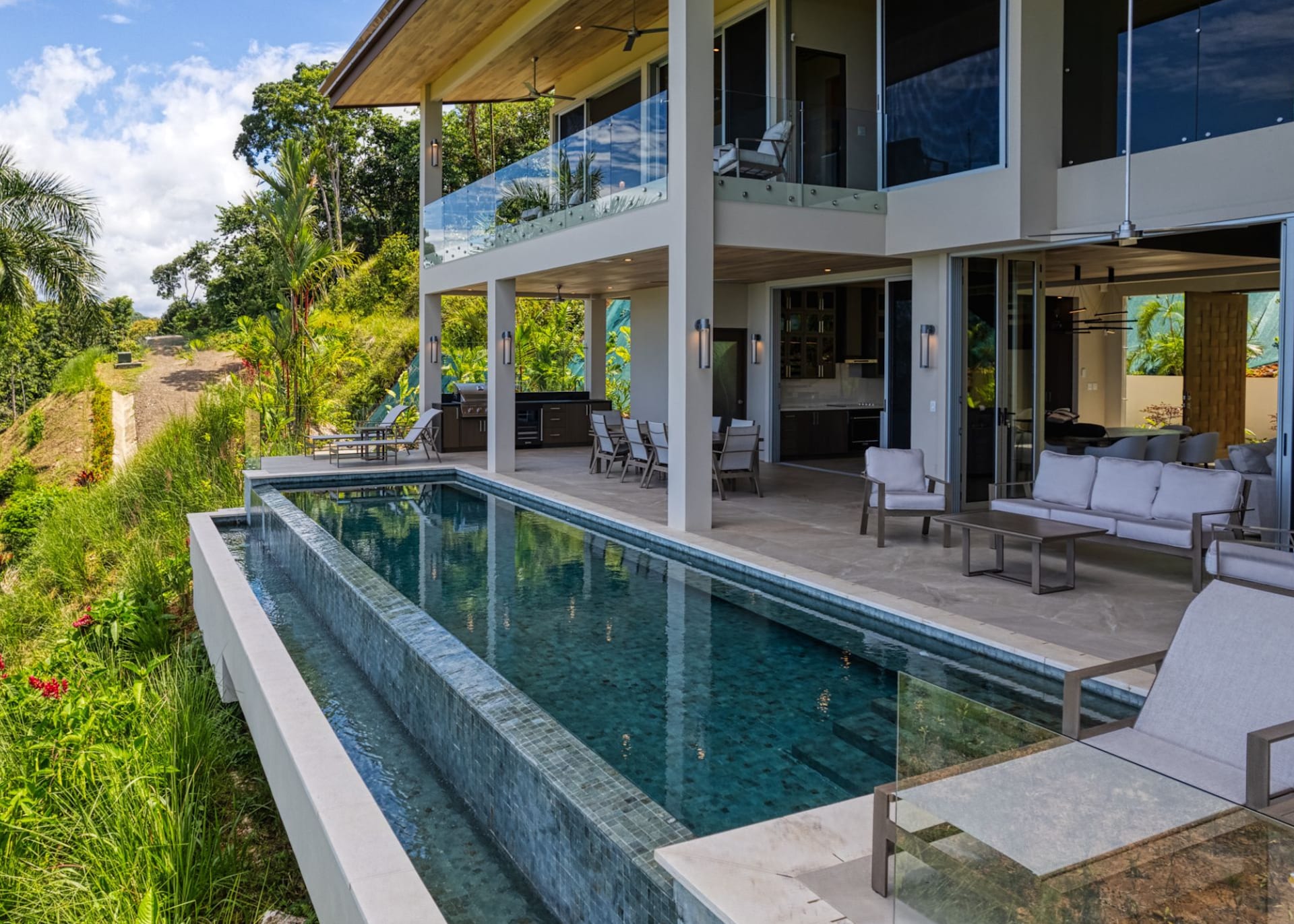 Discover the ultimate tropical paradise at Casa Sulit, nestled amidst the vibrant beauty of San Martin, Costa Rica. The infinity pool immerses you in the raw magnificence of the jungle spanning toward the glistening ocean, creating a haven of serenity.