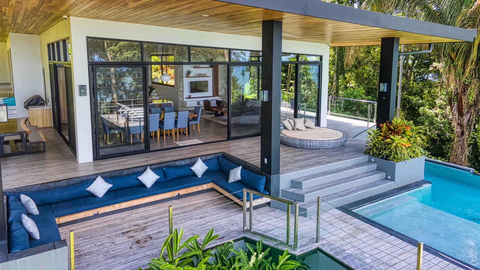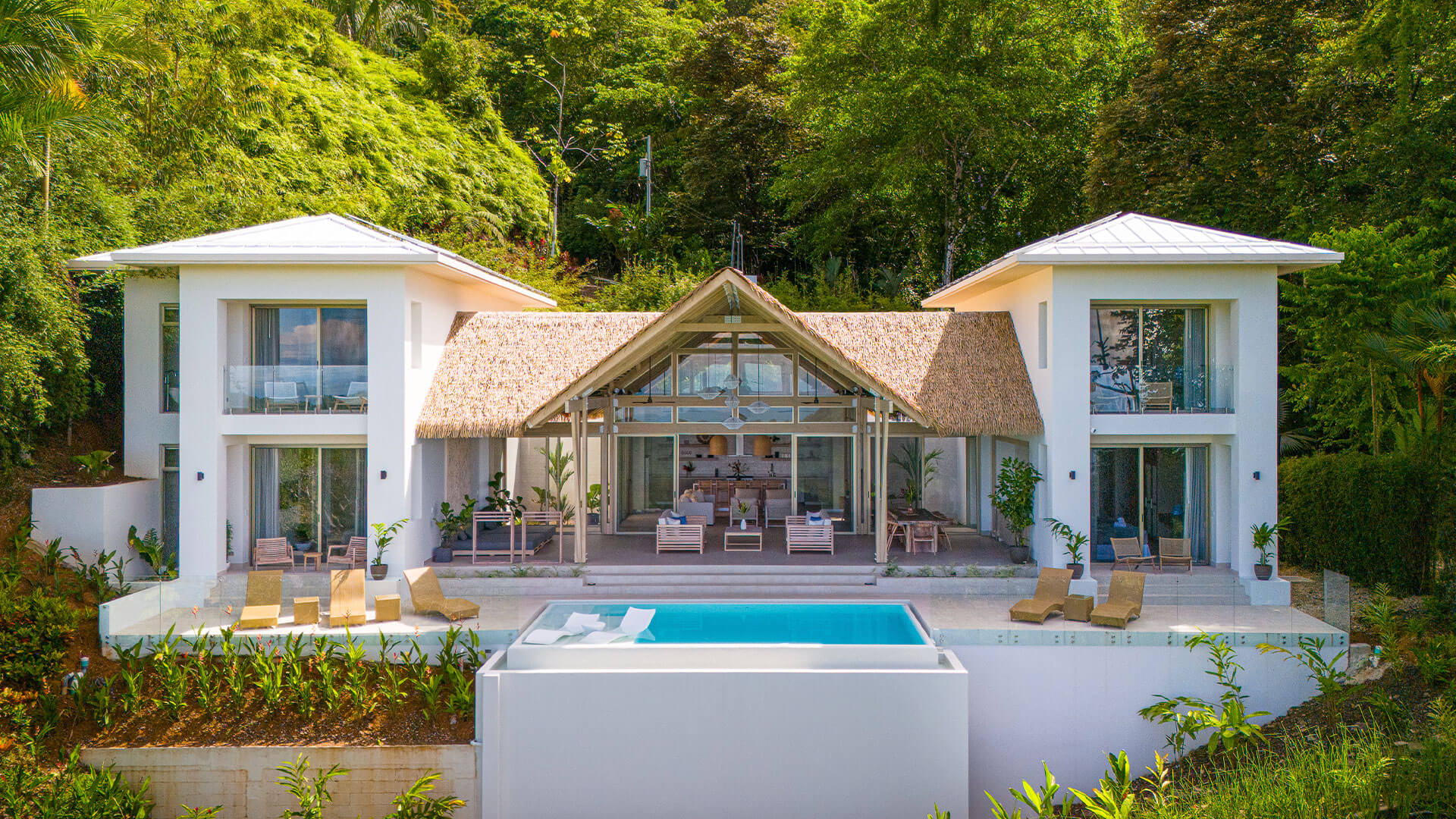 Set across more than four acres with expansive ocean and mountain views, this estate is not defined by its scale alone, but by how intentionally it integrates with the surrounding landscape. The architecture is designed to coexist with the environment, allowing the jungle, light, and natural elements to shape the experience of the home.