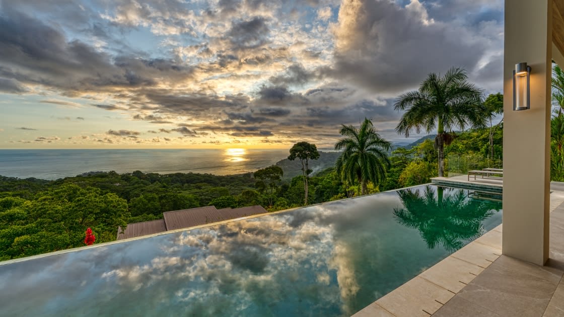 As you step into Bella Vista, you'll be enchanted by the entryway adorned with a cascading waterfall, offering an unrivaled tropical experience. In this exclusive enclave, where the mountains embrace the ocean, you'll discover one of Costa Rica's most precious gems—an expansive coastal view that will leave you spellbound.