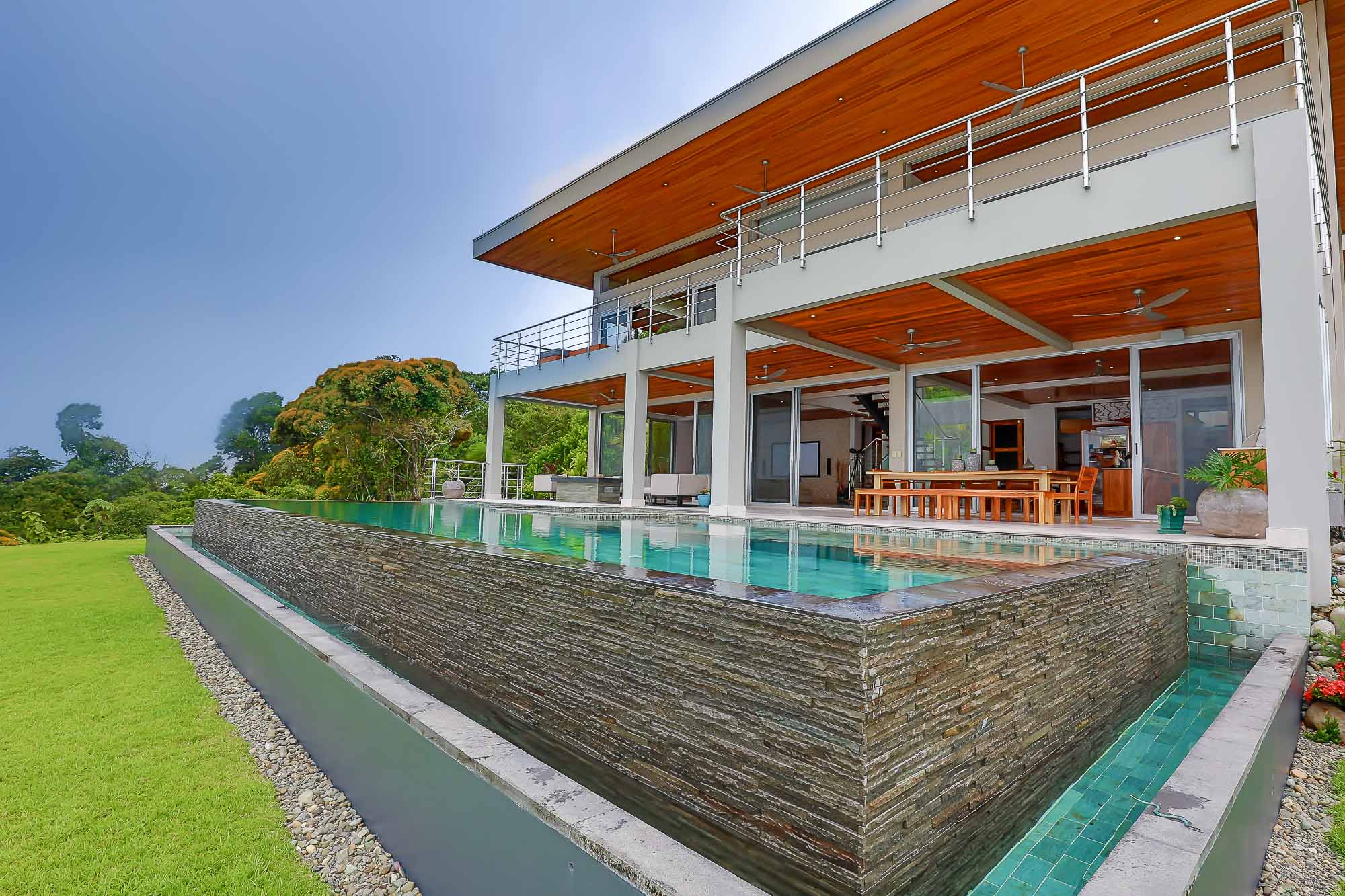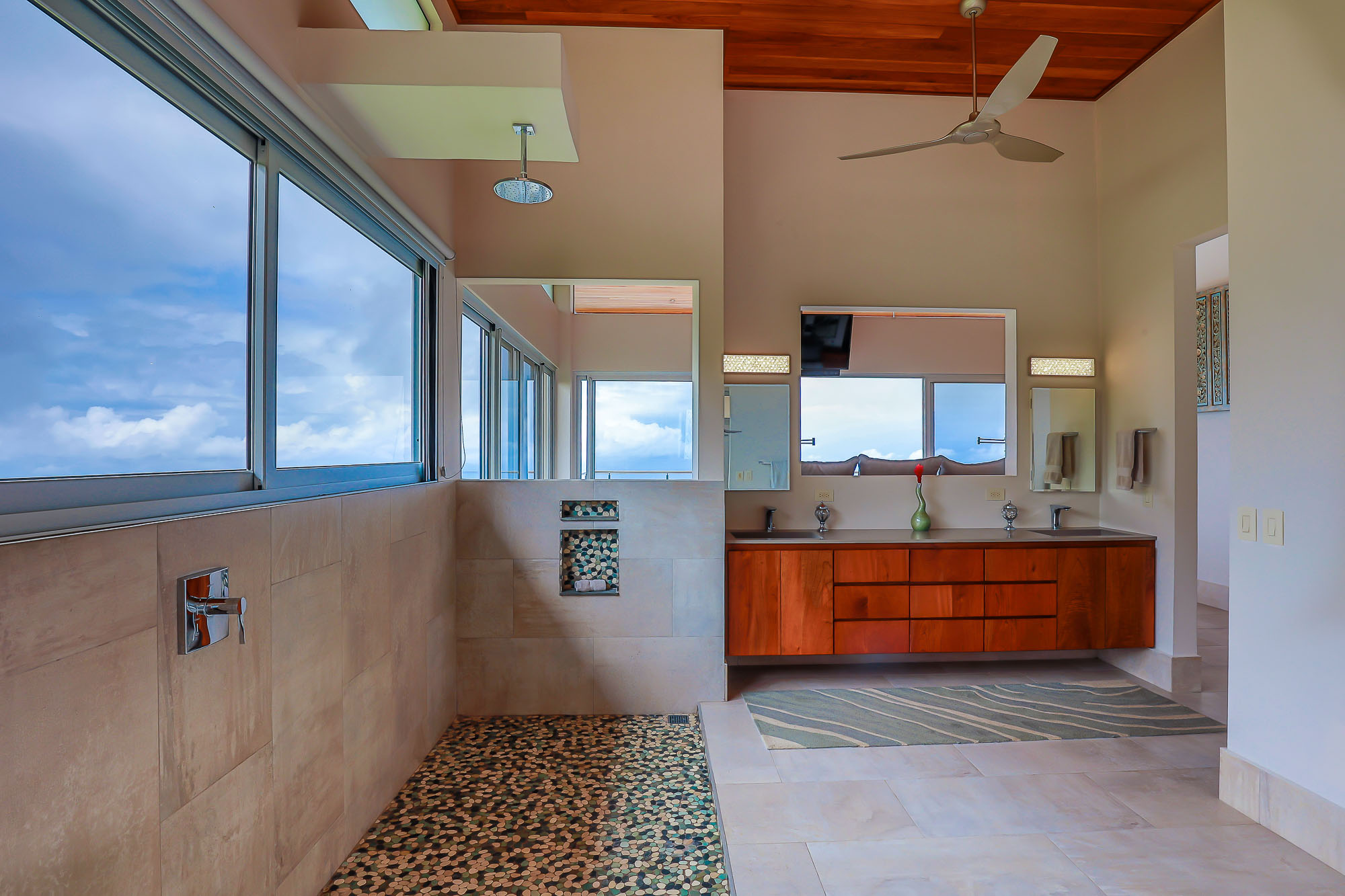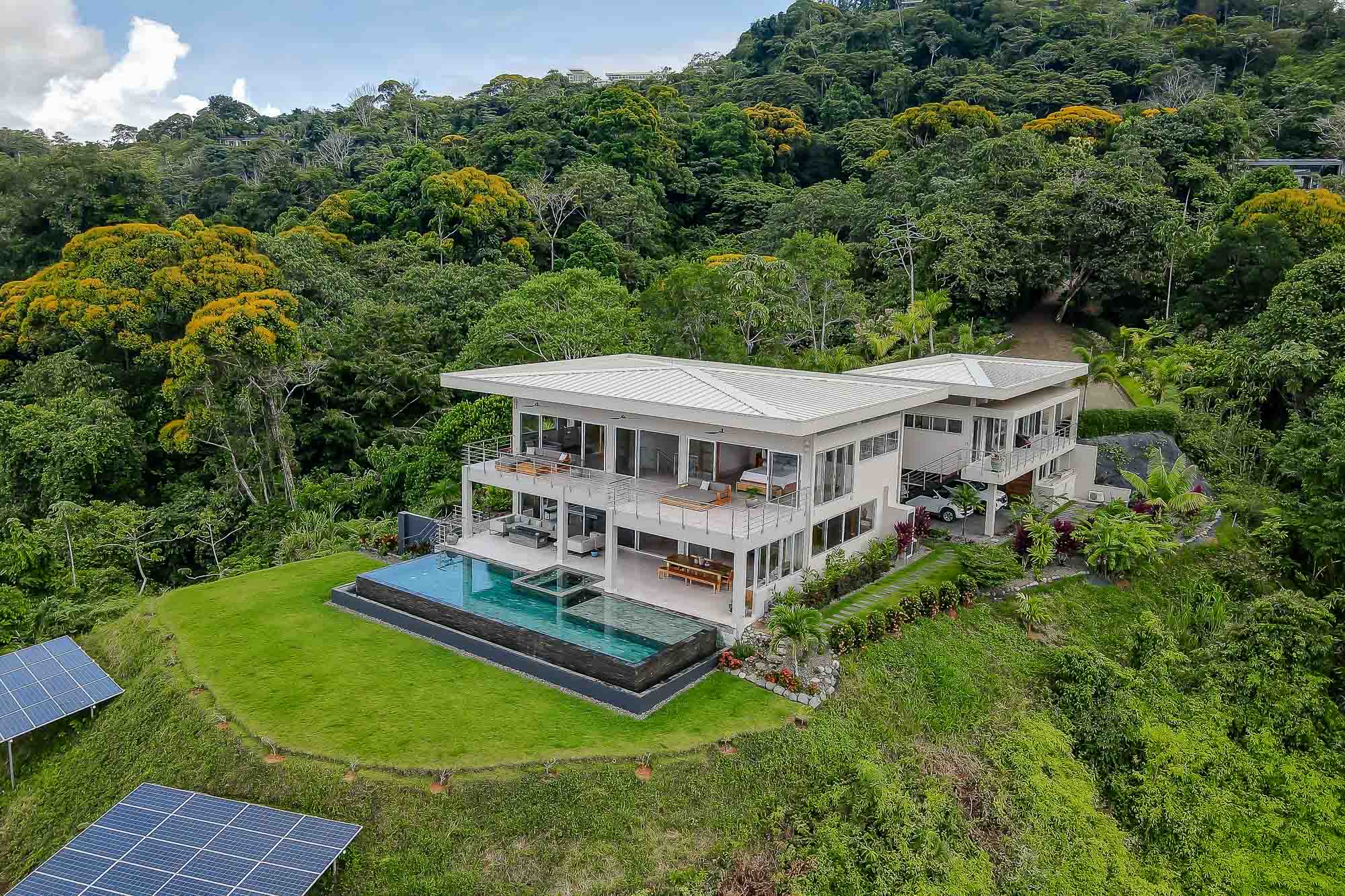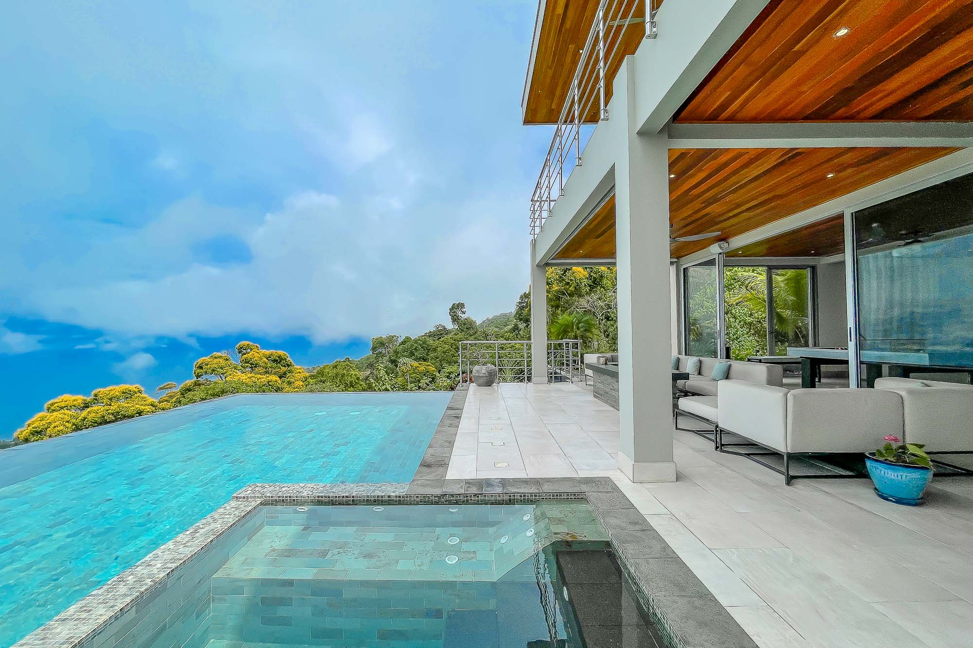 With a little over 8 acres of property, Masterful Tropical Elegance is a modern villa that crowns a flat section of ridge that reaches out towards the Pacific coast. The property is located at the very end of a side road and is surrounded by hundreds of acres of green zone, which protects the property's long term value, privacy and view integrity to the fullest degree.