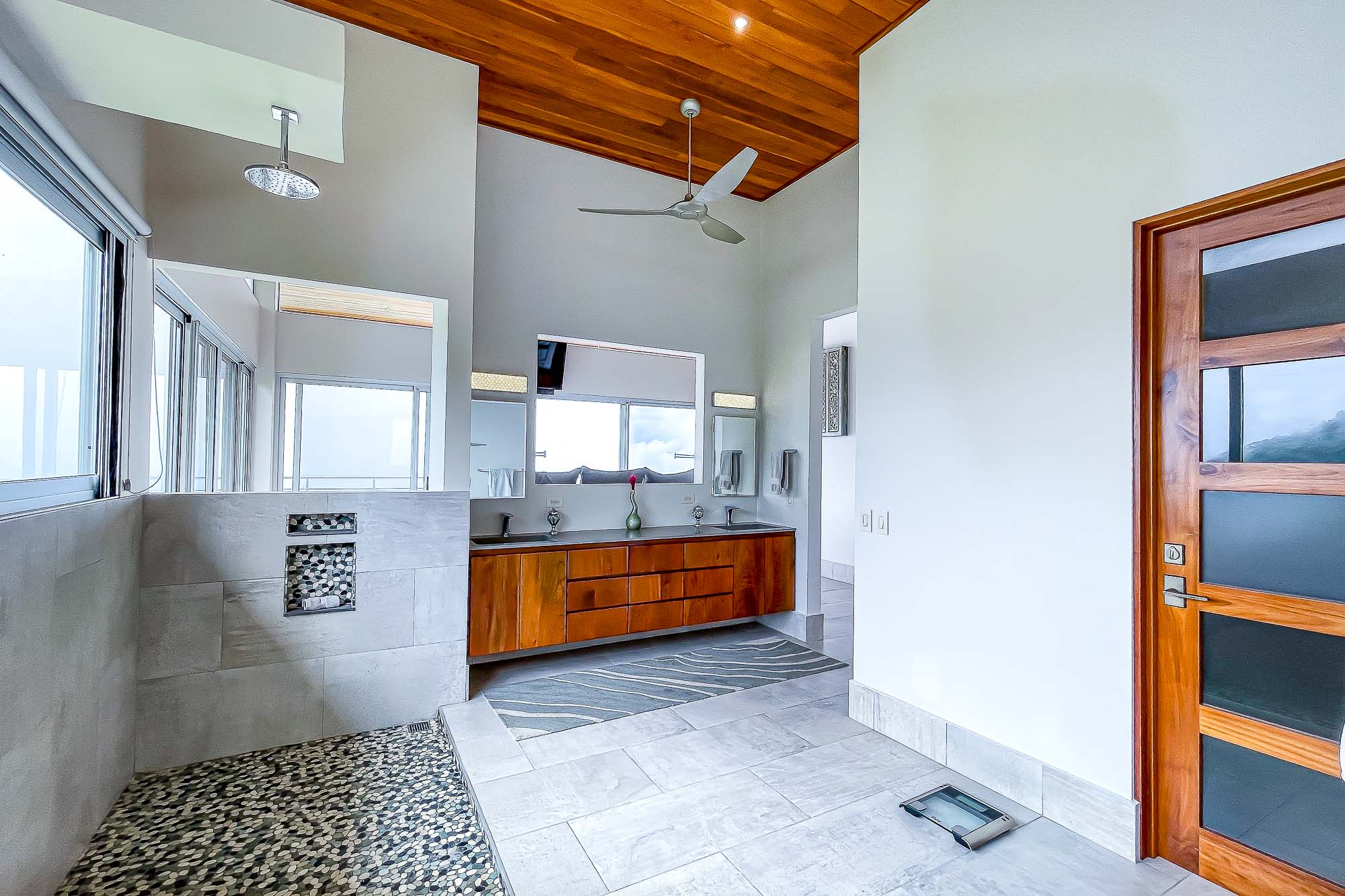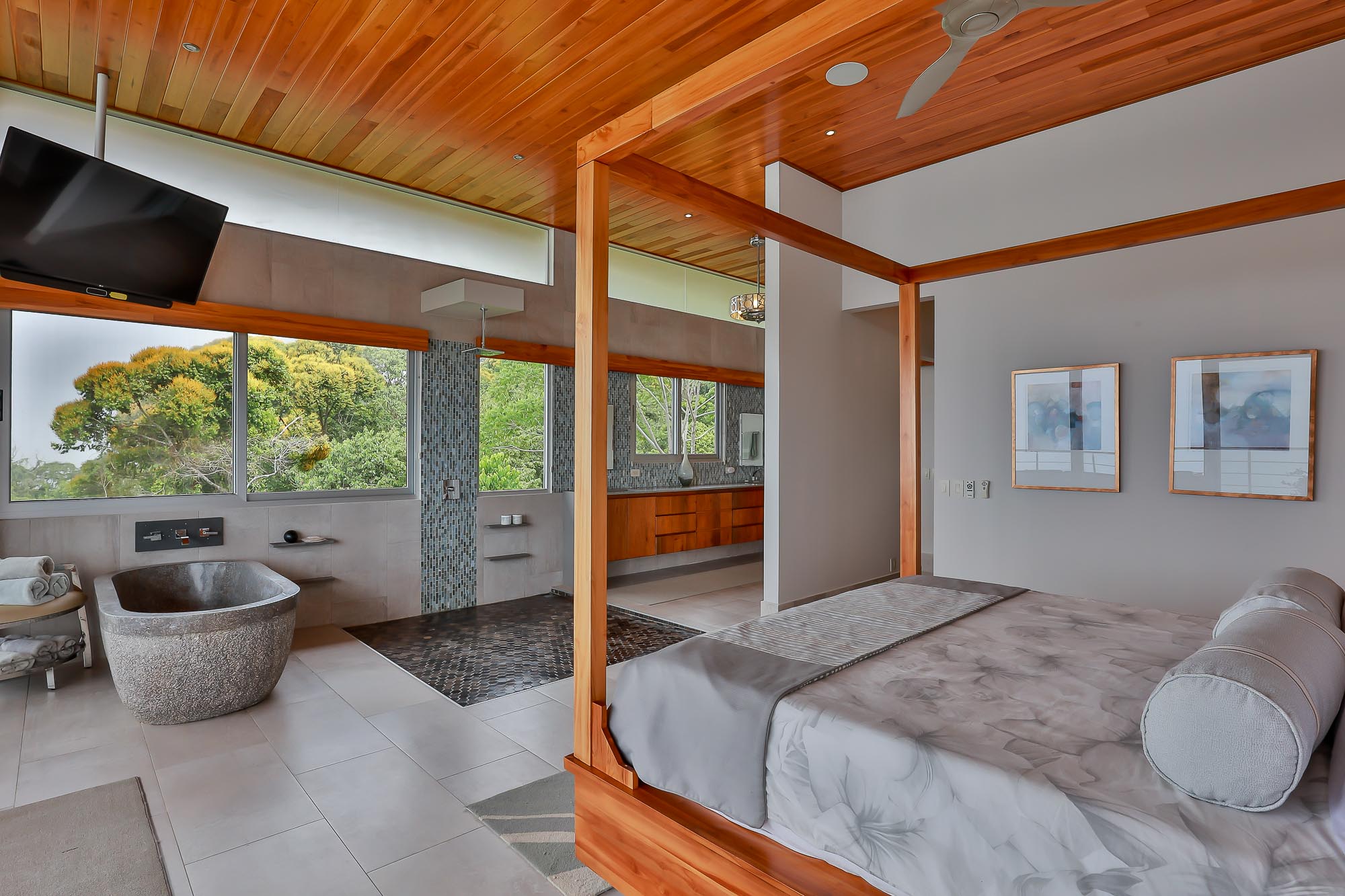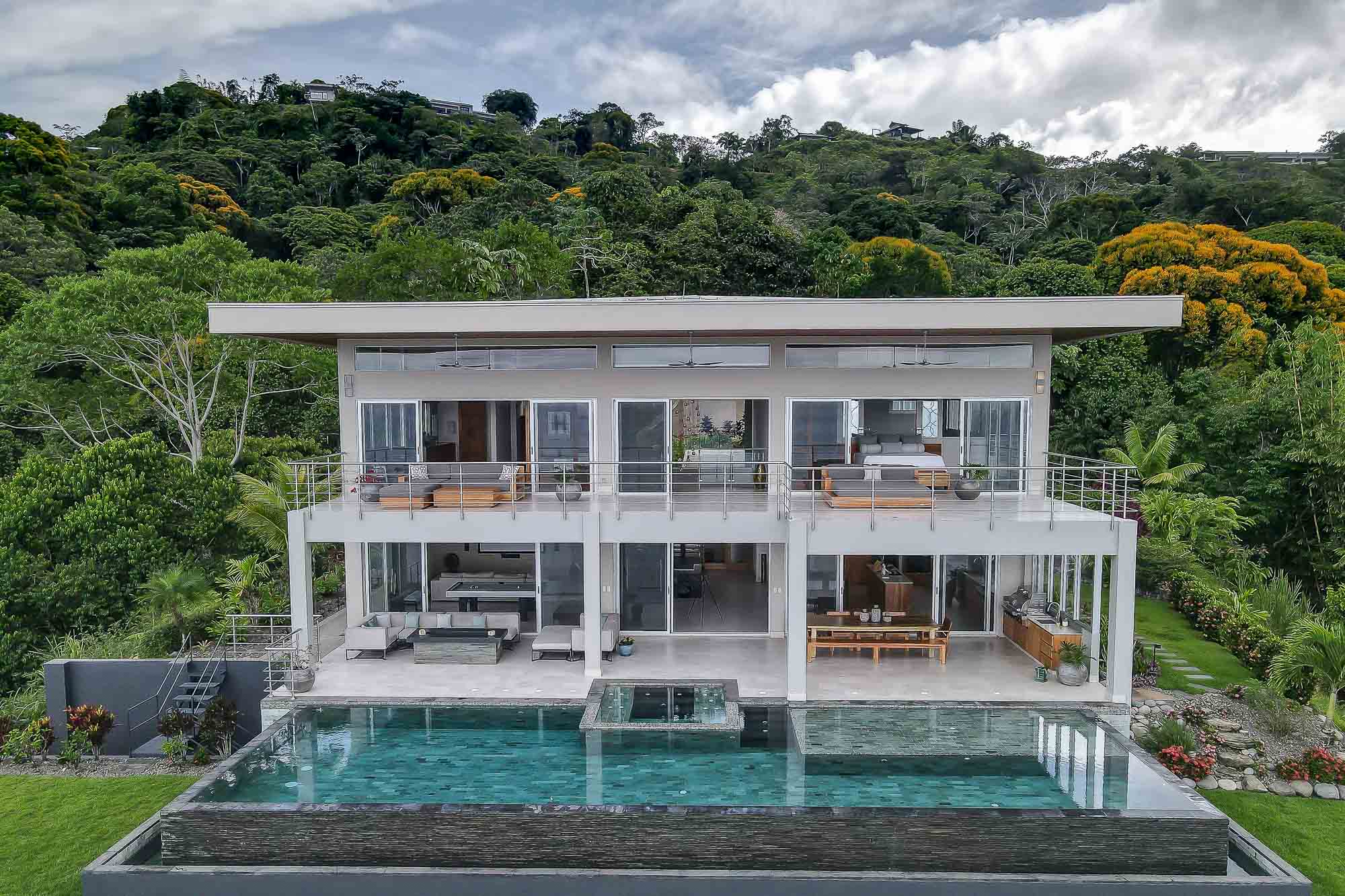 With a little over 8 acres of property, Masterful Tropical Elegance is a modern villa that crowns a flat section of ridge that reaches out towards the Pacific coast. The property is located at the very end of a side road and is surrounded by hundreds of acres of green zone, which protects the property's long term value, privacy and view integrity to the fullest degree.