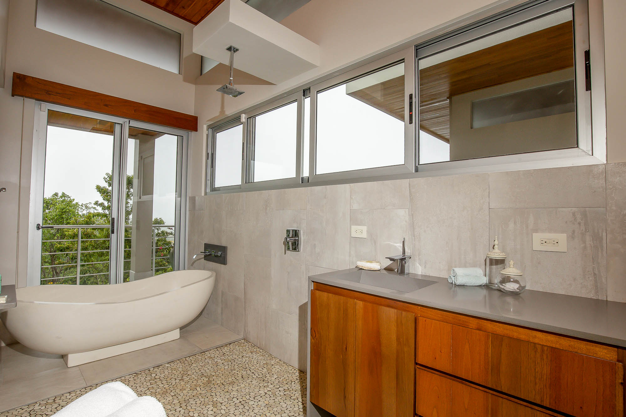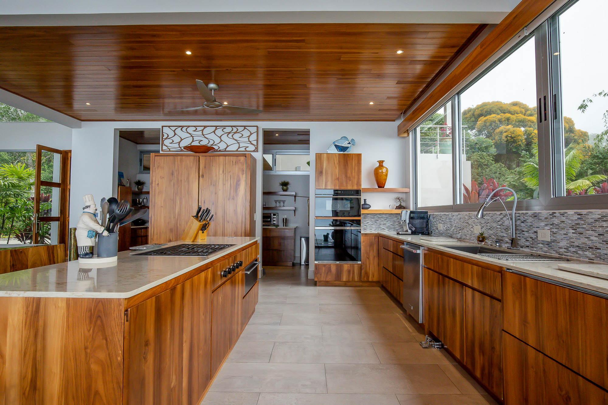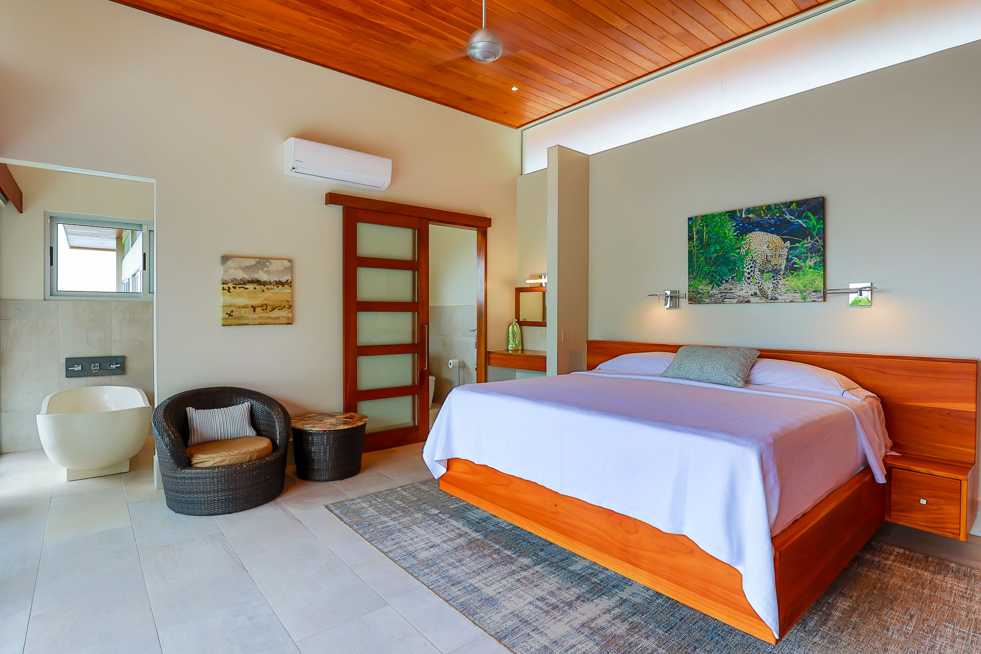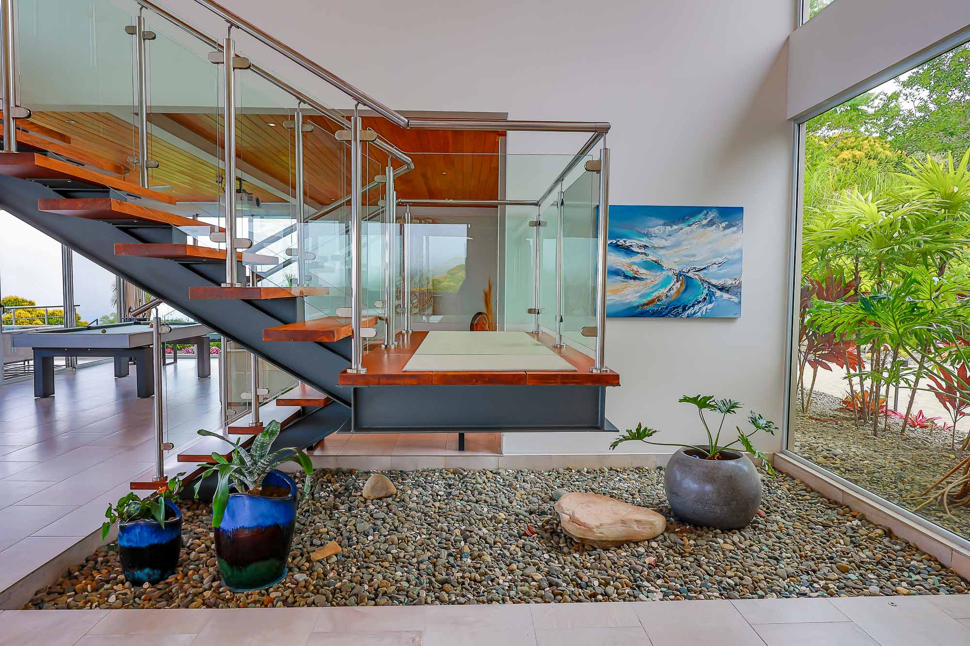 With a little over 8 acres of property, Masterful Tropical Elegance is a modern villa that crowns a flat section of ridge that reaches out towards the Pacific coast. The property is located at the very end of a side road and is surrounded by hundreds of acres of green zone, which protects the property's long term value, privacy and view integrity to the fullest degree.
