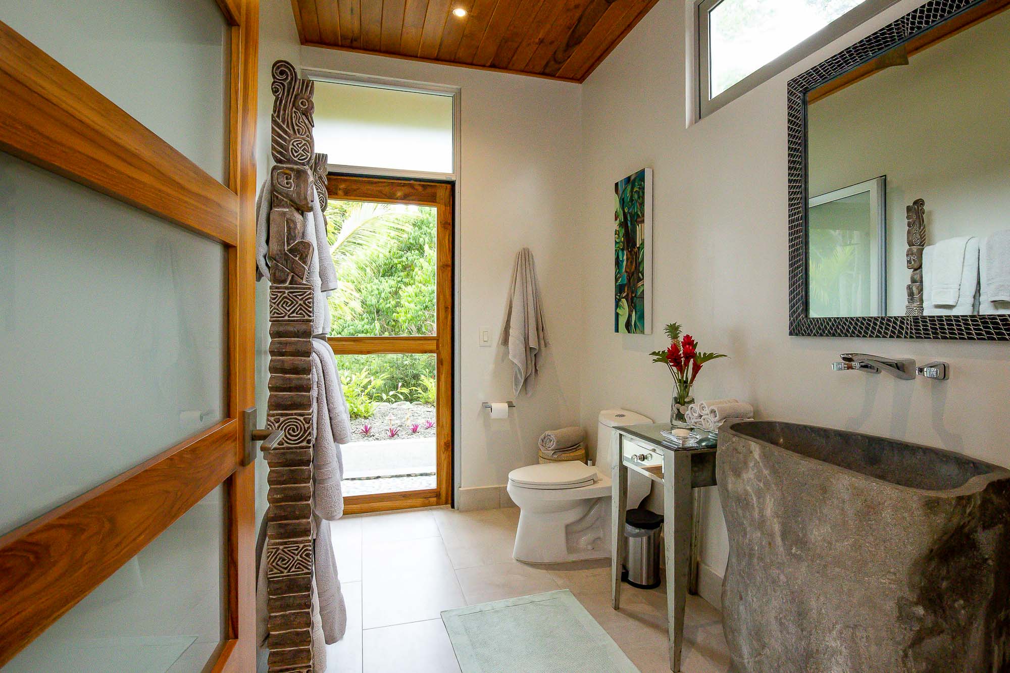 The main section of the estate has top of the line details with imported and custom made finishes: Wolf and Sub Zero appliances, fine quartz countertops, custom teak cabinetry, imported plumbing fixtures from Kohler and Roehl, Bali imported stone tubs, sinks and pool tiles, aluminum handrails from Greece, and many other discerning touches. All of these finishes and fixtures blend brilliantly into one functional piece of habitable art.