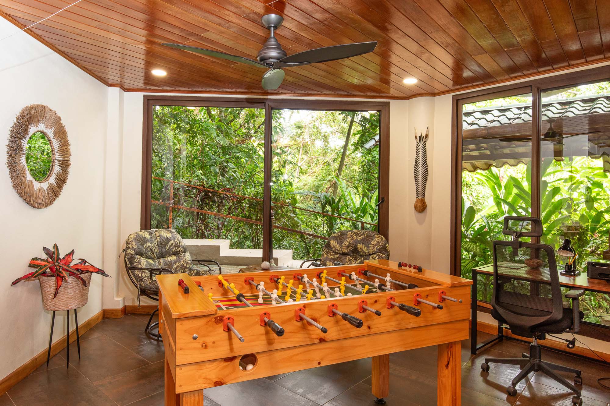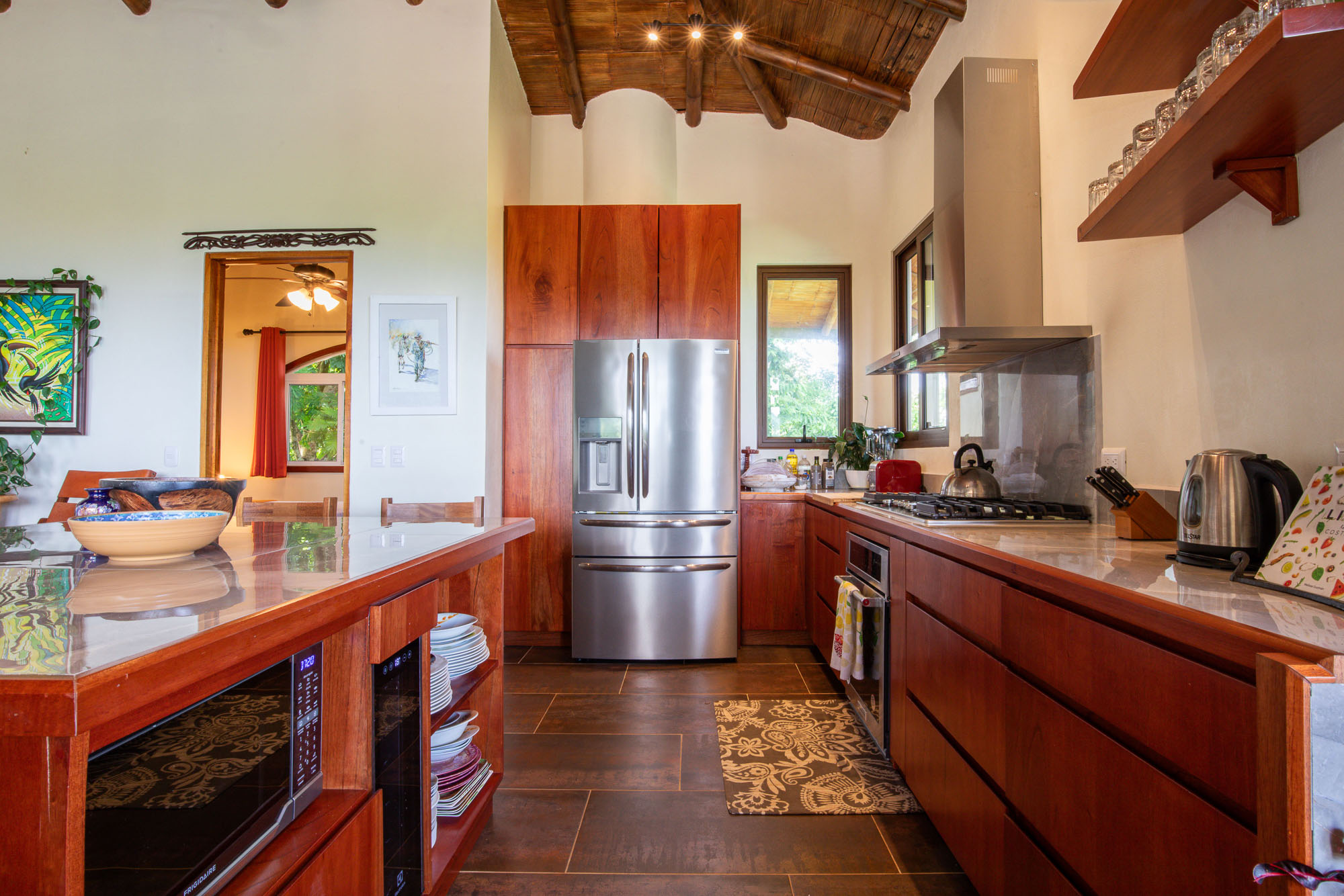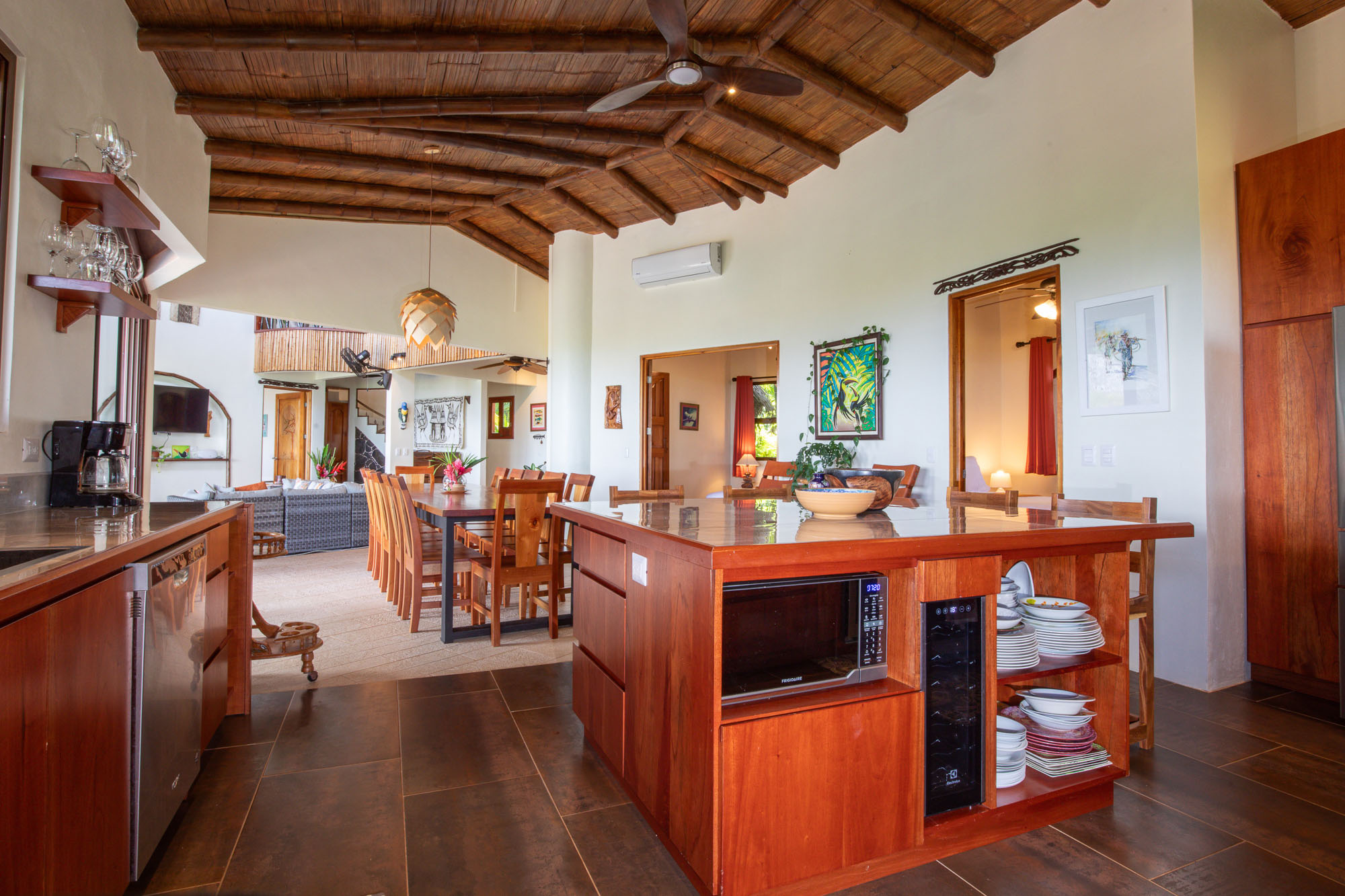 The Villa's decor of local colors and art are perfectly suited to the nature of the home. As far as the necessities, the Villa is equipped with satellite, smart televisions, fiber optic internet, along with eight extenders. You will be ensured that with this abundance of luxurious amenities, you will find plenty of places to relax while taking in the views of one of the most beautiful landscapes and ocean scapes that Costa Rica has to offer.