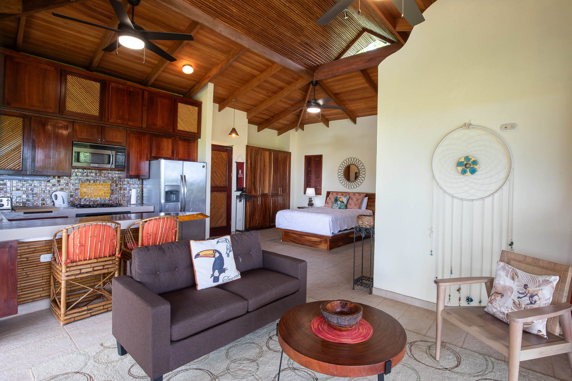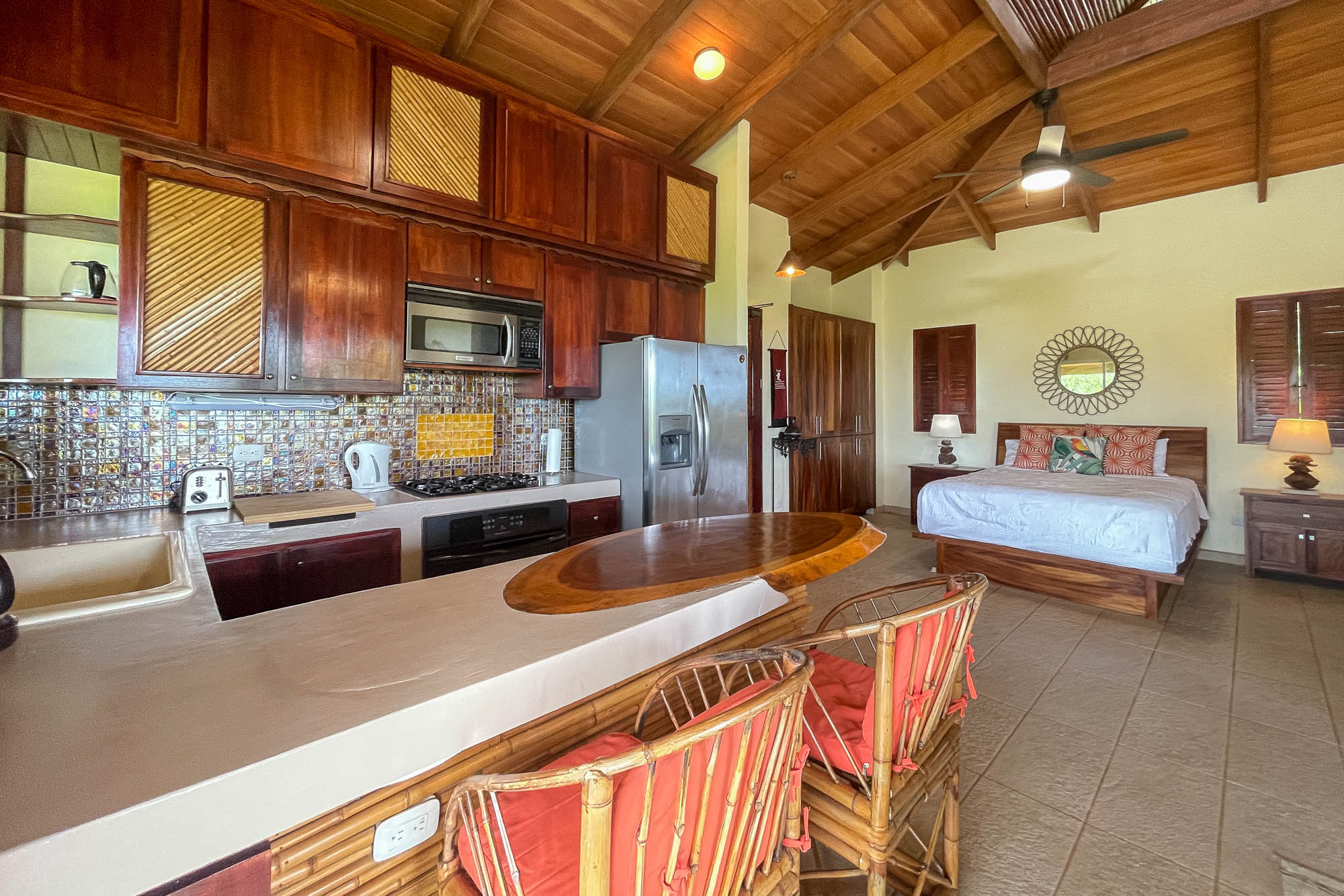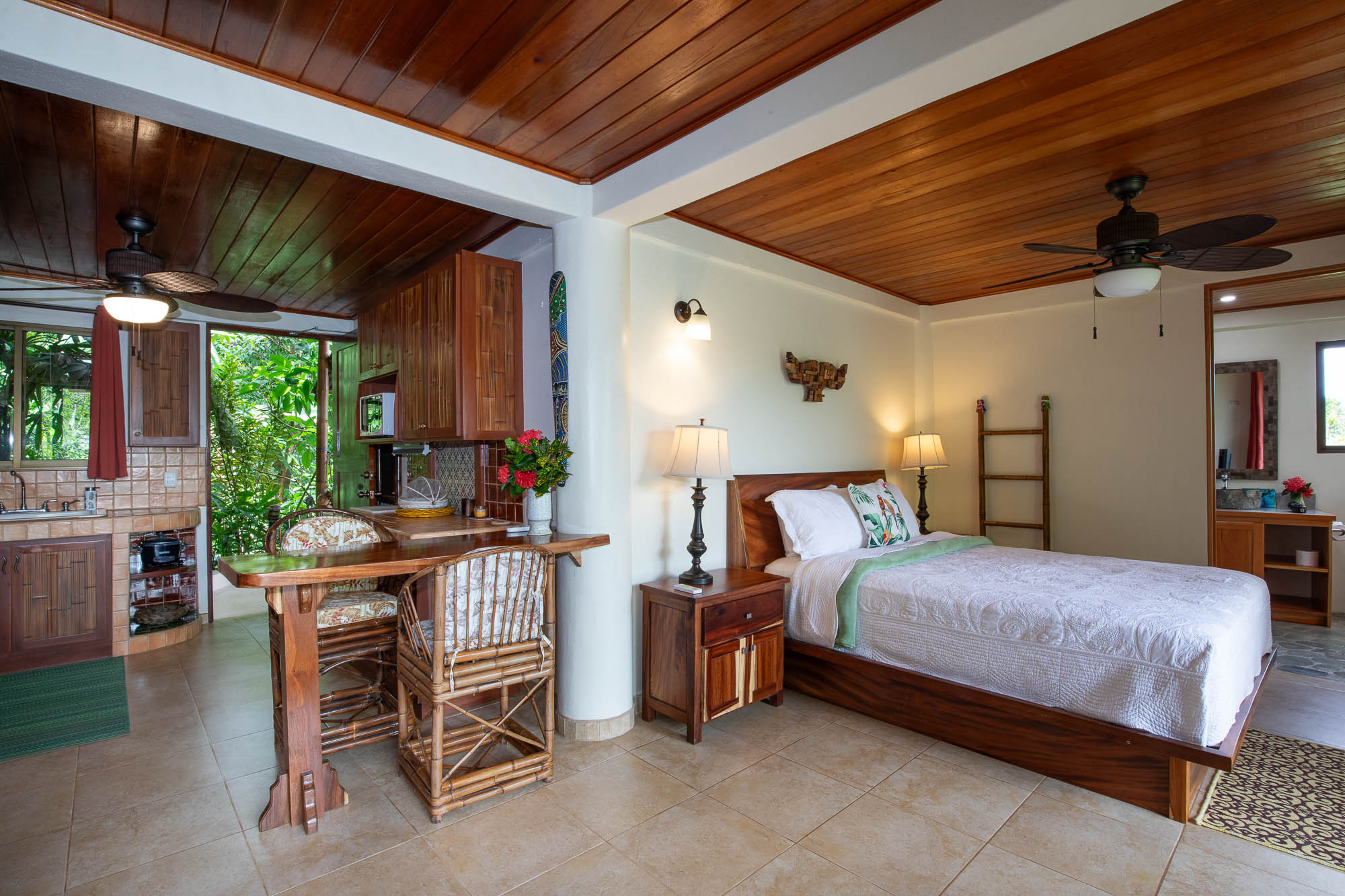 Leaving the games room, you will continue to follow the garden walkway where you will find two fully-equipped Casitas, each with its own kitchen, bathroom, and terrace. You can pick your breakfast papayas, only an arm's length away. These two suites are perfect for those who need some privacy!! One of these suites would also be perfect for a property manager if that is what you require.
