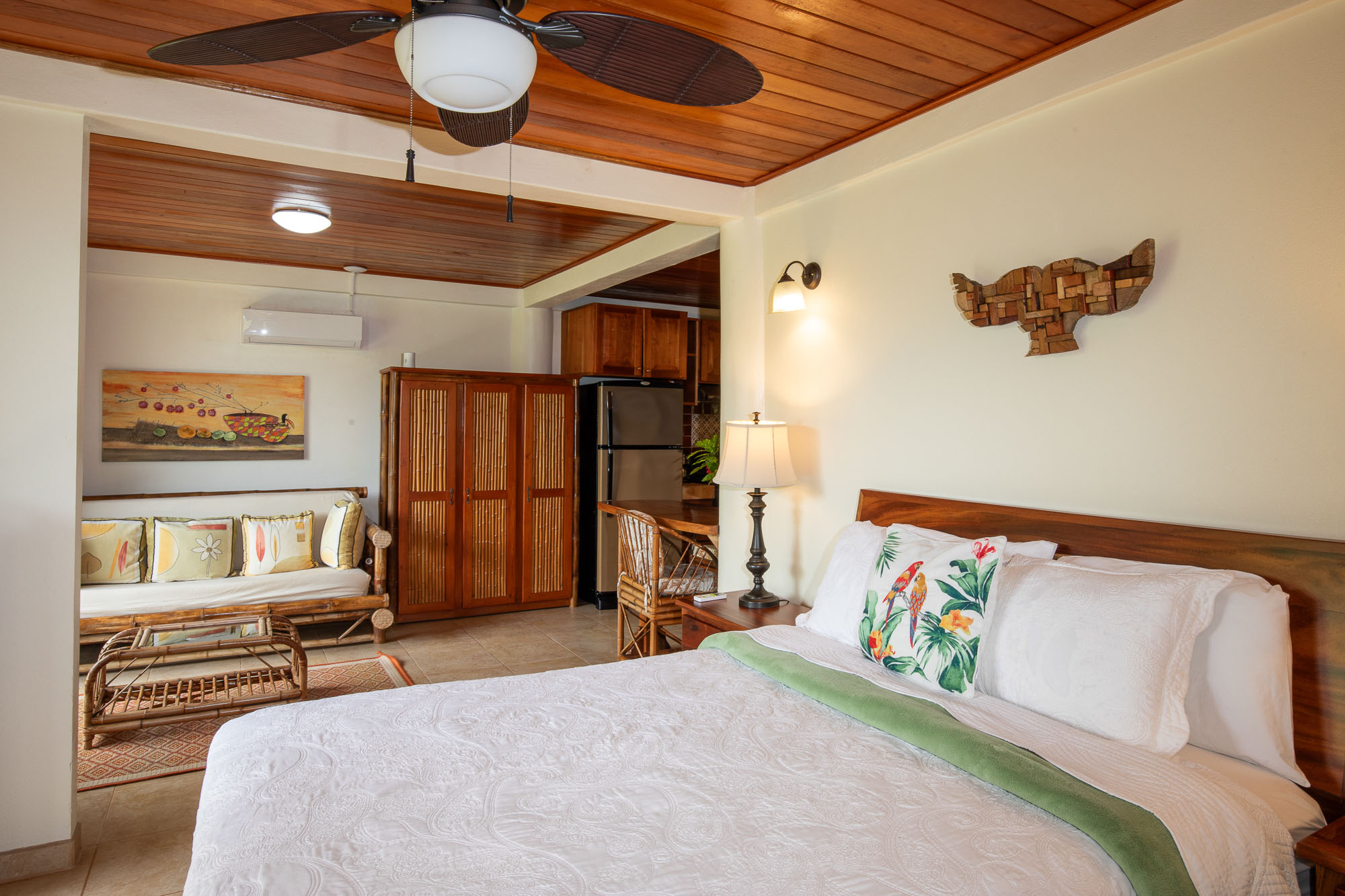 There are two recently, constructed Garden Suites, tucked out of the way, at eye level with lemon, lime, and banana trees, all at arms-length. If you love nature, you will love these suites. Each garden suite boasts an ensuite plus, new King beds, and a lovely, shared kitchenette.