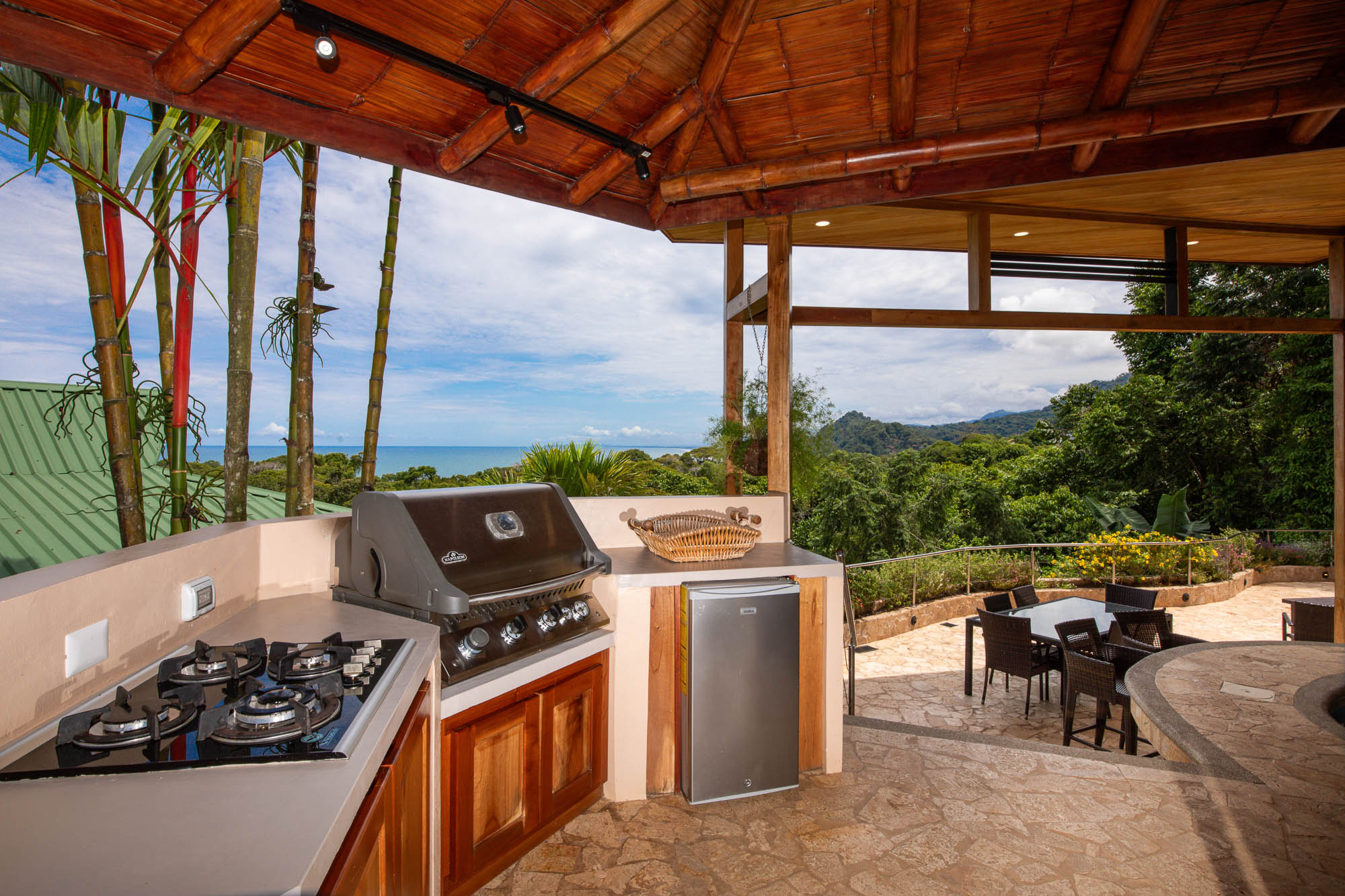 Just off the entryway, the newly renovated kitchen awaits you. A large island provides the perfect working area for the chef in your family. All new modern appliances are at your fingertips. A dining table for 12 can be expanded to accommodate 16 guests. The island can also accommodate four additional stools for the children. Of course, all this comes with never-ending views of the ocean. Directly off the main kitchen, you will find an outdoor kitchen with BBQ, fridge, and sink....all with an unstoppable view.