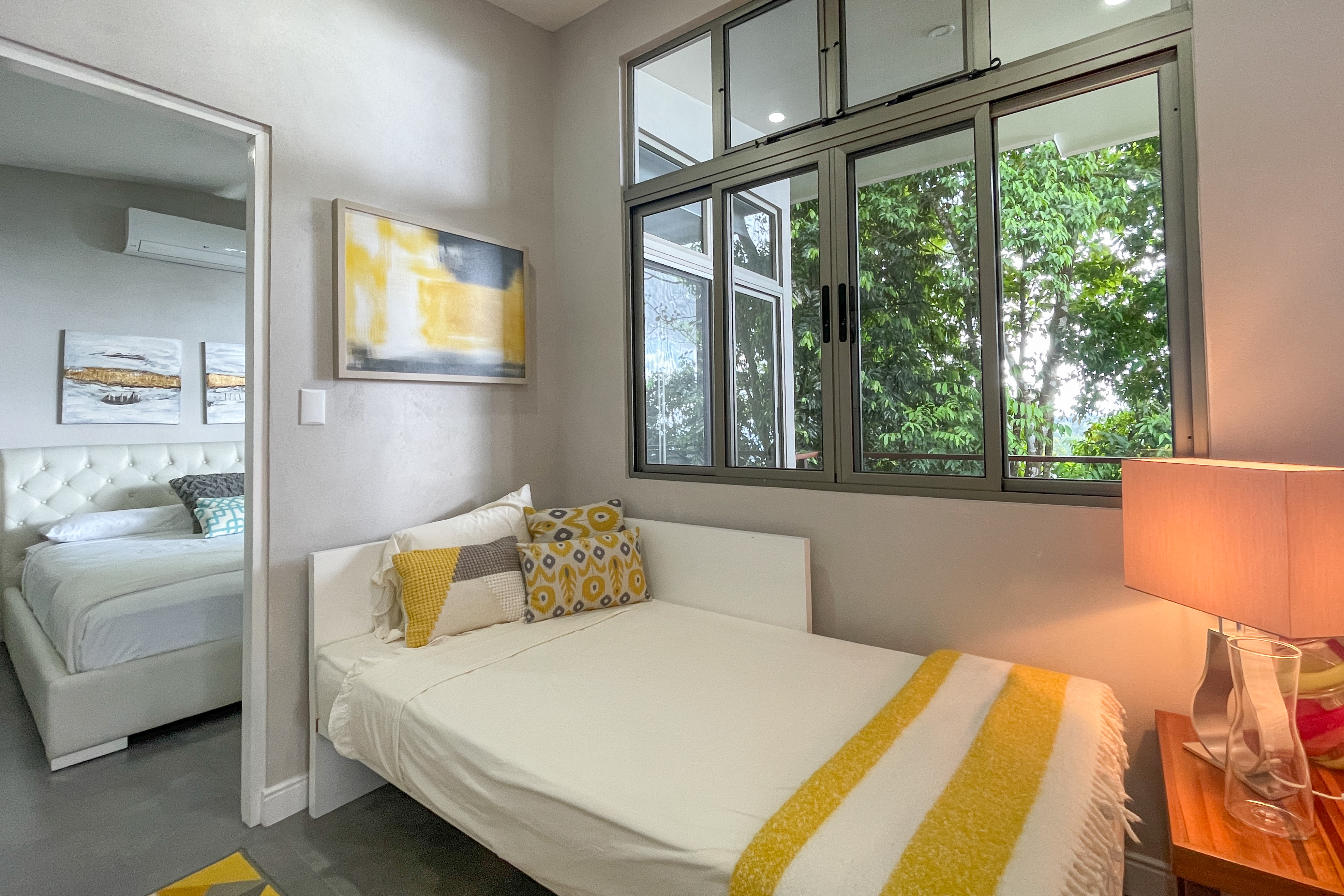 Upstairs are two, corner master suites which are full of light, have generous, ocean-facing terraces, well-designed closet spaces and beautiful en-suite bathrooms. Between the two bedrooms and at the top of the stairwell is nice reading area (with day bed), also with stunning views.