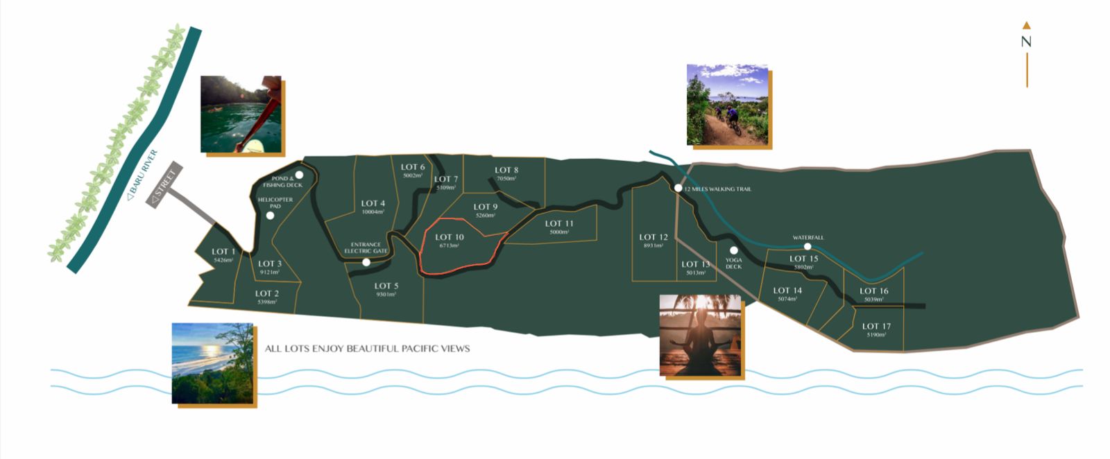 Vista Dominical Estates, a limited 17-lot gated development, features not only a private jungle reserve with hiking trails, three waterfalls, creeks, and rivers but also a communal pond with a charming dock. Additionally, a helipad offers a convenient alternative for those wishing to fly directly from SJO airport to their property, avoiding traffic.