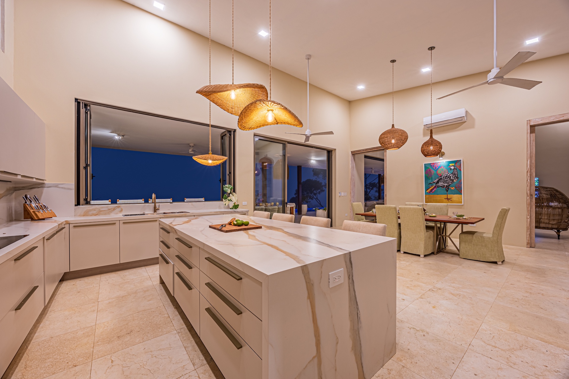 The kitchen in Casa Citrina is designed with both comfort and practicality in mind, featuring top-tier appliances and a well-stocked pantry. You can enjoy meals prepared in the outdoor kitchen for a tropical experience sure to impress.