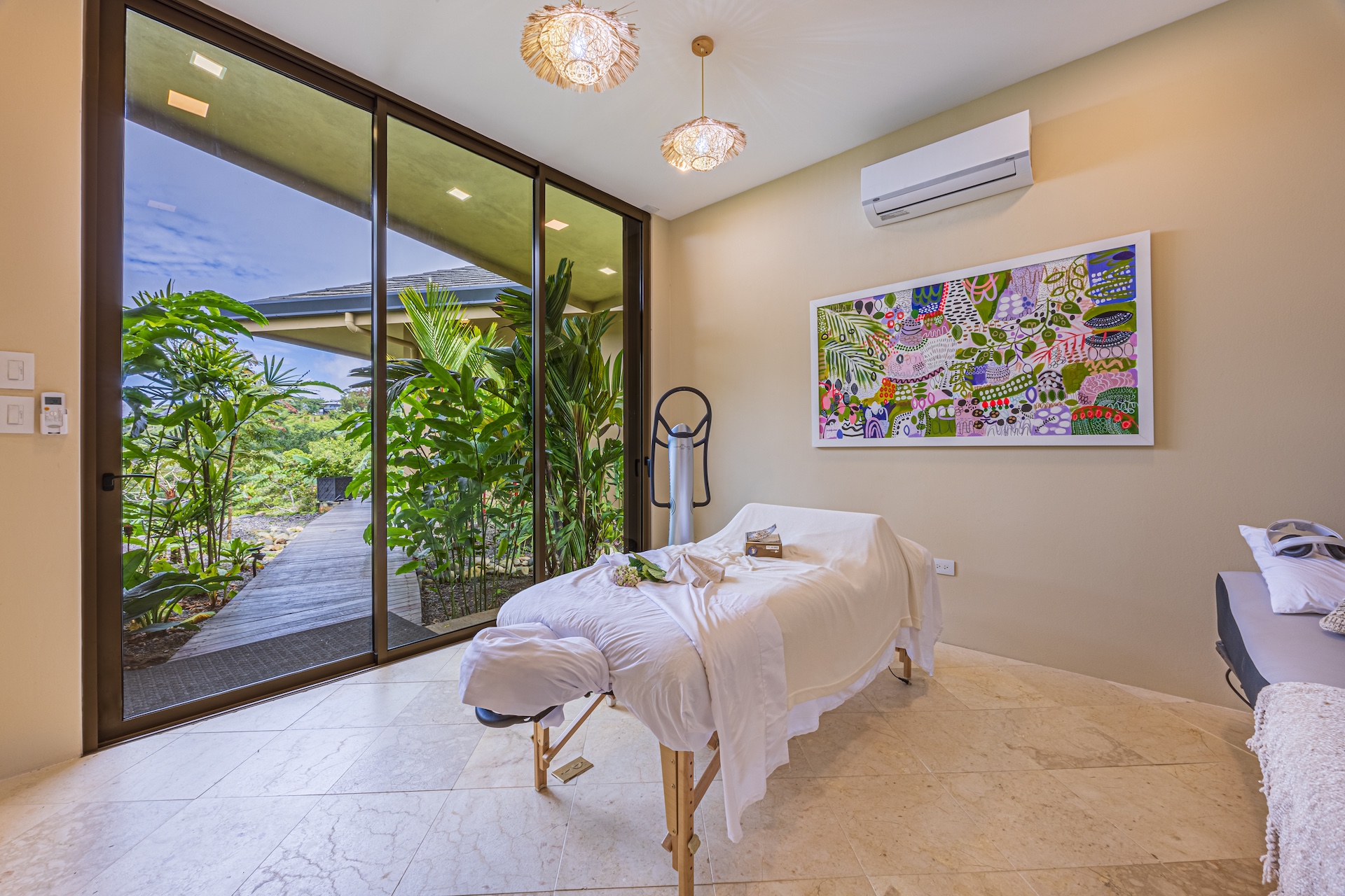 The estate's lush grounds feature tropical gardens filled with flowering plants, towering trees, and even a small coffee plantation. A luxurious greenhouse with grow lights and an irrigation system provides the opportunity to grow fresh produce year-round. Sustainability is key at MU, and both residences are equipped with solar panels and batteries, hydrogen water systems, structured water systems, and multiple water tanks, including a rainwater tank. The estate's dedication to sustainability doesn't end there--an advanced security system, including cameras, ensures privacy and safety, while Starlink and fiber-optic internet keep you connected to the world no matter how far you feel from it.