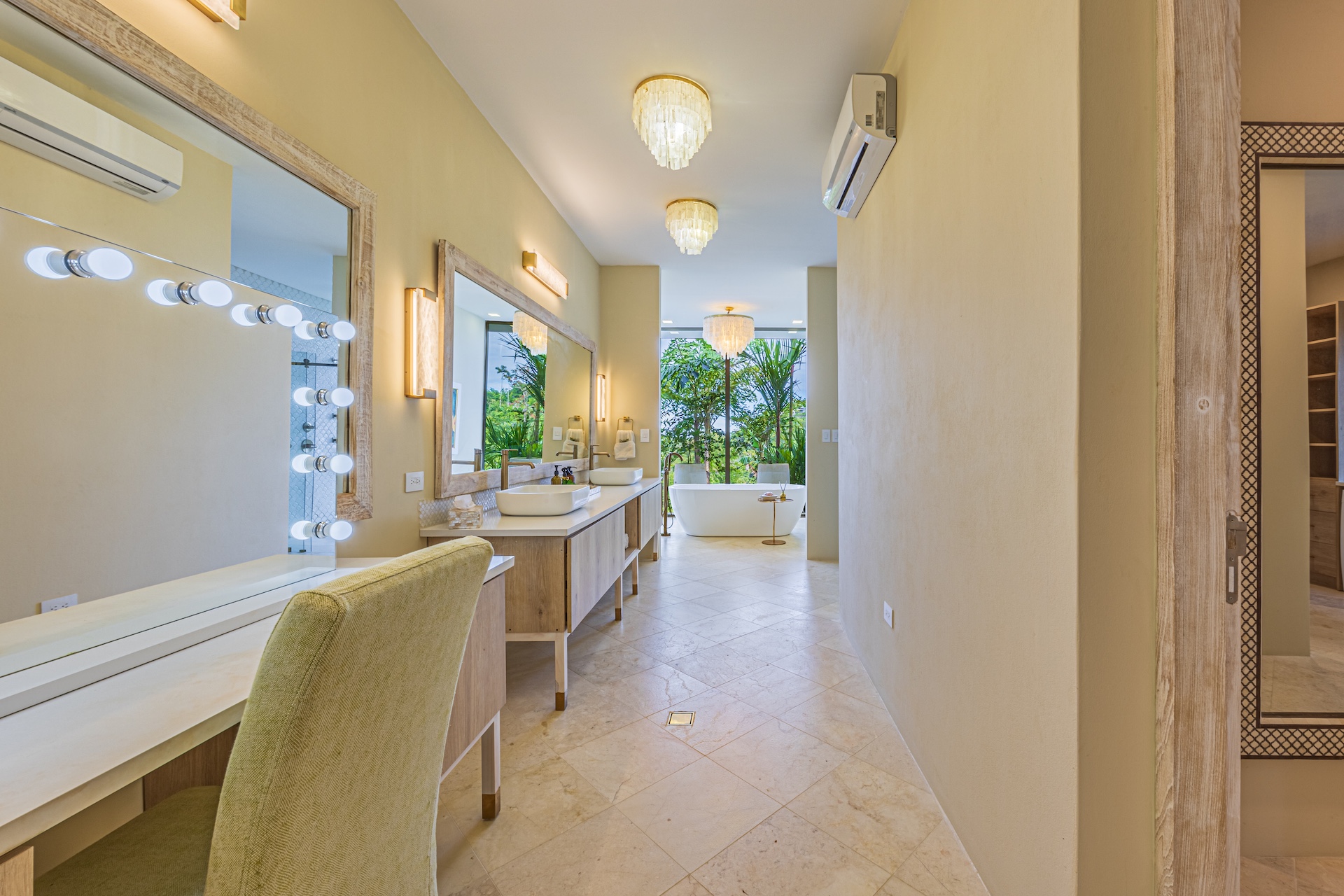 A second master suite offers complete privacy with its own separate entrance through a hand-carved purple door. This space is designed for royalty, complete with stunning ocean views and all the amenities needed for peaceful, luxurious living.