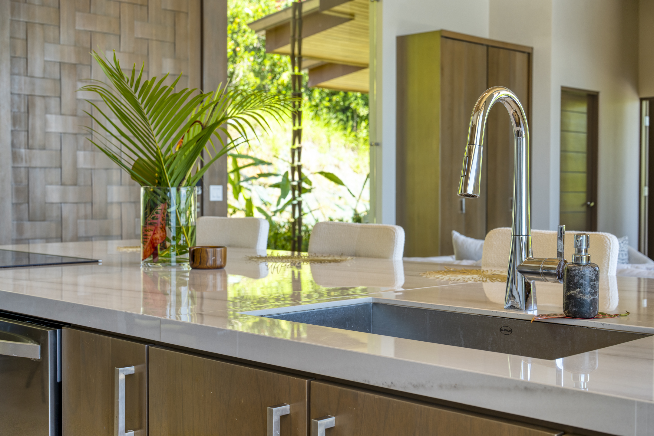 Set at elevation to capture year-round sunsets and the lush vibrancy of the jungle canopy, the home is intentionally positioned to immerse you in nature without ever leaving the comfort of refined modern living. Floor-to-ceiling glass, foldaway doors, and soaring ceilings create a fluid indoor-outdoor experience, where light, breeze, and beauty flow freely throughout every space.