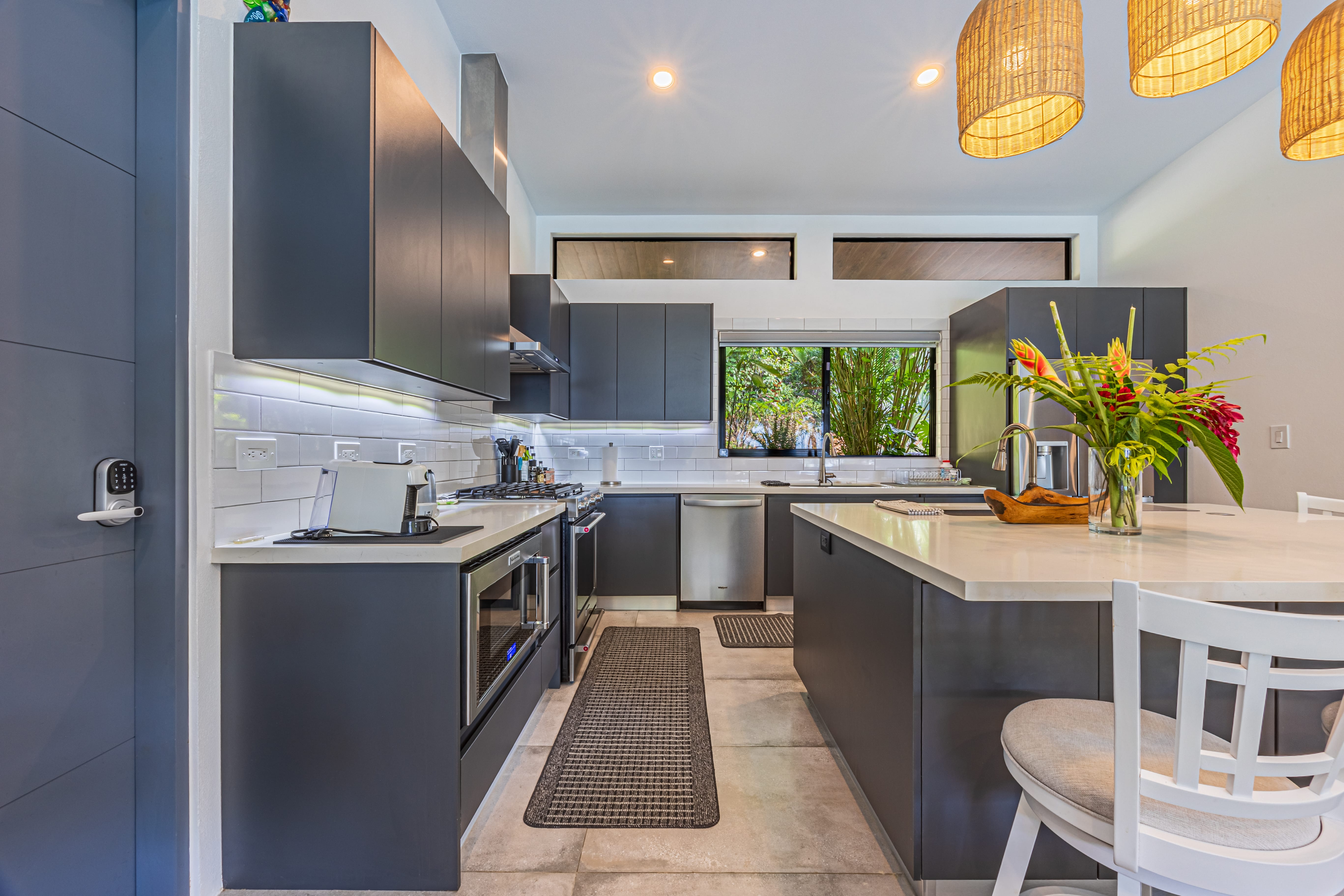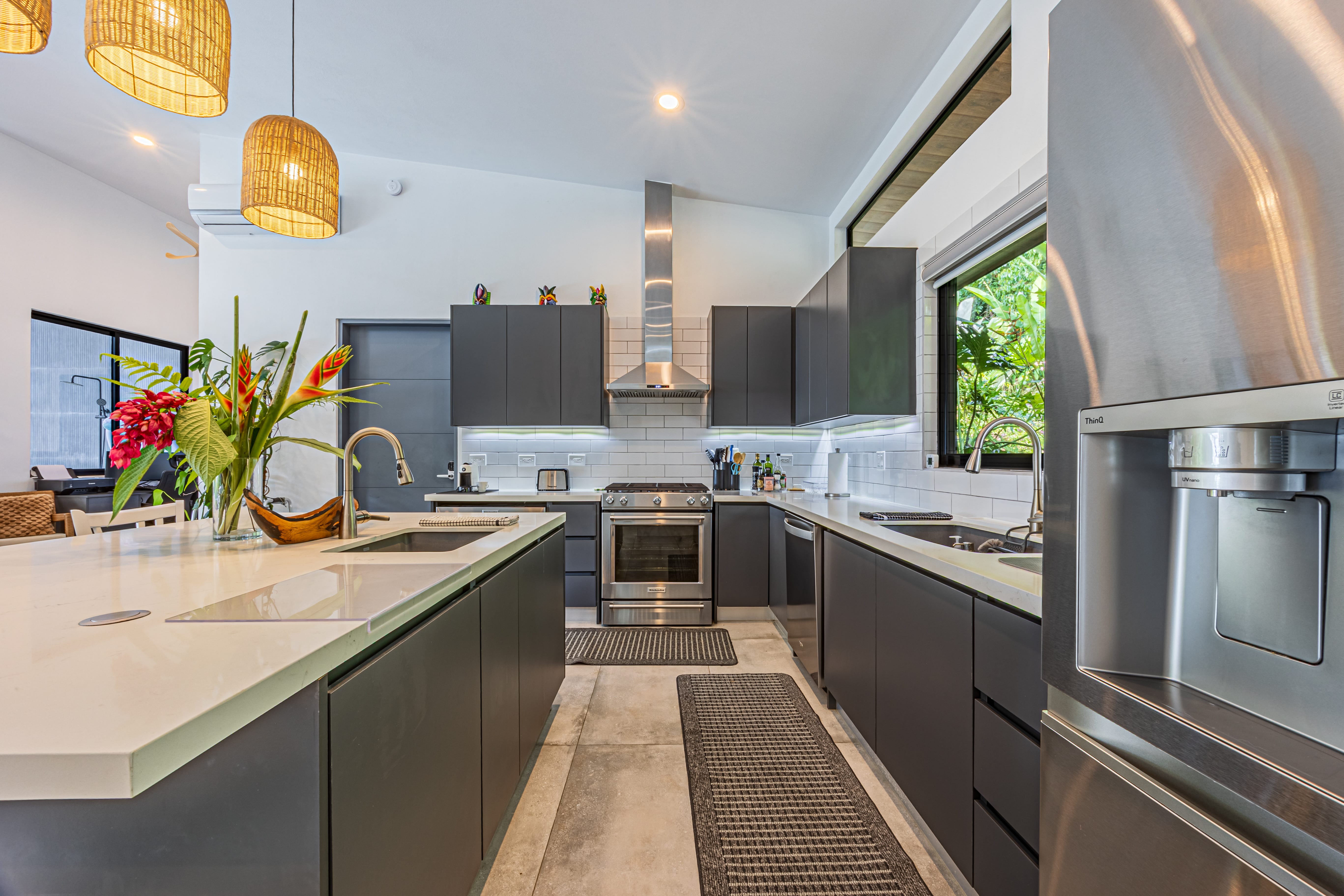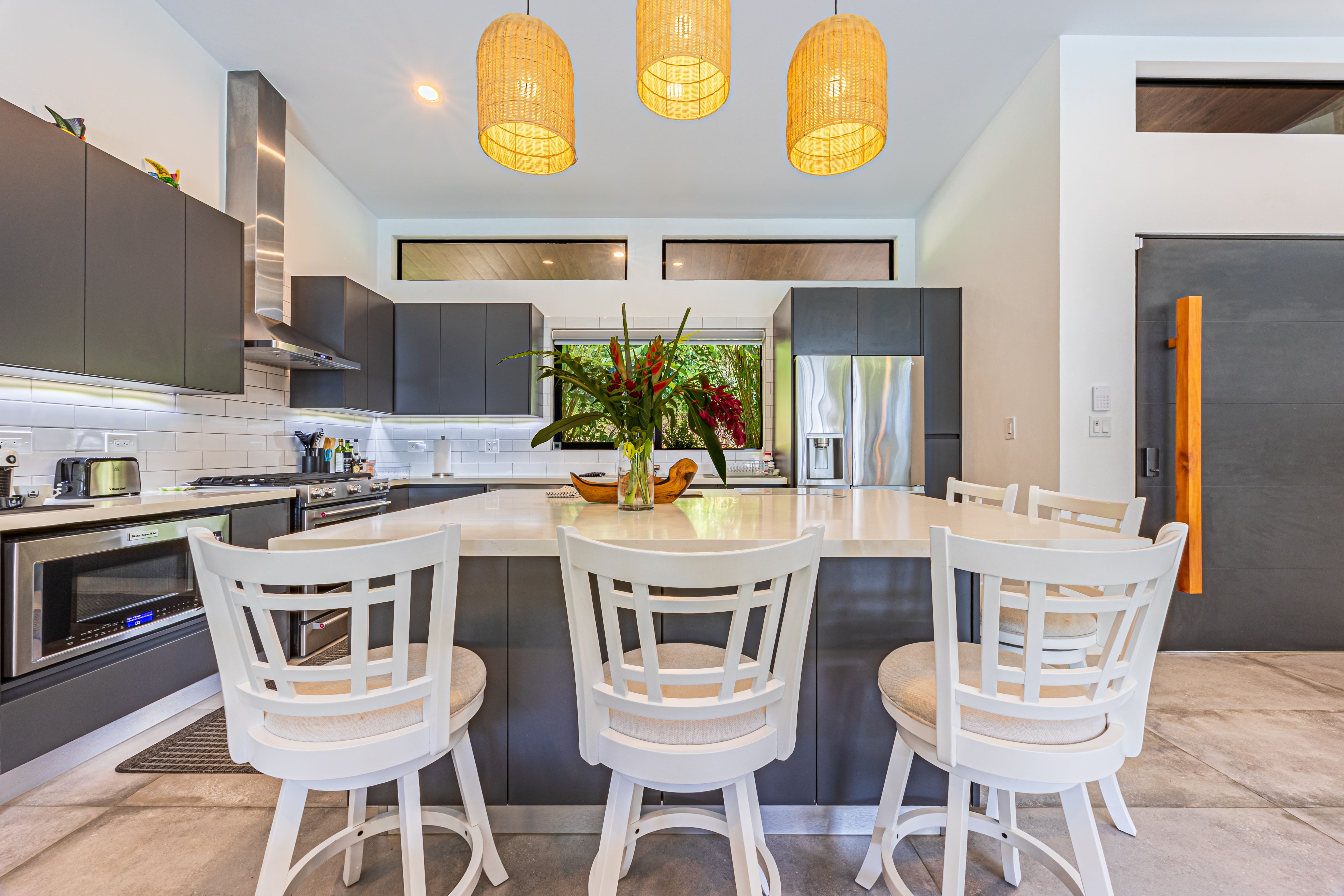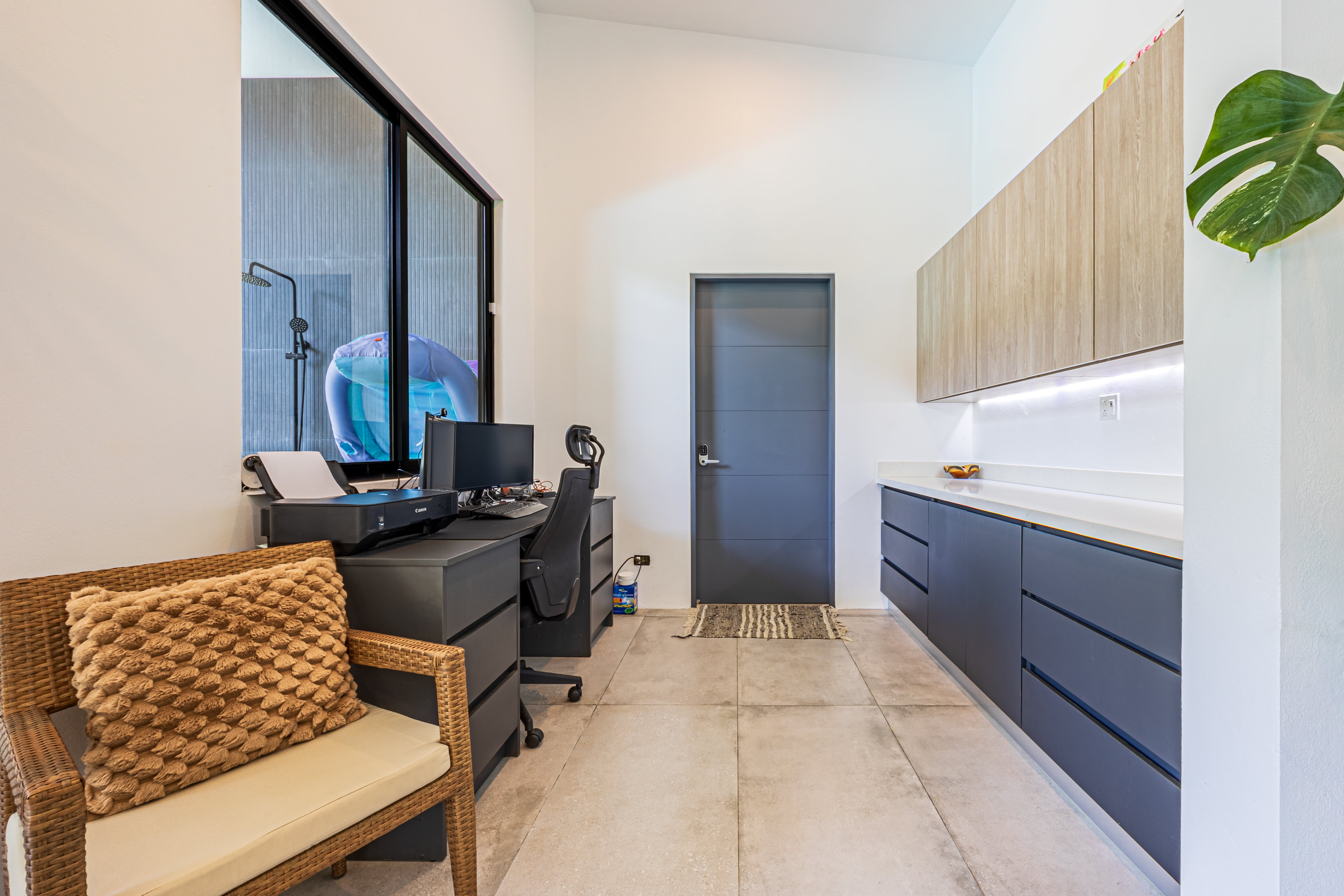 Designed for tropical living, this home extends to a covered terrace that leads to a stunning infinity-edge lap pool, offering uninterrupted views of the Pacific Ocean. A covered BBQ/bar area, ambient lighting, and ceiling fans make it ideal for gatherings, day or night.