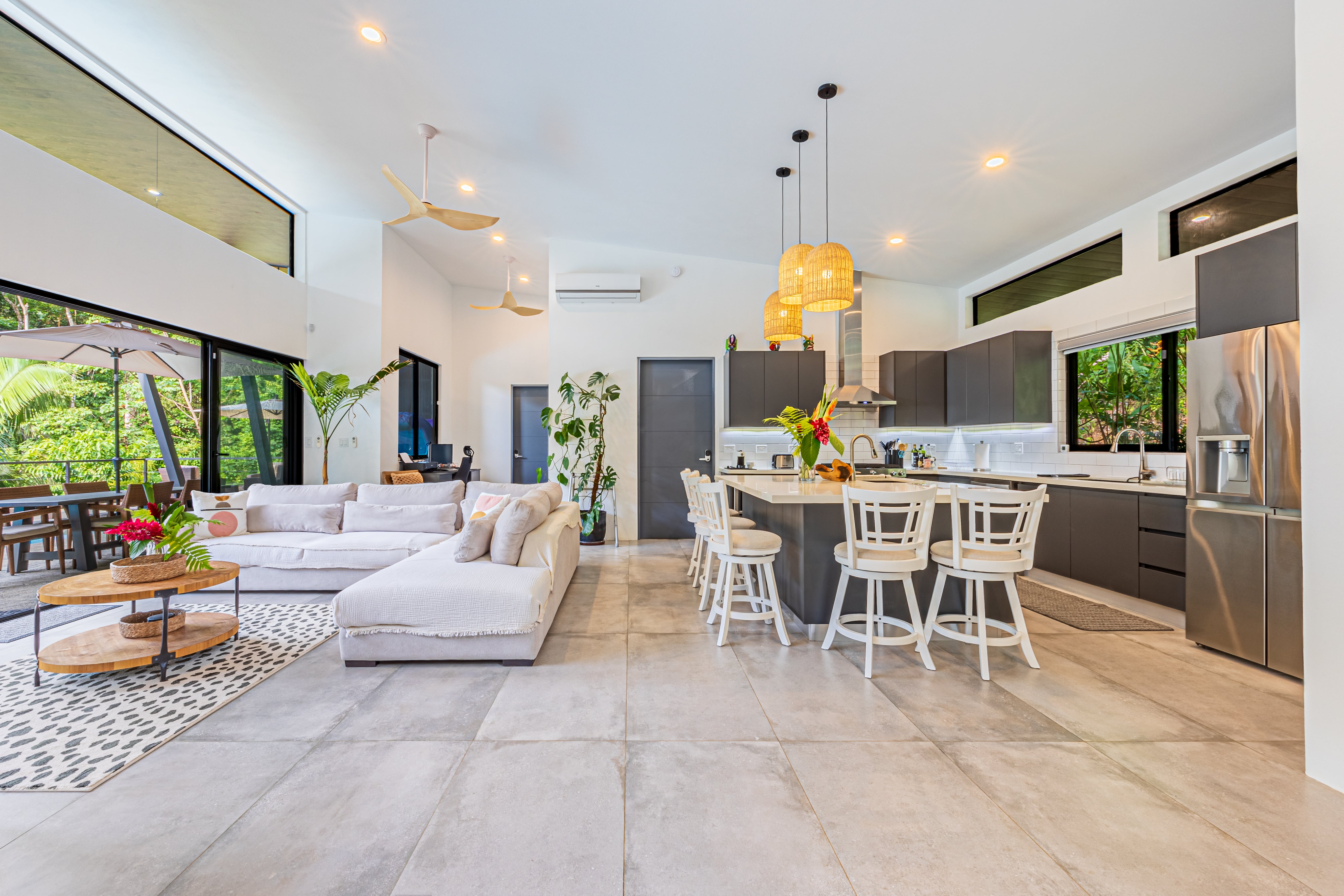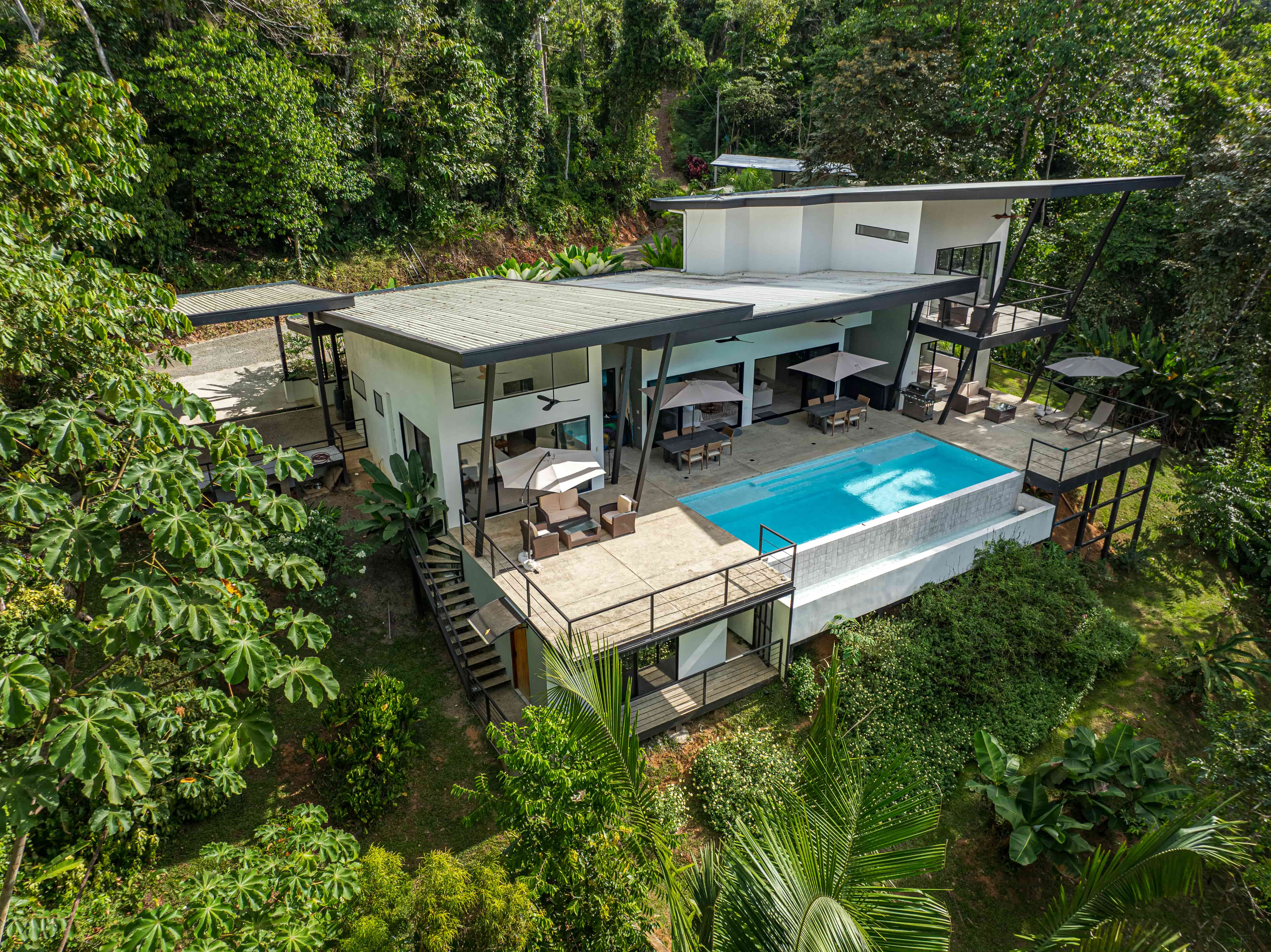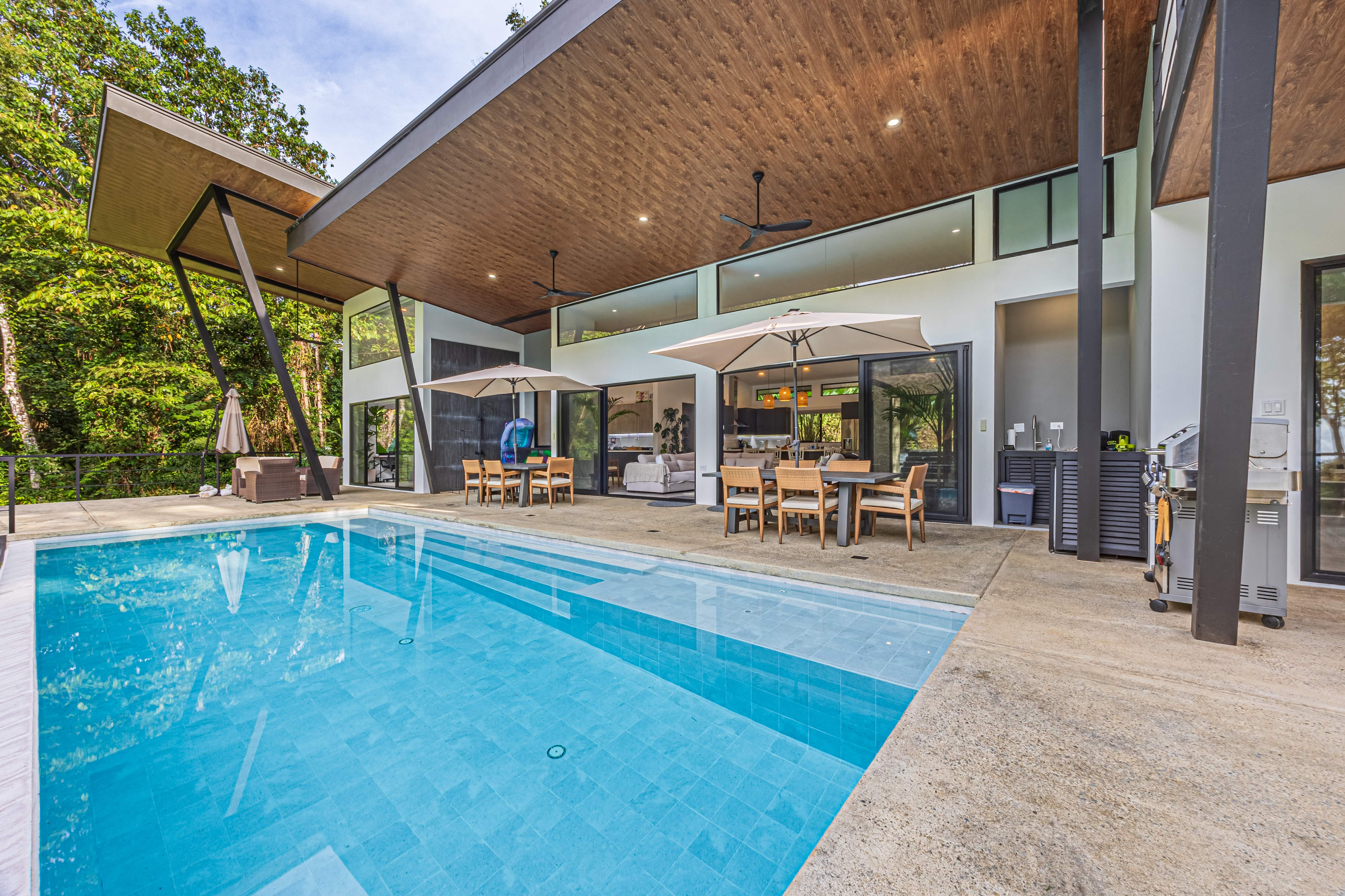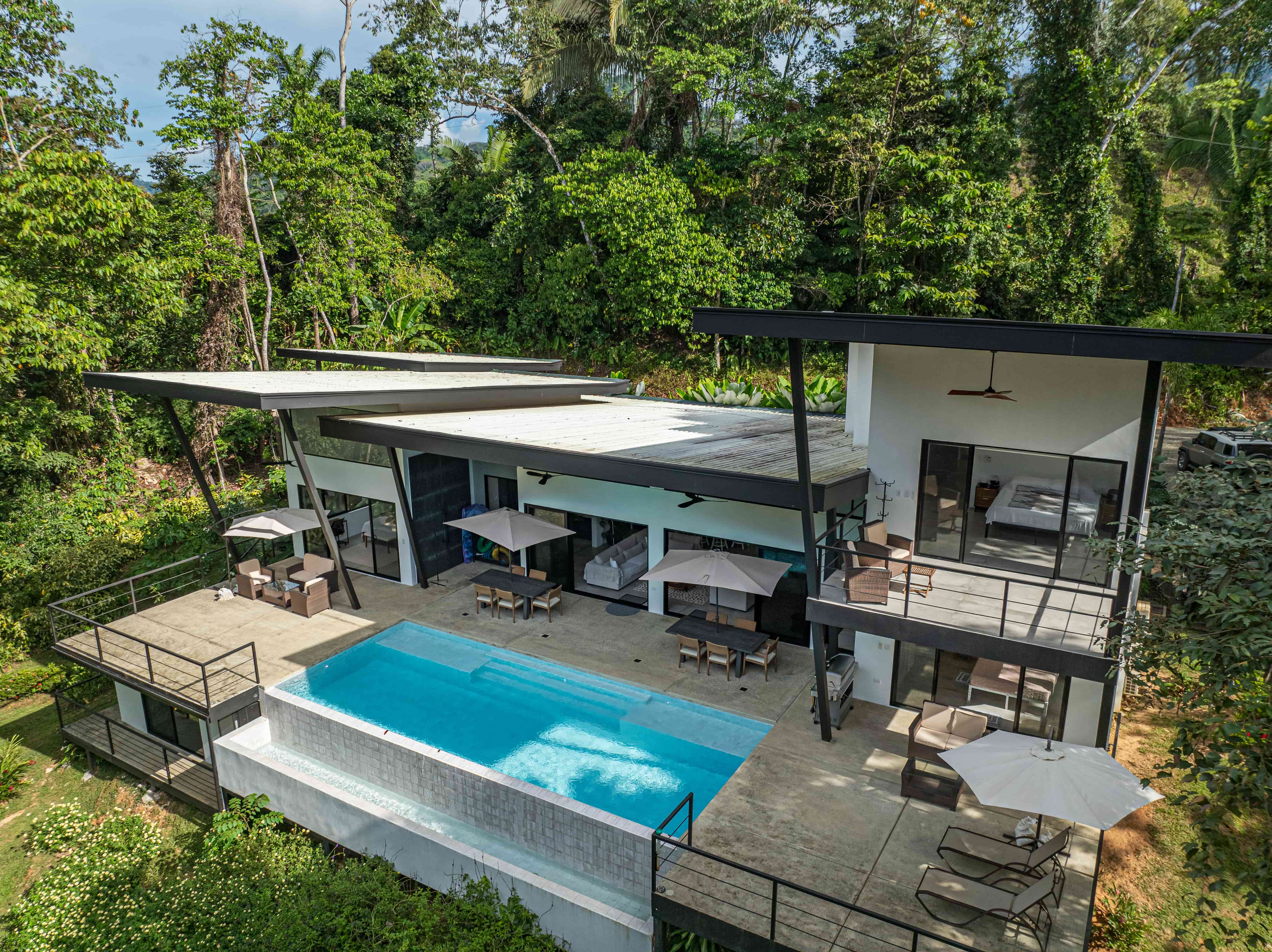 Welcome to this extraordinary brand-new luxury home perched atop the prestigious Paradise Breezes community. Just 5 minutes from Dominical Beach, this stunning residence seamlessly blends modern sophistication with the raw beauty of Costa Rica's lush rainforests and breathtaking ocean views.