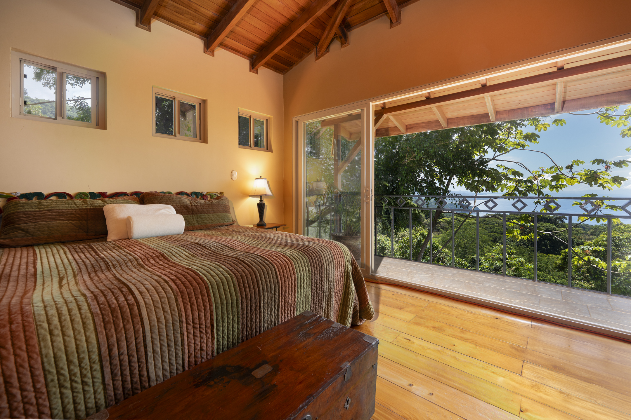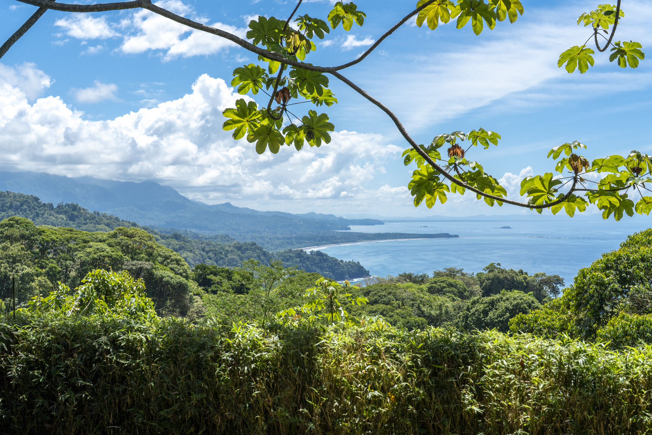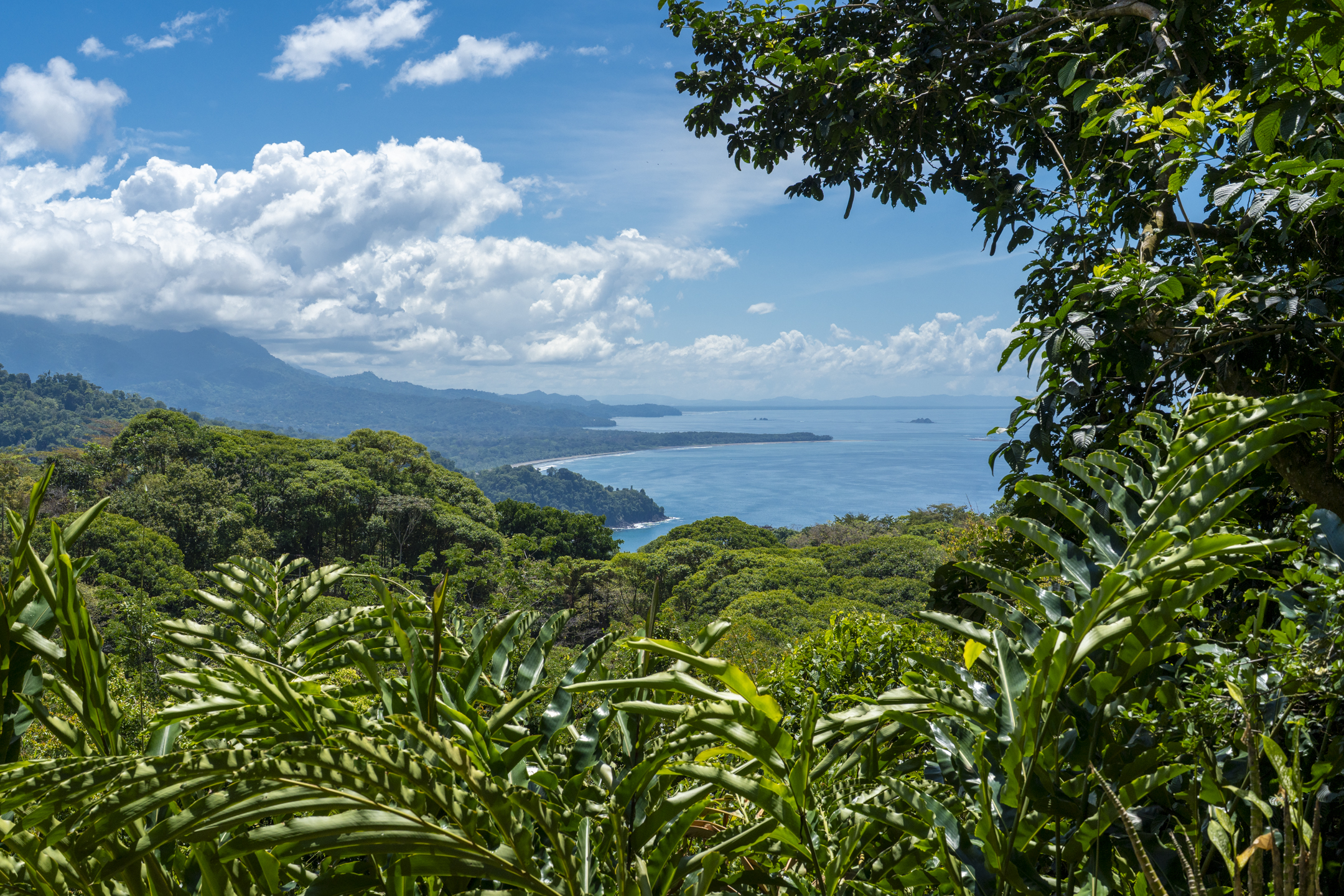 Completing the panorama are the mountain views, where rolling jungle ridges stretch toward the cloud forests of Costa Rica's interior. Morning mist drifts through the valleys while toucans and scarlet macaws glide above the canopy, creating an ever-changing landscape that feels both wild and peaceful.