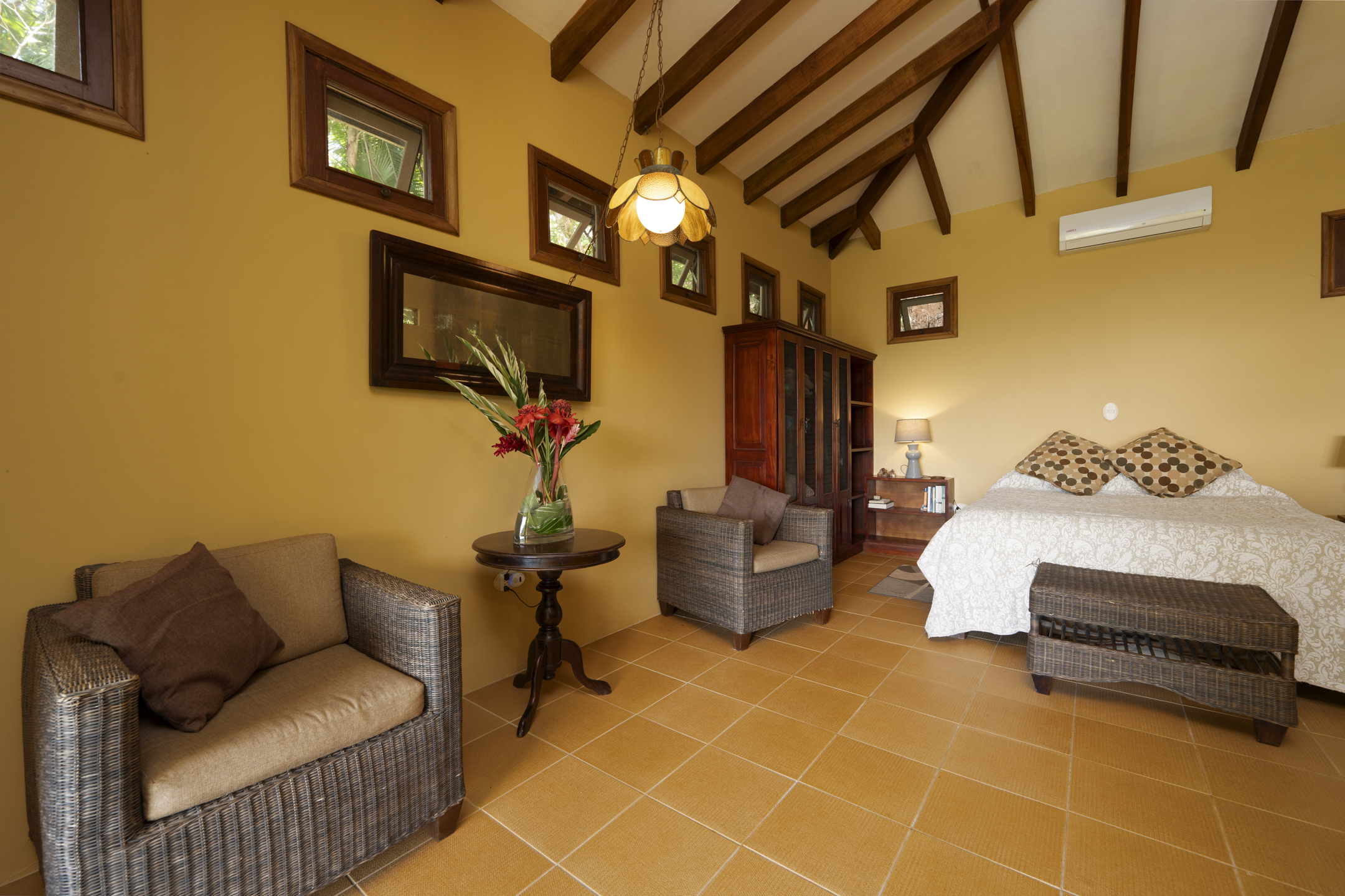 Scarlet macaws, toucans, hummingbirds, trogons, and motmots are frequent visitors. Private trails weave through lush vegetation and rare botanical plantings, creating a natural sanctuary where each morning reveals new discoveries.