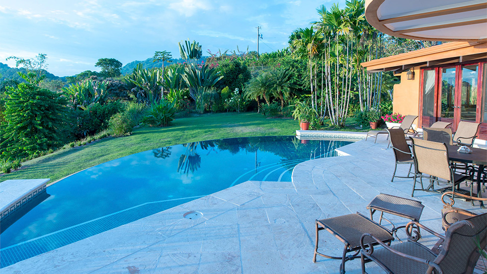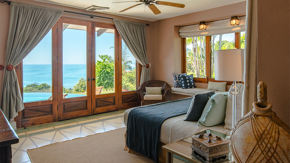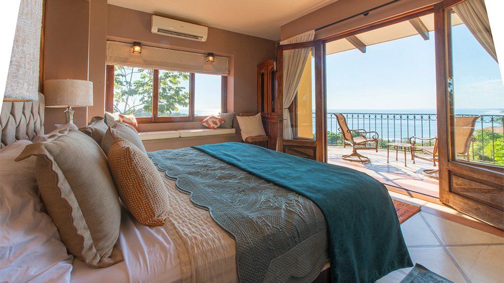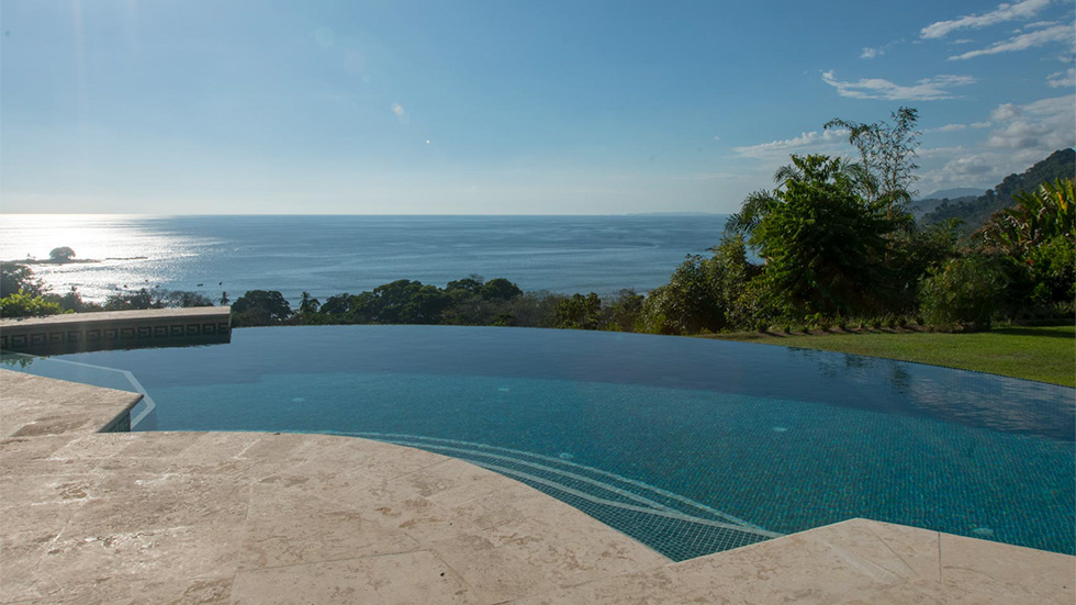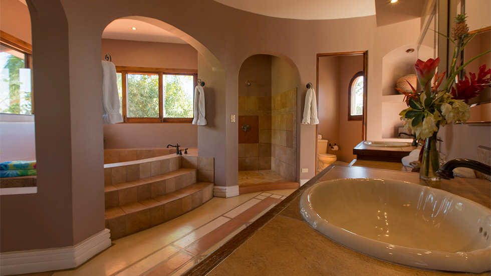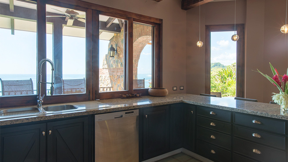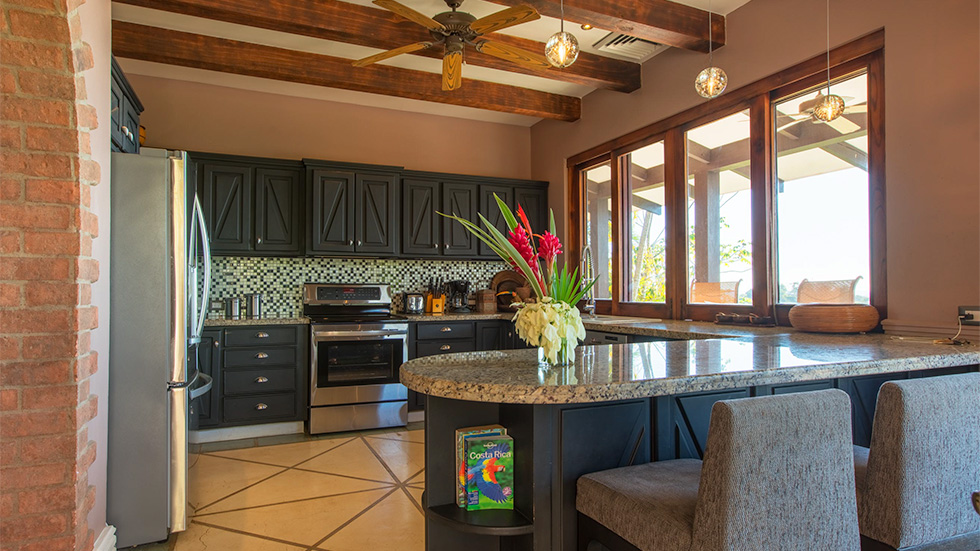 This gorgeous 3 bedroom/4 bathroom Villa with Master Suites for everyone! Upon entering you immediately have open and airy feel of the Living/Dining area with the high ceilings and surrounding large windows, the fully-equipped gourmet Kitchen with modern appliances and granite counter tops make this kitchen a delight. The kitchen also has a connecting serving window to the outdoor Social area with the breath taking infinity pool and the Lanai / Gazebo BBQ area. All of the living area is centrally air-conditioned. The Grand King Master Suite, the 2 Guest Suites (1 King and 1 Queen bed) and the Living room all have large flat screen TVs with cable, VCR and DVD player. All while the open floor plan gives you breathtaking views overlooking the large infinity pool with some of the most spectacular ocean views in all of Costa Rica; as well as the constant ocean breeze and subtle sounds of the breaking surf.