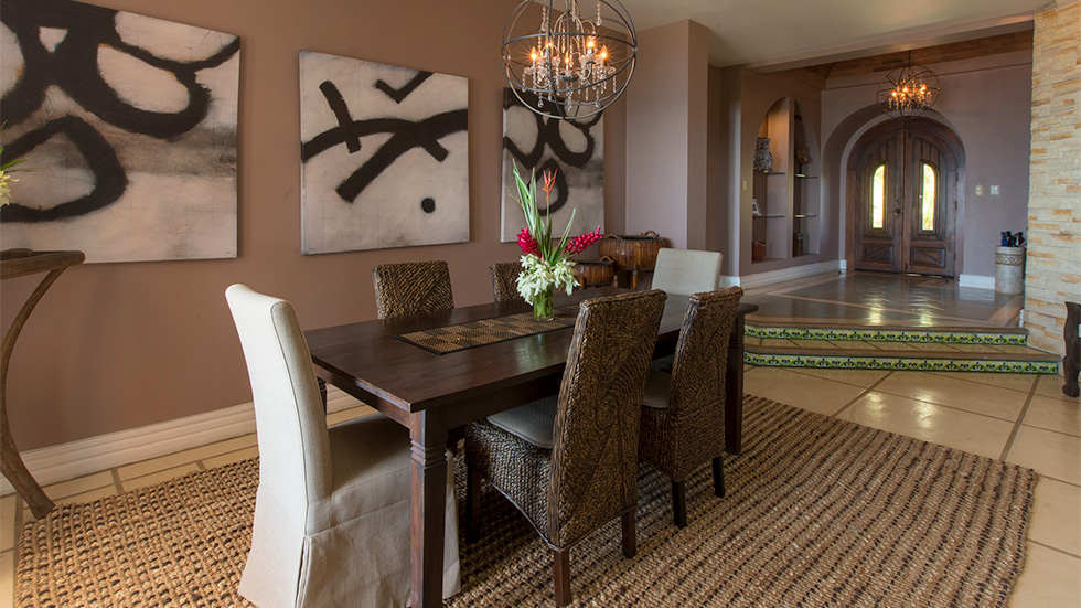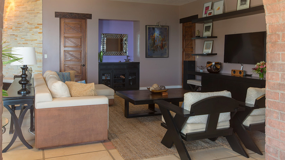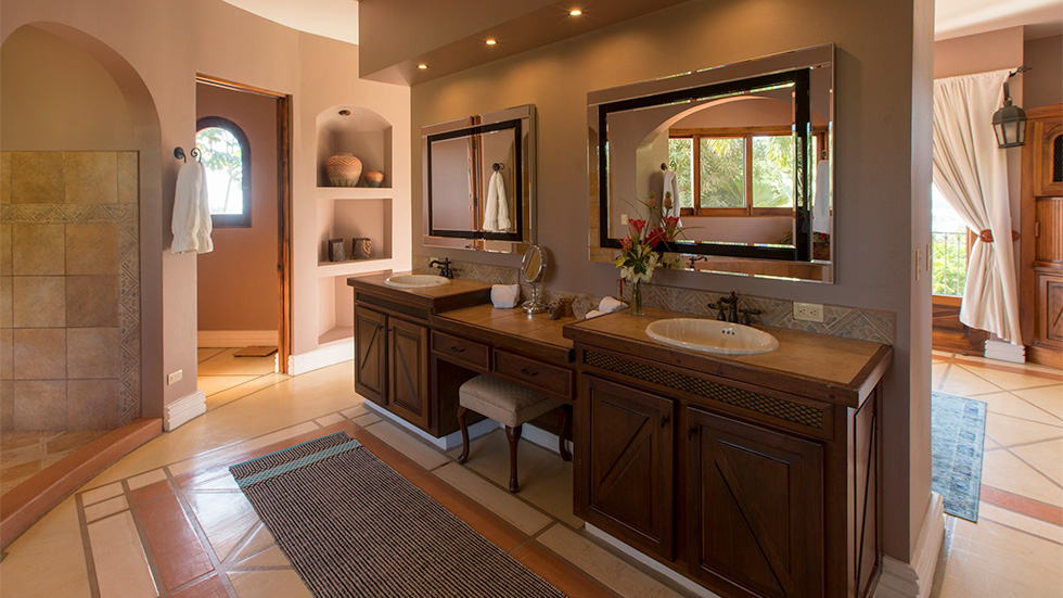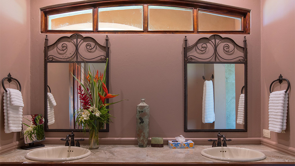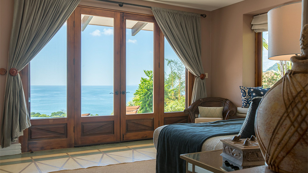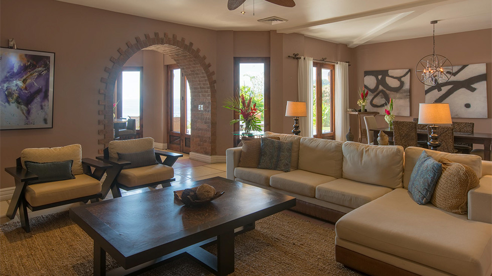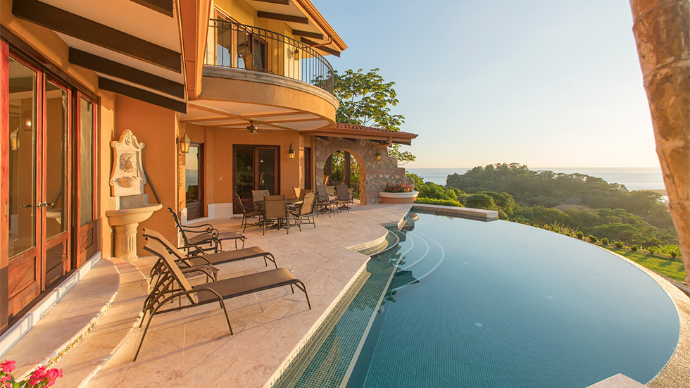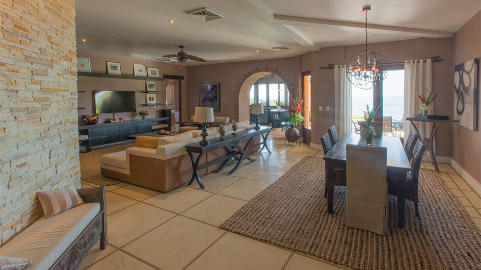 This gorgeous 3 bedroom/4 bathroom Villa with Master Suites for everyone! Upon entering you immediately have open and airy feel of the Living/Dining area with the high ceilings and surrounding large windows, the fully-equipped gourmet Kitchen with modern appliances and granite counter tops make this kitchen a delight. The kitchen also has a connecting serving window to the outdoor Social area with the breath taking infinity pool and the Lanai / Gazebo BBQ area. All of the living area is centrally air-conditioned. The Grand King Master Suite, the 2 Guest Suites (1 King and 1 Queen bed) and the Living room all have large flat screen TVs with cable, VCR and DVD player. All while the open floor plan gives you breathtaking views overlooking the large infinity pool with some of the most spectacular ocean views in all of Costa Rica; as well as the constant ocean breeze and subtle sounds of the breaking surf.