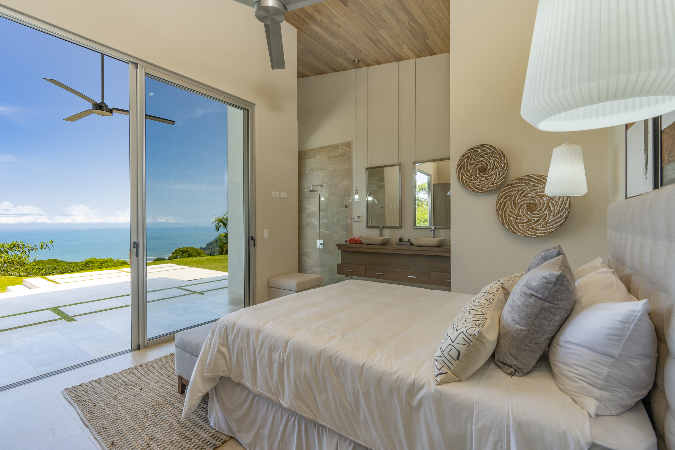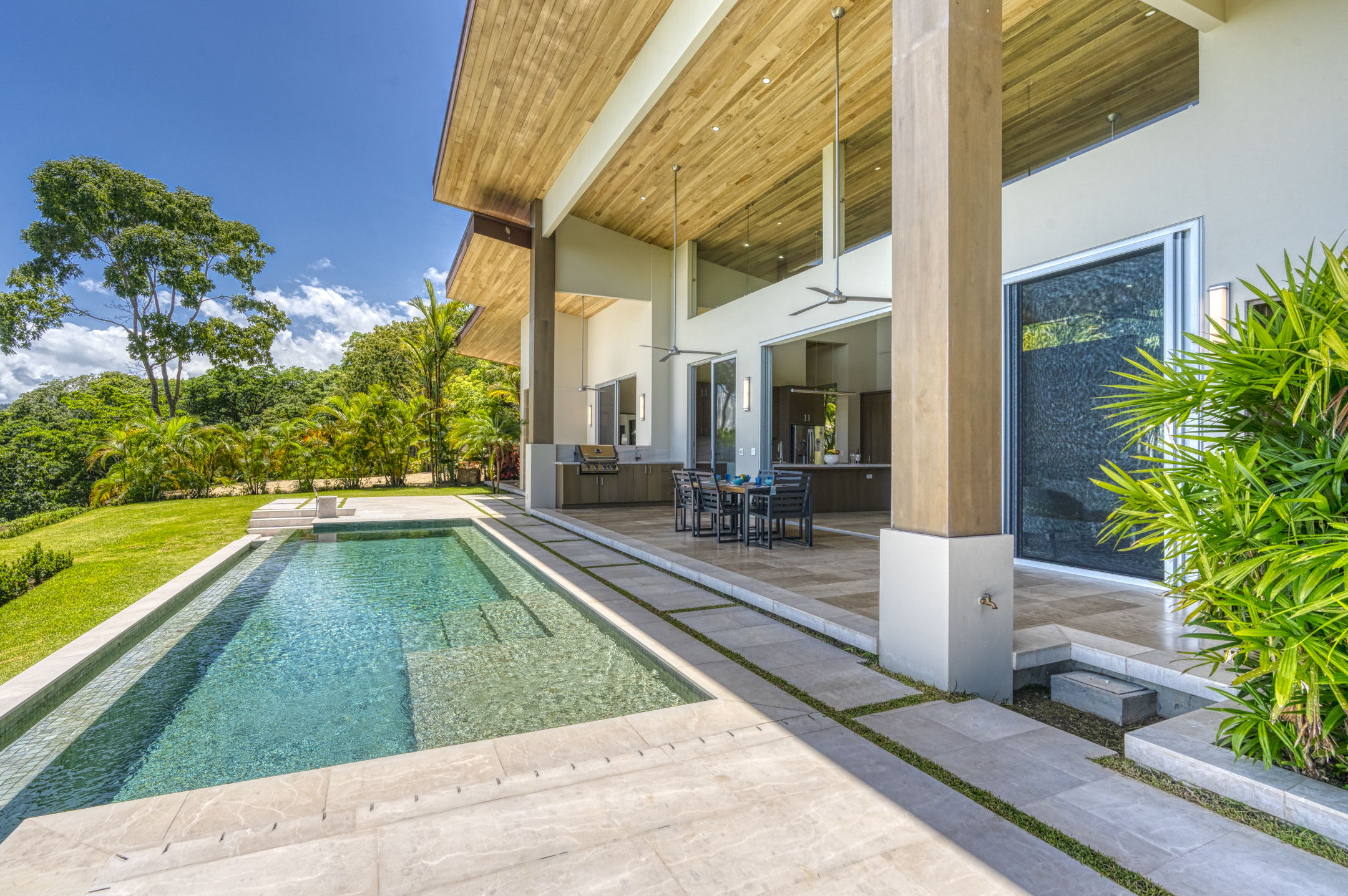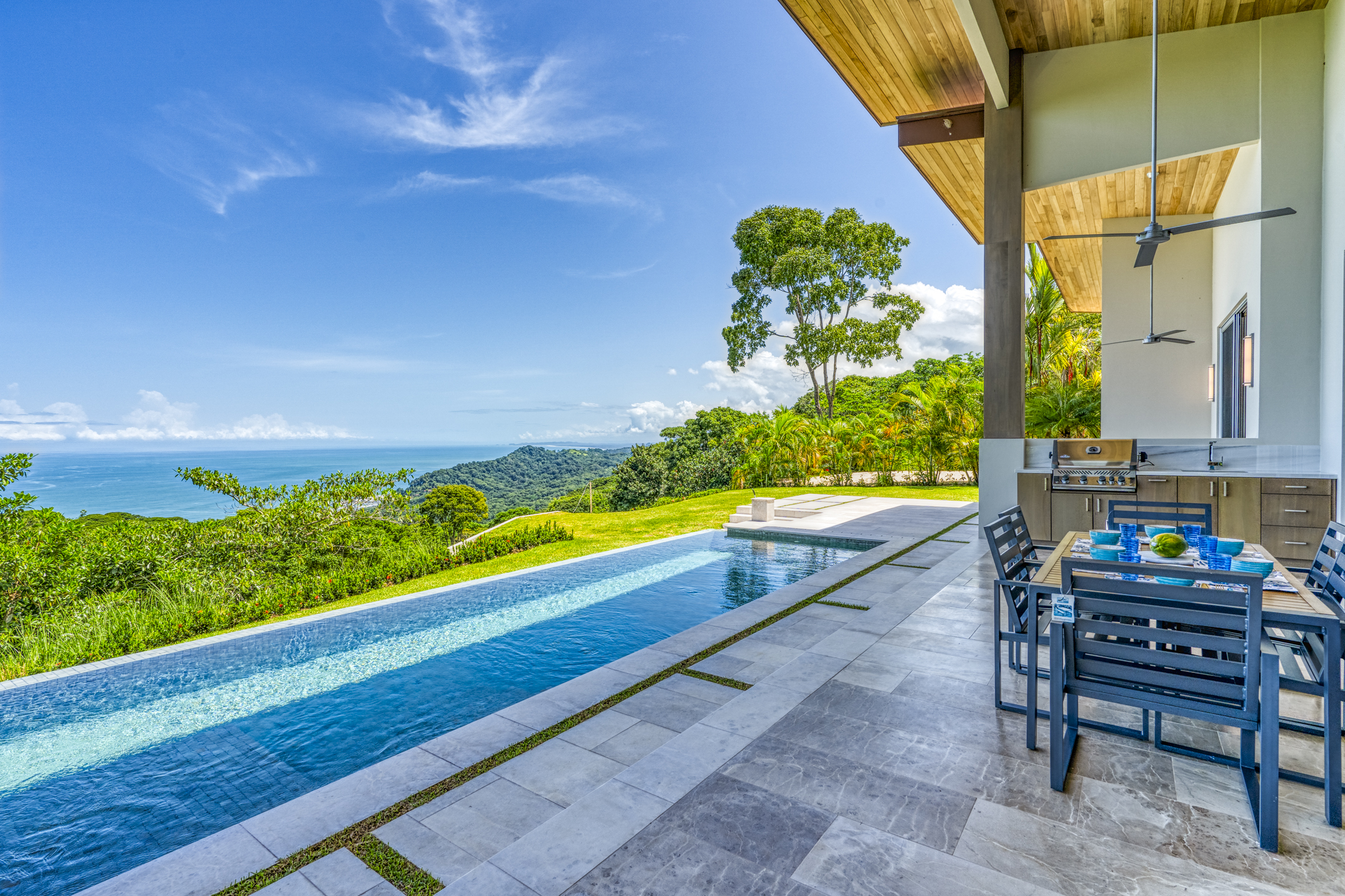Enjoy a breath-taking ocean view to accompany every activity in this beautiful luxury home. Every single detail has been designed to perfection. The home is perfectly angled to watch the sunset over the ocean; large glass windows and doors allow you to marvel at the view from almost every part of the home, and high ceilings to maximize the bright, airy feel to the home. It was purpose-built in 2021 as a contemporary holiday home for those who enjoy the finer things in life. \n\nPicture this; you wake up to the sound of toucans stirring in the jungle around you. You open the blinds, and sunlight streams into the bedroom; it is a beautiful day, and you can see that the waves are perfect for a morning surf. You make your way through to the chef's kitchen and make yourself a coffee, admiring the view as you wait for the kettle to boil. On the lawn below, two monkeys are playing; you creep through the foldaway doors to sit on the patio and watch. The sun is already starting to heat up the air, and you consider whether to do some yoga by the pool or walk down to the beach to surf first. \n\nWhether you plan to move to Costa Rica permanently and enjoy this carefree lifestyle or spoil yourself with a luxury holiday home, Bella Vista Estates offers an enviable life. In an exclusive gated community of 7 luxury homes, you can live a life so picturesque it will have you pinching yourself. After a day at the beach swimming, surfing, and spotting migrating humpback whales, come back home for a poolside barbecue on the alfresco dining patio. A wall of foldaway doors opens up to allow you to move between the open-plan living space and outdoor patio with ease for more drinks or supplies. After dinner, float in your sparkling infinity pool and stargaze or just listen to the relaxing symphony of the jungle. \nThis new home has 3 bedrooms, all of which are ensuite. Two of the bedrooms have glass-walled showers to allow you to drink in the view. The master bedroom boasts an outdoor rainfall shower and deep-soak tub for a spa-like bathing experience. Each of the bedrooms has access to an outdoor patio with privacy screening to allow for peaceful contemplation. \n\nYour luxury oasis is situated in an exclusive gated community just outside of the coastal town.\n\nThe relaxed atmosphere of this region will seep into your bones as you spend your day lazing by your infinity pool, sunning yourself on the nearby beach, or sampling one of the many local restaurants. For the more adventurous, there are countless outdoor pursuits to choose from like hiking, whale watching, water sports, and horseback riding. If you can tear yourself away from your beautiful home, there is much fun to be had. \nWe do not expect this luxurious home to be on the market long; its sister property sold before we even had the chance to list it. Call us today, so you don't miss out!