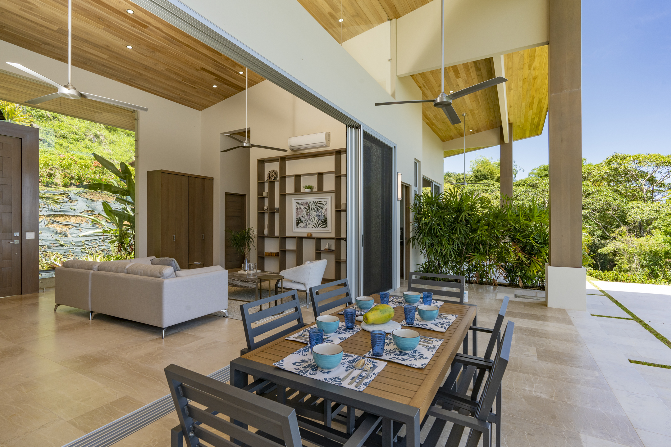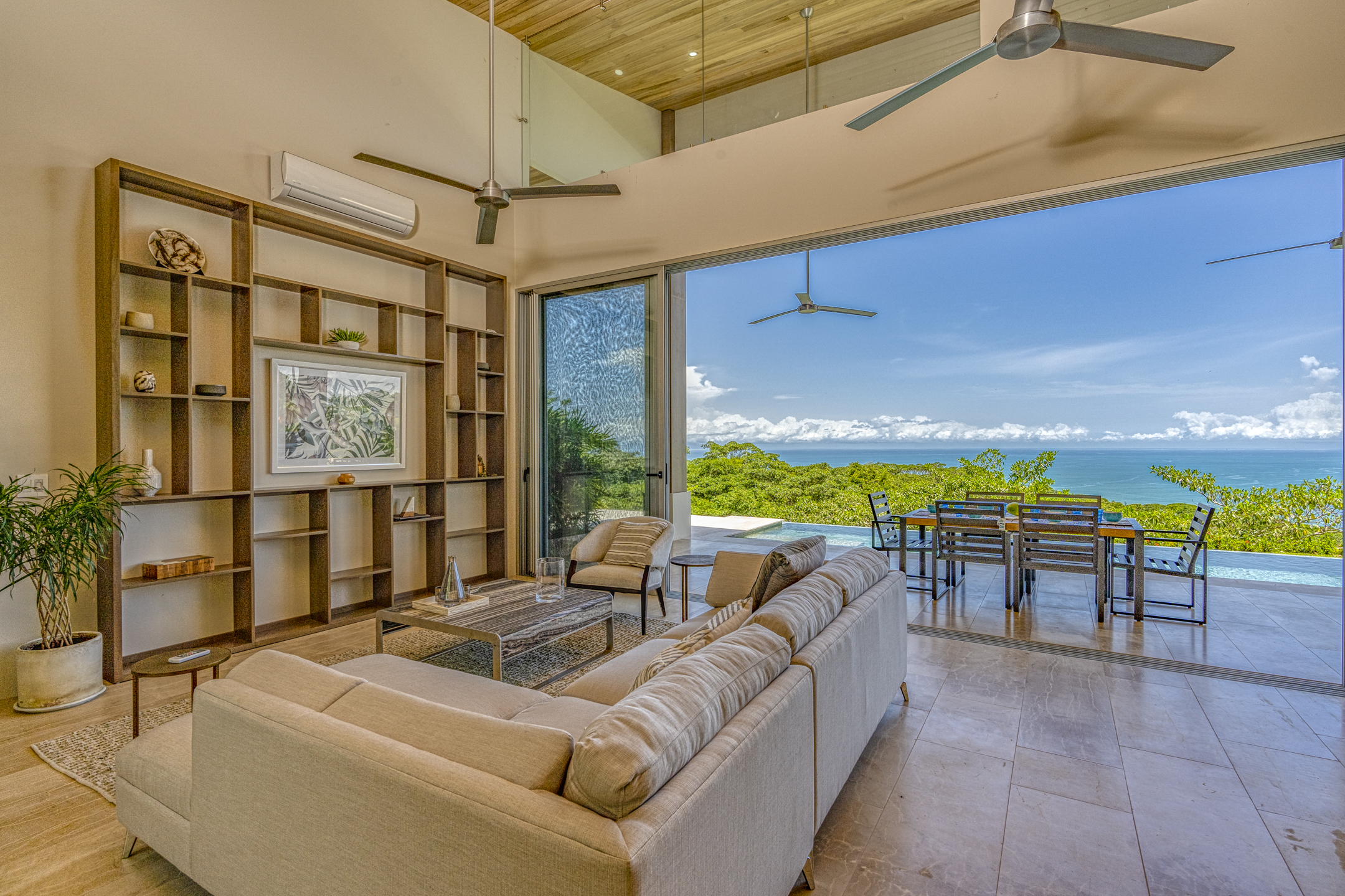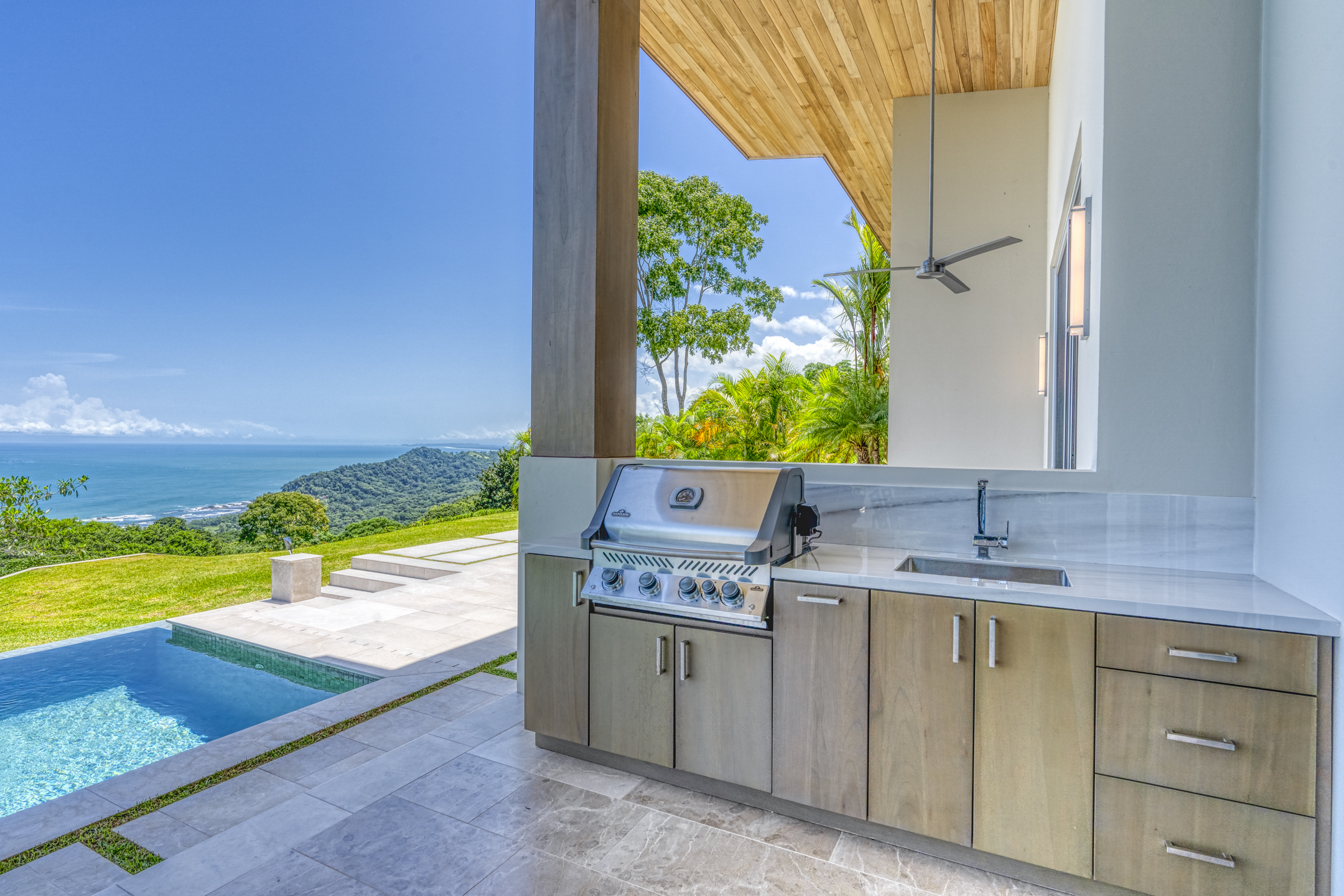 Enjoy a breath-taking ocean view to accompany every activity in this beautiful luxury home. Every single detail has been designed to perfection. The home is perfectly angled to watch the sunset over the ocean; large glass windows and doors allow you to marvel at the view from almost every part of the home, and high ceilings to maximize the bright, airy feel to the home. It was purpose-built in 2021 as a contemporary holiday home for those who enjoy the finer things in life. \n\nPicture this; you wake up to the sound of toucans stirring in the jungle around you. You open the blinds, and sunlight streams into the bedroom; it is a beautiful day, and you can see that the waves are perfect for a morning surf. You make your way through to the chef's kitchen and make yourself a coffee, admiring the view as you wait for the kettle to boil. On the lawn below, two monkeys are playing; you creep through the foldaway doors to sit on the patio and watch. The sun is already starting to heat up the air, and you consider whether to do some yoga by the pool or walk down to the beach to surf first. \n\nWhether you plan to move to Costa Rica permanently and enjoy this carefree lifestyle or spoil yourself with a luxury holiday home, Bella Vista Estates offers an enviable life. In an exclusive gated community of 7 luxury homes, you can live a life so picturesque it will have you pinching yourself. After a day at the beach swimming, surfing, and spotting migrating humpback whales, come back home for a poolside barbecue on the alfresco dining patio. A wall of foldaway doors opens up to allow you to move between the open-plan living space and outdoor patio with ease for more drinks or supplies. After dinner, float in your sparkling infinity pool and stargaze or just listen to the relaxing symphony of the jungle. \nThis new home has 3 bedrooms, all of which are ensuite. Two of the bedrooms have glass-walled showers to allow you to drink in the view. The master bedroom boasts an outdoor rainfall shower and deep-soak tub for a spa-like bathing experience. Each of the bedrooms has access to an outdoor patio with privacy screening to allow for peaceful contemplation. \n\nYour luxury oasis is situated in an exclusive gated community just outside of the coastal town.\n\nThe relaxed atmosphere of this region will seep into your bones as you spend your day lazing by your infinity pool, sunning yourself on the nearby beach, or sampling one of the many local restaurants. For the more adventurous, there are countless outdoor pursuits to choose from like hiking, whale watching, water sports, and horseback riding. If you can tear yourself away from your beautiful home, there is much fun to be had. \nWe do not expect this luxurious home to be on the market long; its sister property sold before we even had the chance to list it. Call us today, so you don't miss out!