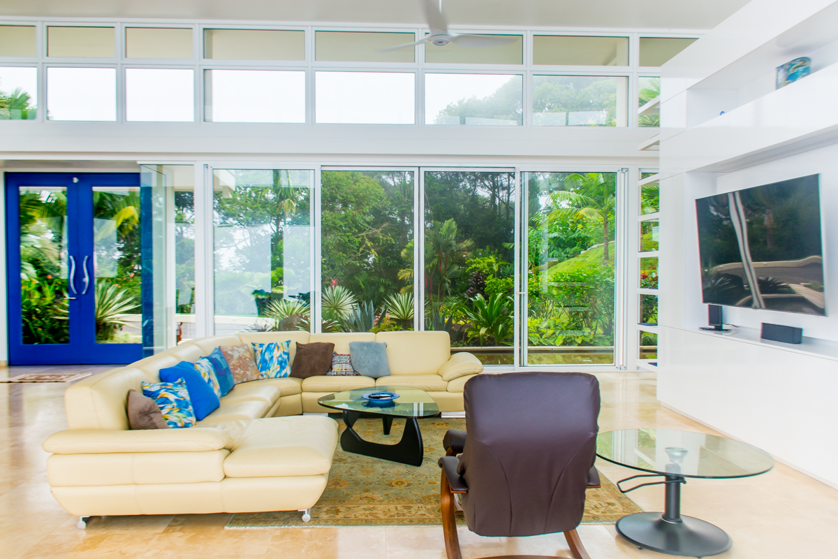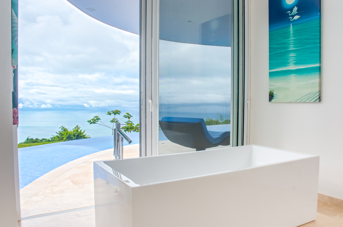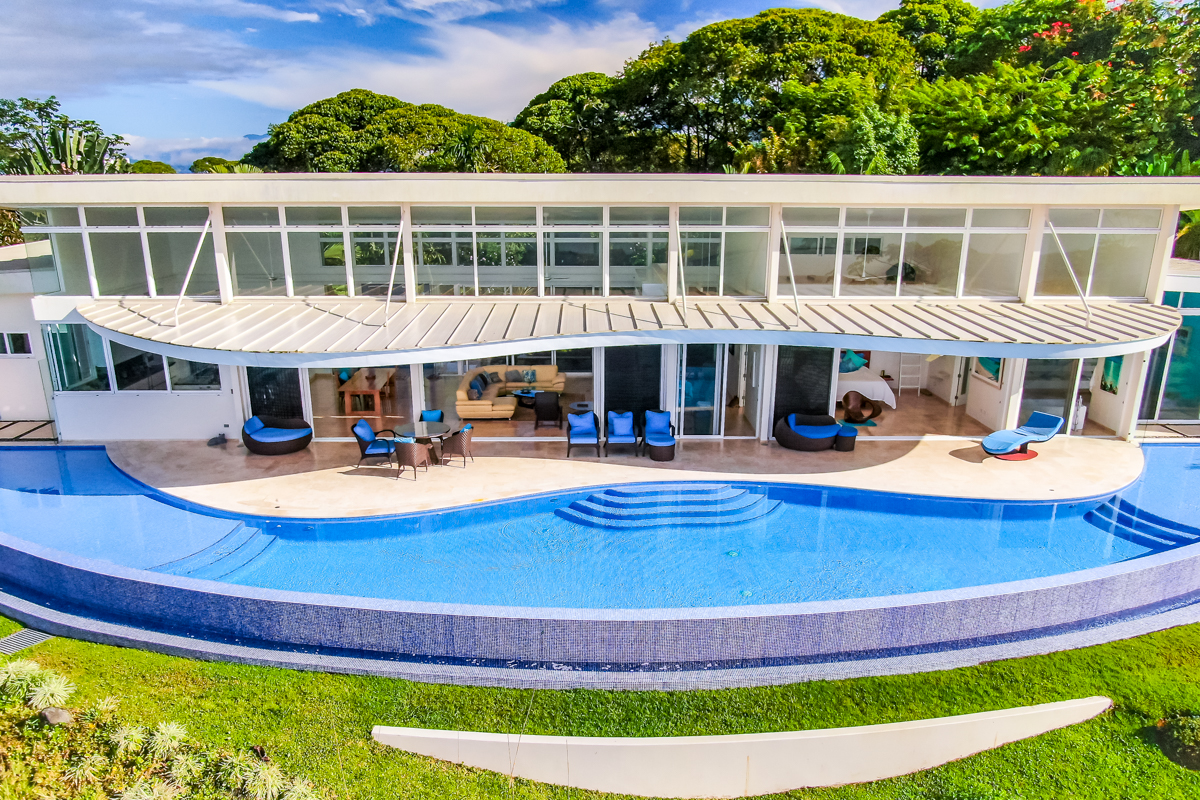 A large, open-concept living area and kitchen provide ample room for entertaining; the space seamlessly flows to the outdoor covered patio, where a curved infinity pool wraps around the home's entire length. A beautifully landscaped path takes you to the guest bedrooms. Detached from the main house, yet just a few steps from the kitchen, the large, ocean-view bedrooms ensure family or guests feel as if they have arrived at a sanctuary all of their own.