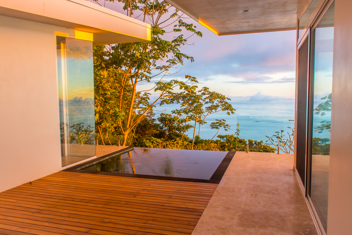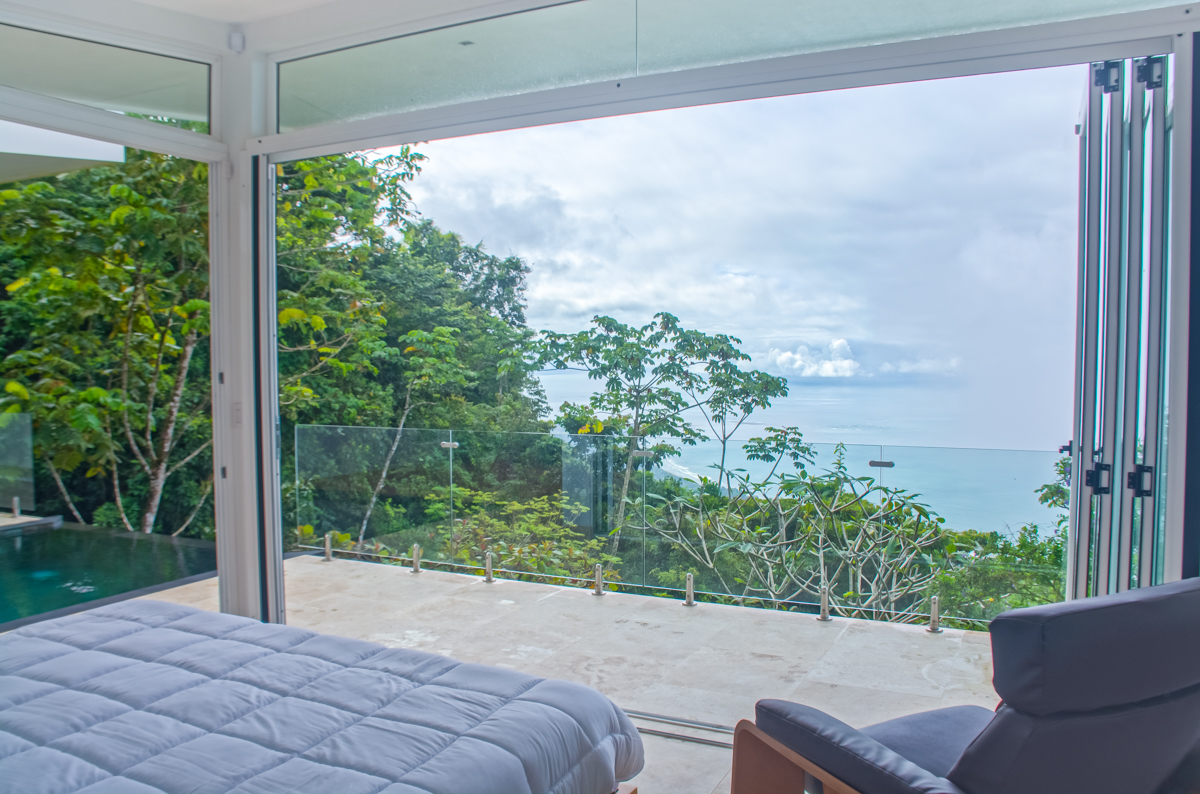 Days at this incredible home begin with spectacular morning light over the ocean from your Master Suite, as the surrounding rainforest comes to life, and the endless ocean views dance with color. Enjoy the peaceful moments from your private Master Suite loft, or even from your glass-walled shower or stately bathtub--commanding Costa Ballena views that stretch to the iconic Whale's Tail are never out of sight.