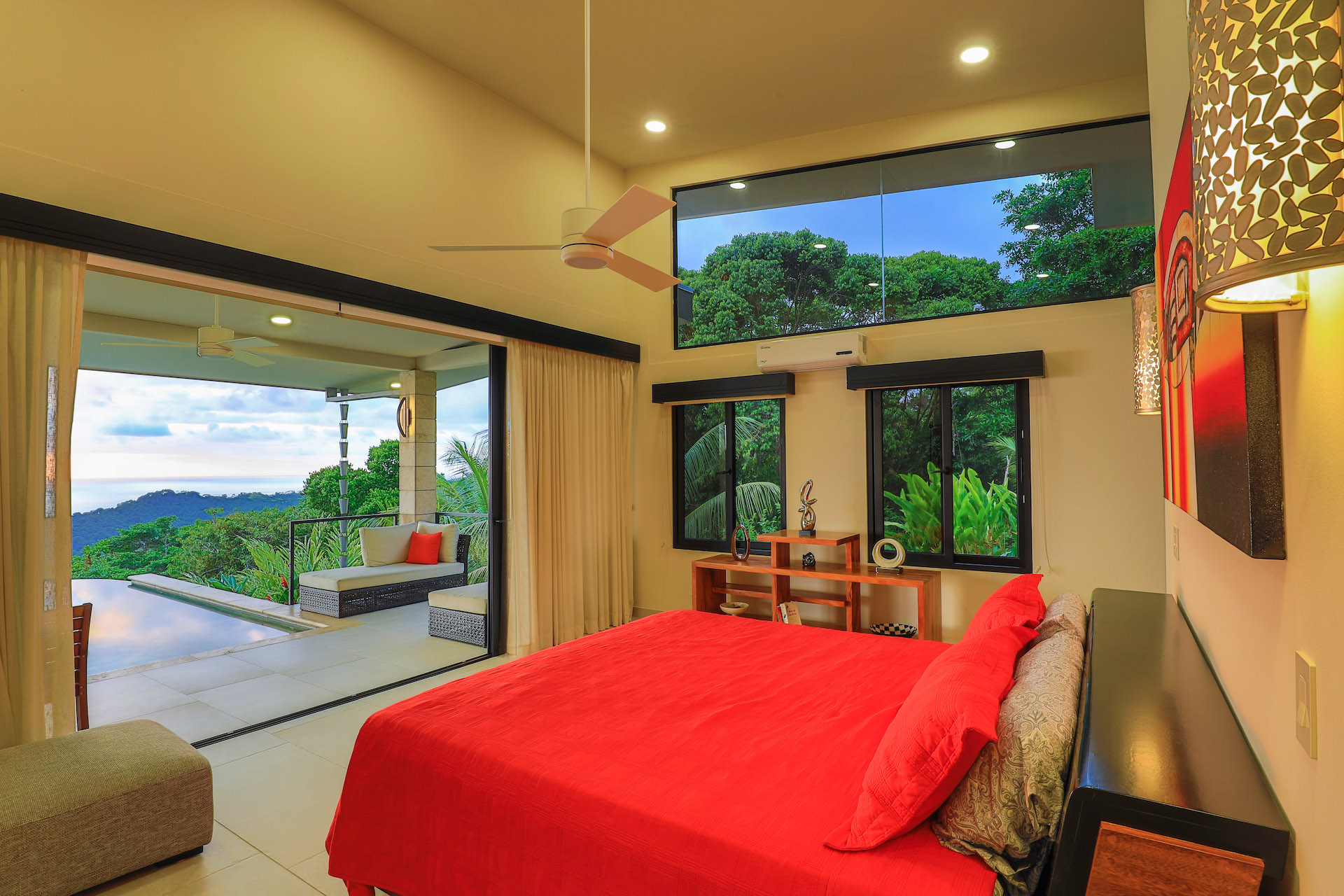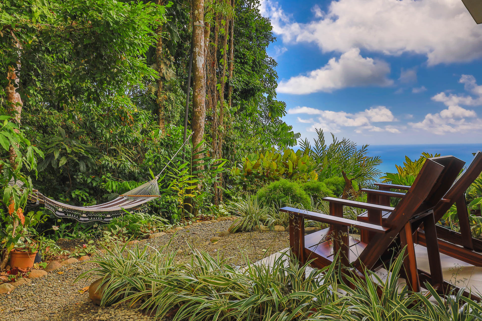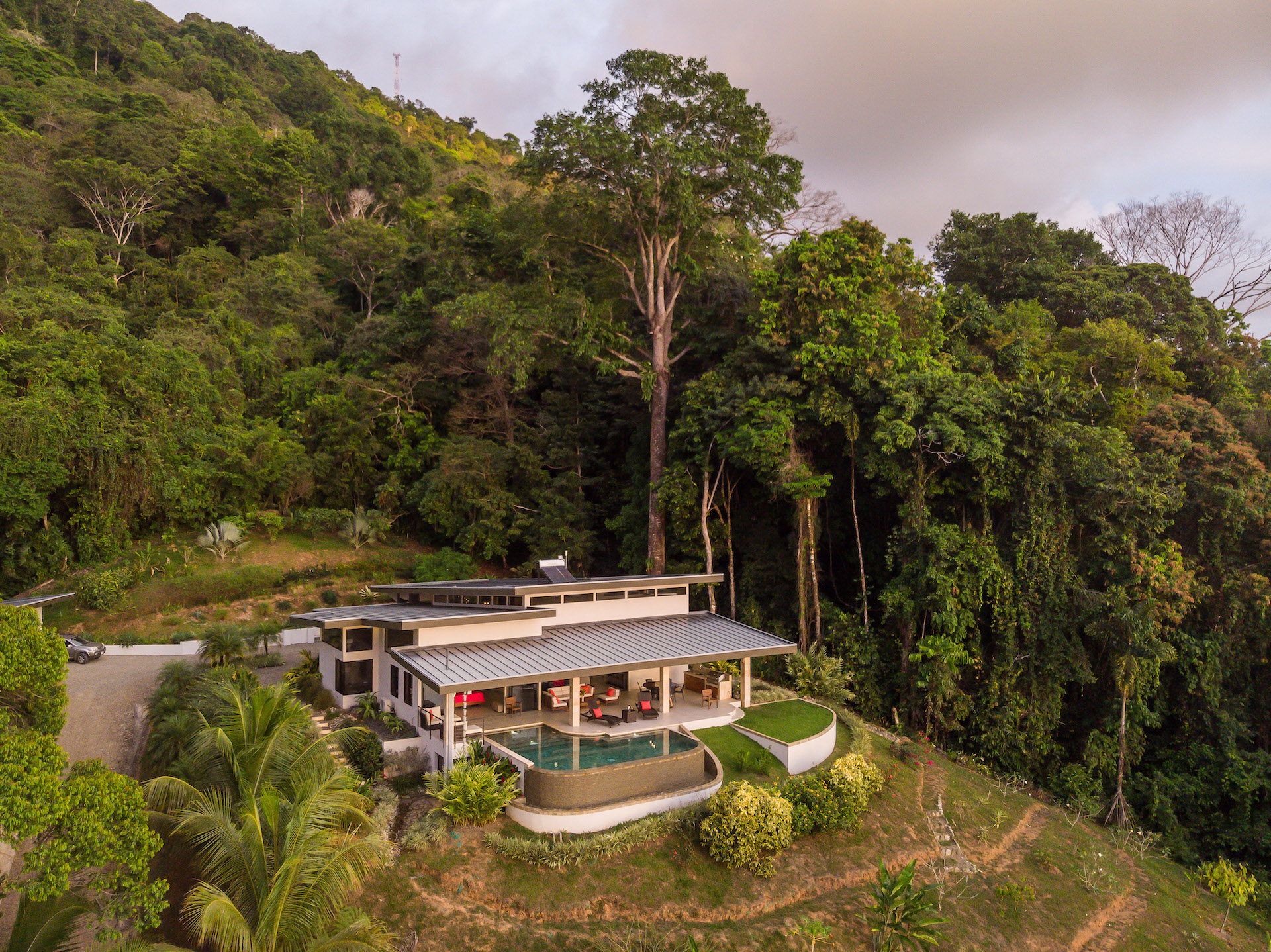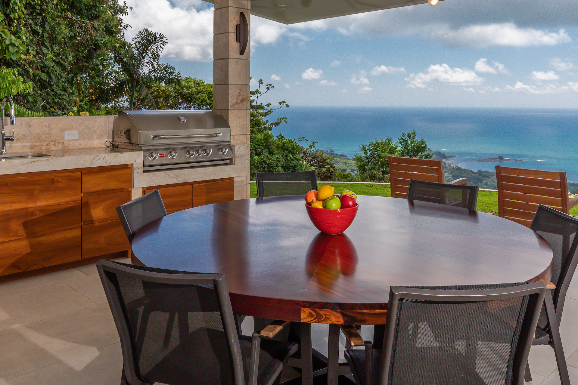 This property is a stunning luxury estate that sits at the top of Marina Vista 2 in Dominicalito, Costa Rica. One of the few ocean view properties that have sunsets dropping into the Pacific 365 days of the year, plus... you\'ll be entertained by the abundant wildlife in the primary jungle wrapping the house. There is an electronic gate at the entrance of the development and another personal electronic gate for the property which is at the end of the road; the property puts a premium on privacy. The land measures 6.57 acres (2.66 hectares) and includes guardian ceiba trees standing nearly 200 feet tall.\n\nThe 3,200 sq. ft. contemporary-modern residence features 3 large bedrooms and 3.5 bathrooms, all with high-end finishes. The ocean view master suite is spacious and stunning. A king bed, air conditioning (although you won't need it at 1,400 ft. elevation), and large sliding glass doors are just a few elements that will enrich your living experience. The master bath could be the most luxurious room in the home... enjoy a large walk-in closet, ocean view rain shower, plus dual stone basins and a custom stone bathtub all imported from Indonesia.\n\nThe second and third bedrooms (north and south of the entry) are en suite, and the south bedroom has a walk-out to a small jungle view patio. The wildlife is very active here, and you will enjoy daily sightings of white-faced and howler monkeys, toucans, and parrots among many other bird and animal species. All bedrooms are equipped with air conditioning, closets, and high-end finishes. In the great room, there is an extra half-bath with a gorgeous marble sink.\n\nThe modern kitchen has imported Italian cabinets, quality stainless steel fixtures, and Frigidaire Professional appliances. Whether leisurely washing dishes while taking in the ocean view, watching the kids in the swimming pool, or entertaining guests in the great room, the kitchen design is bright and open. The home comes fully furnished with a variety of custom hardwood pieces, including--Cristobal, Nazareno, Teca, Ojoche, and more.\n\nMost of your waking life in Costa Rica spent outside. An expansive, ocean-view patio spans the entire length of the house. The outdoor dining area has a large round table with 6 chairs, a stainless grill, and stainless steel sink all trimmed in coralina. In the middle, you have a second living room area with a long couch, chairs, and tables. On the master side of the patio, there are two couches perfect for reading or a nap. Just a few steps away, you reach the infinity swimming pool with stunning natural stone tiles that spill into an endless horizon. There is a sloped beach for those wanting to relax and a wider section for those wanting some exercise. The breeze blows up from the ocean by day, and down from the mountain by night... the temperatures are close to ideal.\n\nIf you are returning muddily from hiking, you can enter through the laundry/mud-room and save time from cleaning the pristine floors. In fact, there is a gorgeous private trail on the property that leads to a giant Ceiba tree and beyond. The property has filtered water provided by a legal, documented well and holding tanks. There is the perfect spot to add an ocean view casita or just enjoy the immaculate gardens, with its many fruit trees, as it is.\n\nSitting at the top of quiet, secure development, this home is your luxury escape in the jungle.
