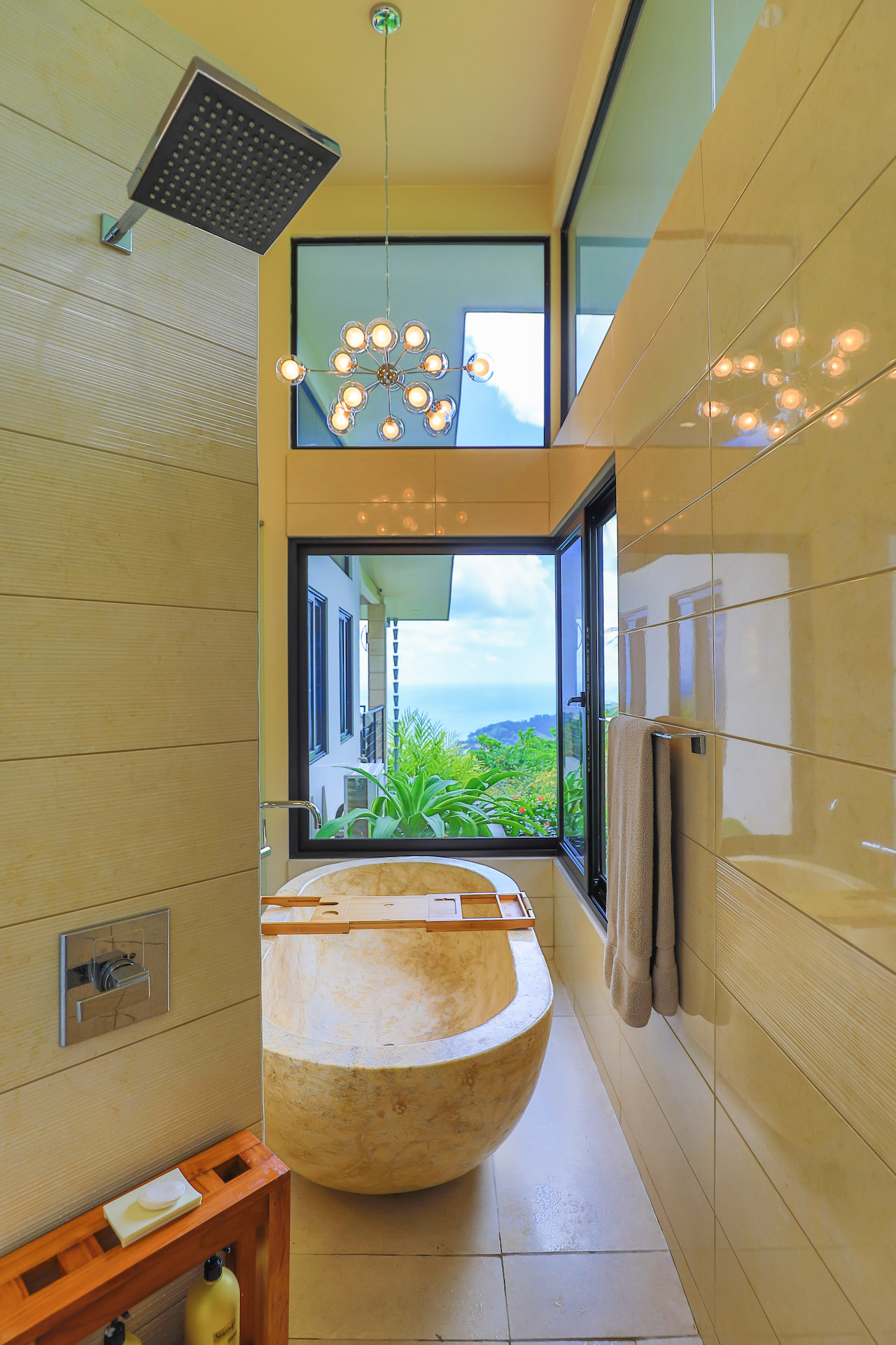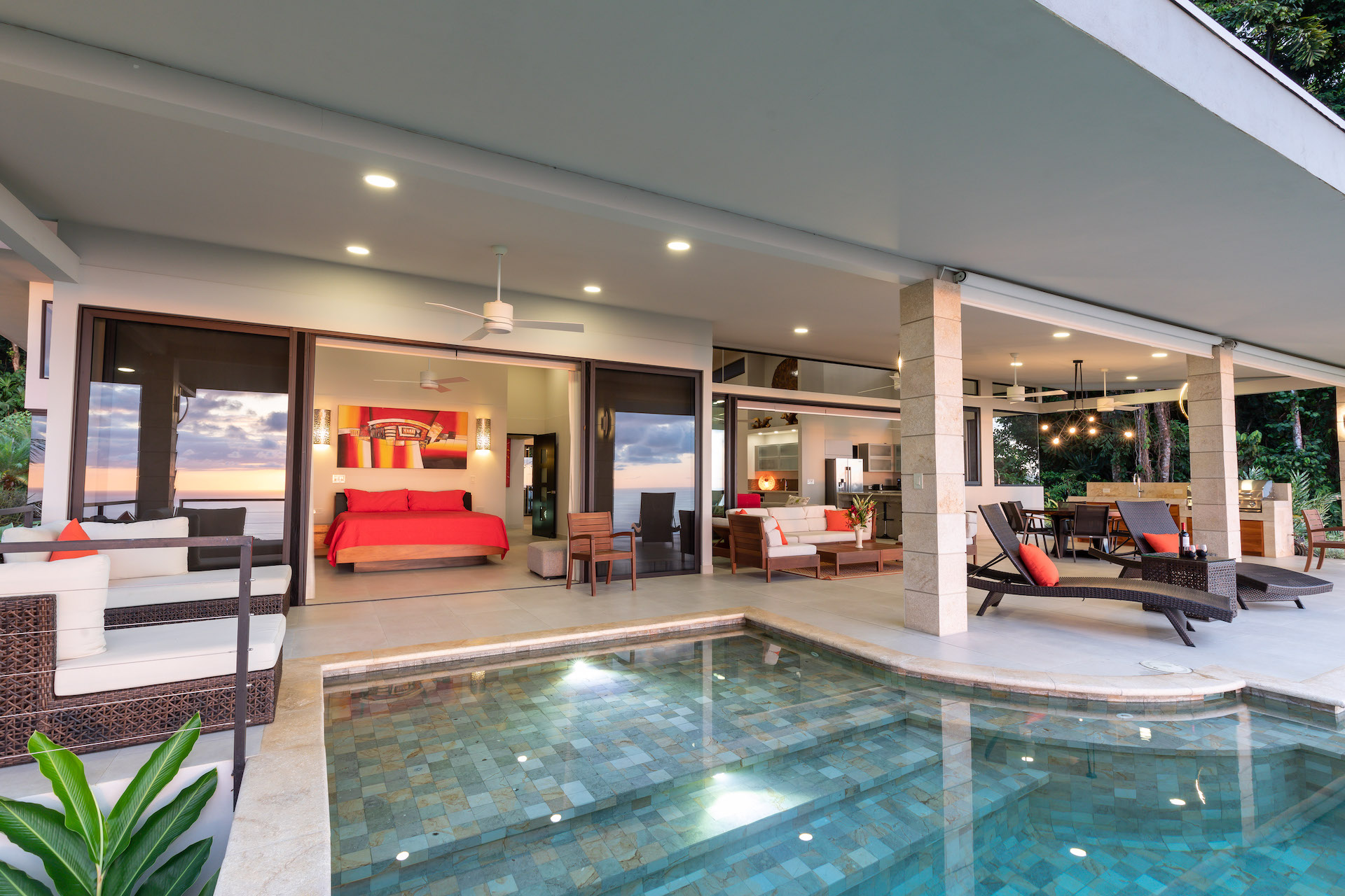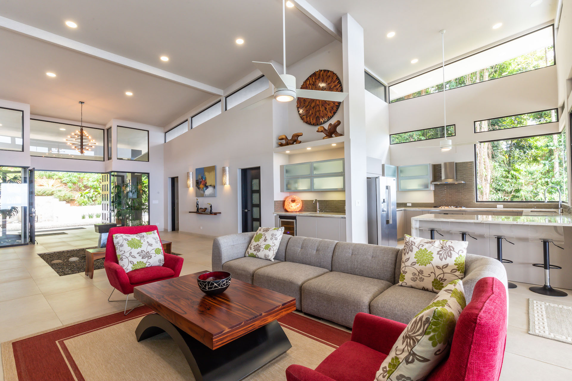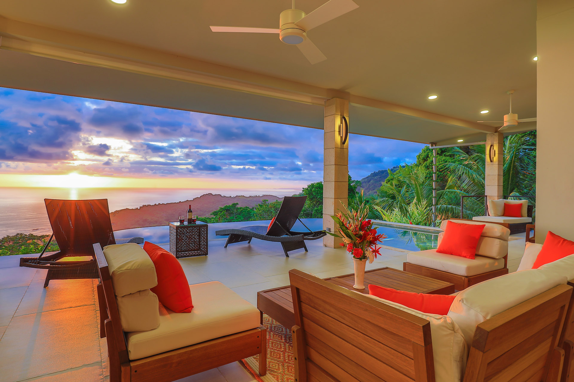 This property is a stunning luxury estate that sits at the top of Marina Vista 2 in Dominicalito, Costa Rica. One of the few ocean view properties that have sunsets dropping into the Pacific 365 days of the year, plus... you\'ll be entertained by the abundant wildlife in the primary jungle wrapping the house. There is an electronic gate at the entrance of the development and another personal electronic gate for the property which is at the end of the road; the property puts a premium on privacy. The land measures 6.57 acres (2.66 hectares) and includes guardian ceiba trees standing nearly 200 feet tall.\n\nThe 3,200 sq. ft. contemporary-modern residence features 3 large bedrooms and 3.5 bathrooms, all with high-end finishes. The ocean view master suite is spacious and stunning. A king bed, air conditioning (although you won't need it at 1,400 ft. elevation), and large sliding glass doors are just a few elements that will enrich your living experience. The master bath could be the most luxurious room in the home... enjoy a large walk-in closet, ocean view rain shower, plus dual stone basins and a custom stone bathtub all imported from Indonesia.\n\nThe second and third bedrooms (north and south of the entry) are en suite, and the south bedroom has a walk-out to a small jungle view patio. The wildlife is very active here, and you will enjoy daily sightings of white-faced and howler monkeys, toucans, and parrots among many other bird and animal species. All bedrooms are equipped with air conditioning, closets, and high-end finishes. In the great room, there is an extra half-bath with a gorgeous marble sink.\n\nThe modern kitchen has imported Italian cabinets, quality stainless steel fixtures, and Frigidaire Professional appliances. Whether leisurely washing dishes while taking in the ocean view, watching the kids in the swimming pool, or entertaining guests in the great room, the kitchen design is bright and open. The home comes fully furnished with a variety of custom hardwood pieces, including--Cristobal, Nazareno, Teca, Ojoche, and more.\n\nMost of your waking life in Costa Rica spent outside. An expansive, ocean-view patio spans the entire length of the house. The outdoor dining area has a large round table with 6 chairs, a stainless grill, and stainless steel sink all trimmed in coralina. In the middle, you have a second living room area with a long couch, chairs, and tables. On the master side of the patio, there are two couches perfect for reading or a nap. Just a few steps away, you reach the infinity swimming pool with stunning natural stone tiles that spill into an endless horizon. There is a sloped beach for those wanting to relax and a wider section for those wanting some exercise. The breeze blows up from the ocean by day, and down from the mountain by night... the temperatures are close to ideal.\n\nIf you are returning muddily from hiking, you can enter through the laundry/mud-room and save time from cleaning the pristine floors. In fact, there is a gorgeous private trail on the property that leads to a giant Ceiba tree and beyond. The property has filtered water provided by a legal, documented well and holding tanks. There is the perfect spot to add an ocean view casita or just enjoy the immaculate gardens, with its many fruit trees, as it is.\n\nSitting at the top of quiet, secure development, this home is your luxury escape in the jungle.