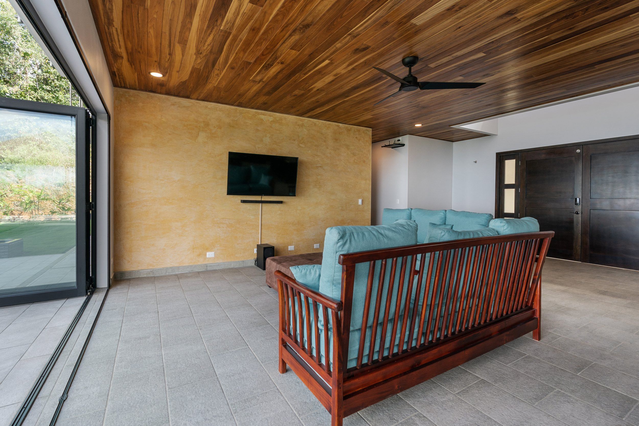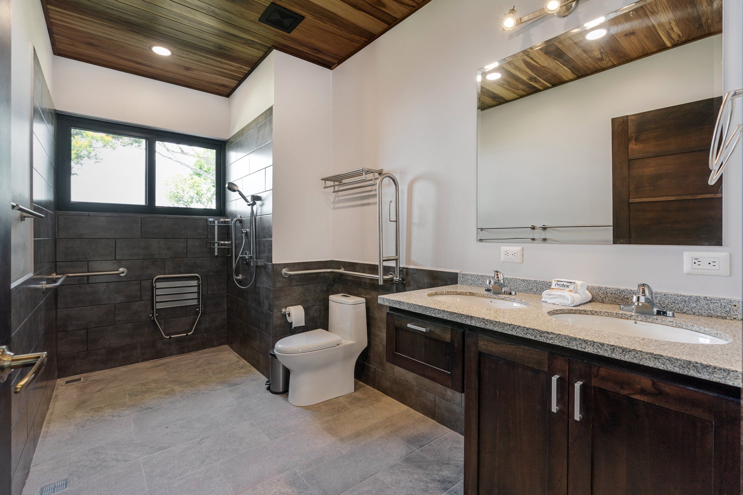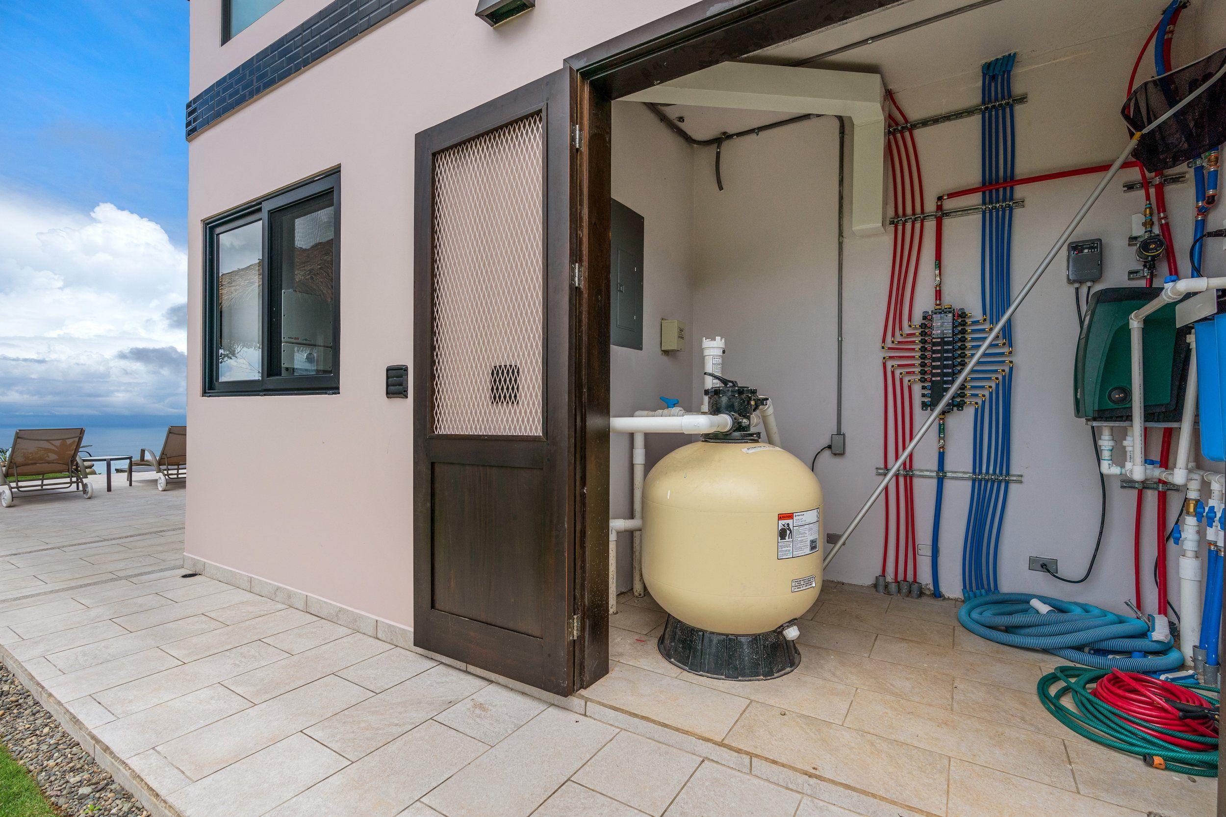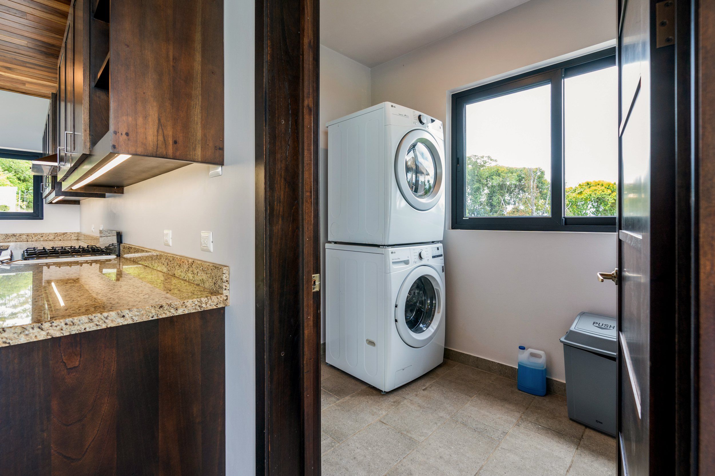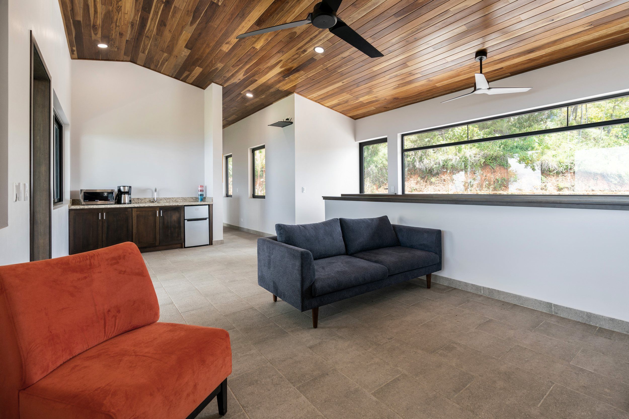 Brand new 5 bedroom and 4.5 bath luxury home perched on the mountain top of Lagunas near beach town of Dominical. Absolutely stunning ocean, coastline, mountain, and valley views in every direction. The home was recently completed this year and ready for a new owner to enjoy as their own private estate or rent out as the ultimate vacation rental!\n\nArrive through the electronic gates and drive up the paved private driveway with covered parking right at the front door. Then walk in to the expansive living room, dining room, and kitchen with sliding glass rear wall opening completely to the infinity pool and outdoor covered rancho with BBQ area. Downstairs there a half bath for guests that also has access from the pool area. Down the long hallways are two bedrooms with a full bath in between.\n\nUpstairs there is a secondary living room/den with wet bar. Also two balconies one on the mountain and valley side for sunrises and the ocean side for sunsets. The principal bedroom has its own private balcony and enormous ensuite bathroom with ocean view shower and soaking tub. Two more bedrooms with full baths and their own private balconies complete the upstairs.\n\nThe entire house has Laurel wood ceilings, porcelain tile, and granite counter tops throughout. Not often there is a 5 bedroom home on the market! And this home stands out for its occupancy potential, outstanding panoramic views, elevation for cooler breezes and temps day and night, and location 15 minutes to Dominical.