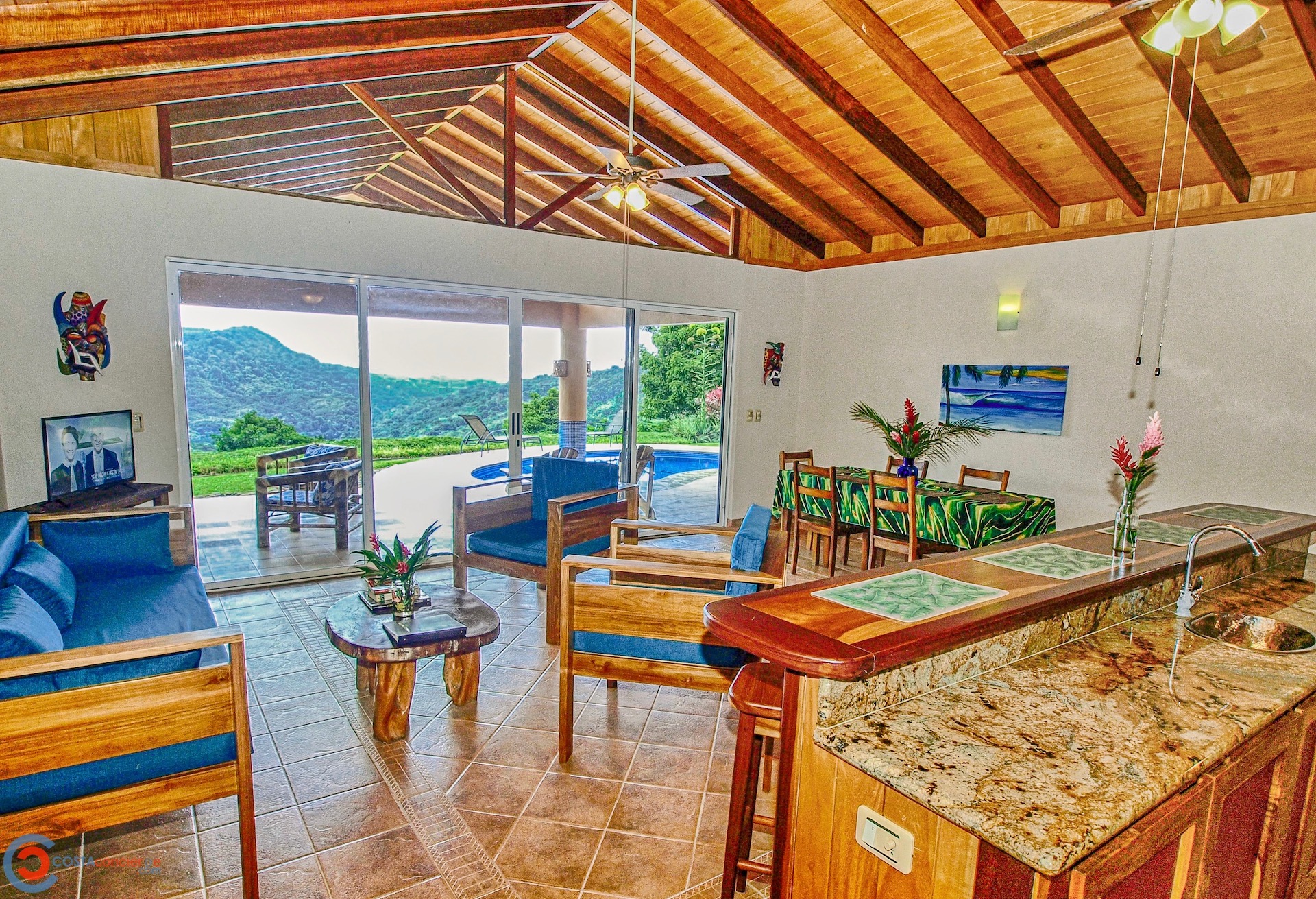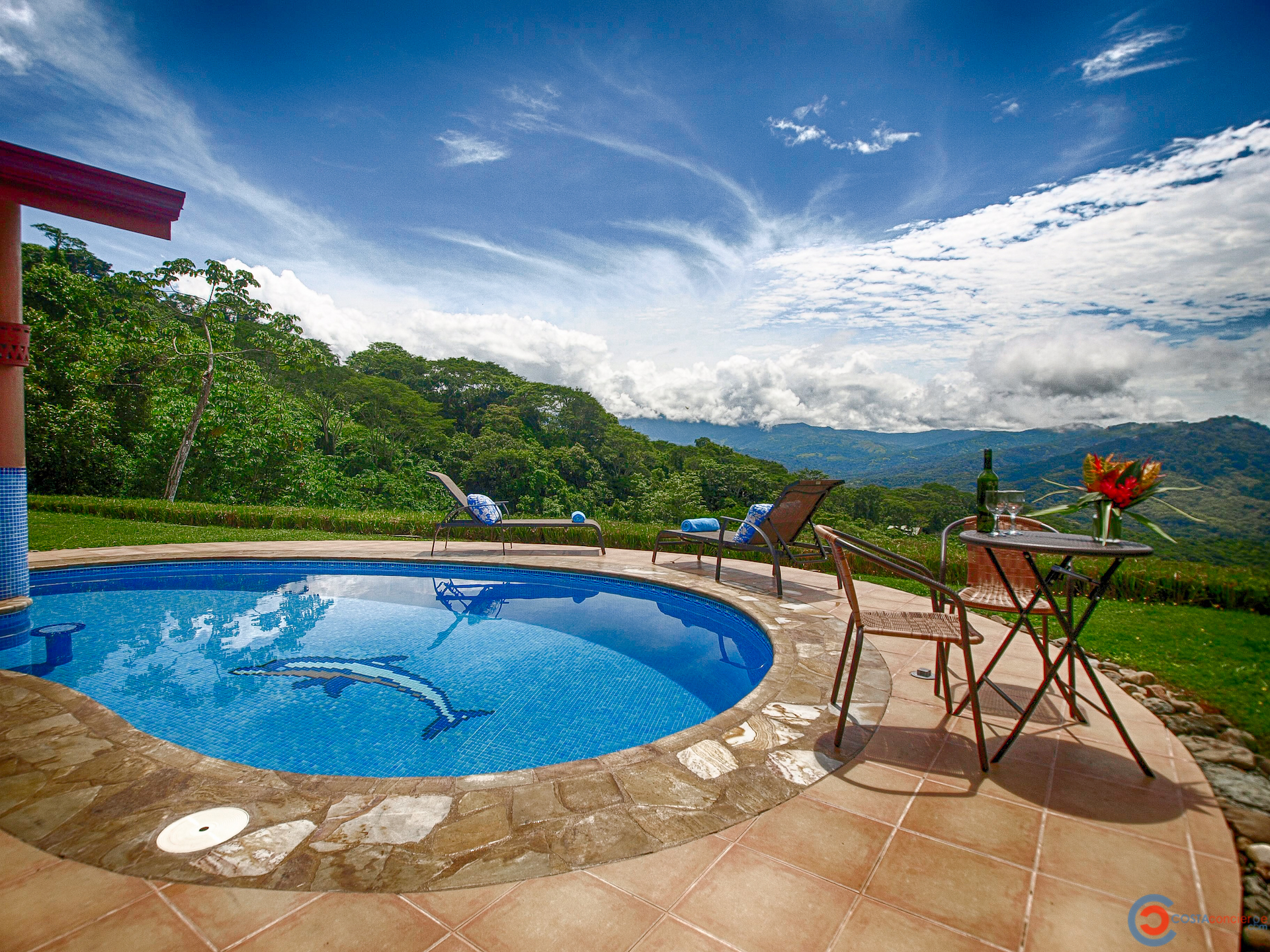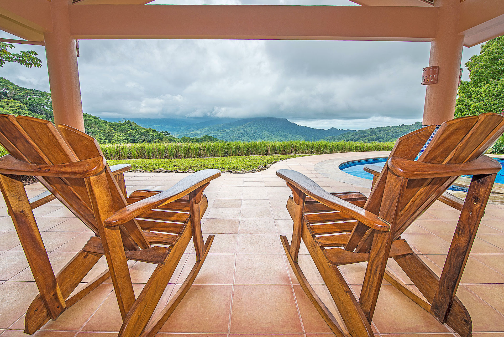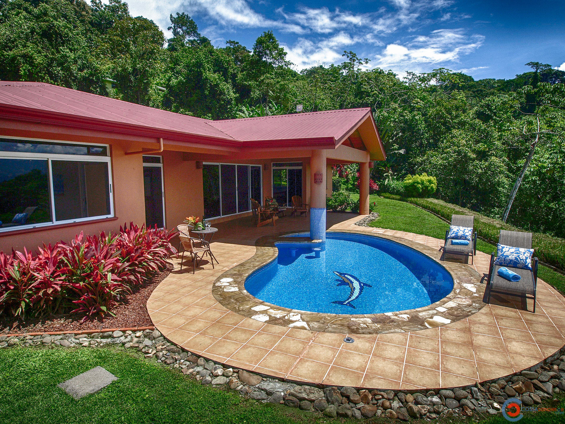 Spectacular ocean-view pool home on 5 acres with several additional building sites located in the desirable & upscale neighborhood of Lagunas in the mountains above Dominical. The property site sits at an elevation of 1,200 feet with year-round cool mountain breezes and fantastic views of the Pacific Ocean, the Baru River Valley and the Osa Peninsula. The house was custom-built to US standards in \'07 and consists of 3 bedrooms, 3 full bathrooms, 2,500 sq ft, concrete block construction, single-hung windows, vaulted custom wood malena ceilings, concrete driveway with remote-controlled security gate, swimming pool, huge covered carport & rear patio. Kitchen has granite counter tops with full back splash, custom teak cabinets, detached island bar finished in teak with bar stools & cocktail sink, gas oven/range, full-size side-by-side refrigerator, microwave, double stainless sink with disposal, fully equipped, and separate laundry room with full-size washer & dryer. The single-story split floor plan is both unique & desirable for Costa Rica with each bedroom having a full-size bathroom & shower, walk-in closets, ceiling fans & sliding glass doors opening up onto the expansive pool deck. The layout can comfortably accommodate 3 couples/families as a vacation rental with each having their own living space & privacy. The 5-acre site is meticulously landscaped with many colorful gardens & mature fruit trees including a covered vivero producing a variety of vegetables, herbs & fruit. There is abundant wildlife on the property including monkeys, sloths, toucans, scarlett macaws, toucans, white-tailed deer, pizotes, wild boar & many other species of birds & reptiles. Lagunas is an organized community that offers the best roads, treated water system and security in the southern zone. Great central location only 10 minutes to the town & beaches of Dominical, 10 minutes to Hacienda Baru National Park, 30 minutes to Quepos/Manual Antonio National Park and 25 minutes to the town & services of San Isidro/Perez Zeledon. There are many outdoor activities available in the immediate area including zip lines, white water rafting, ATV tours, fishing, surfing, kayaking, hiking, waterfalls & much more. Please contact us for a showing!\n\nPhotos on Flickr please click the link below \nhttps://www.flickr.com/photos/dominicalrealty/sets/72157656186979299
