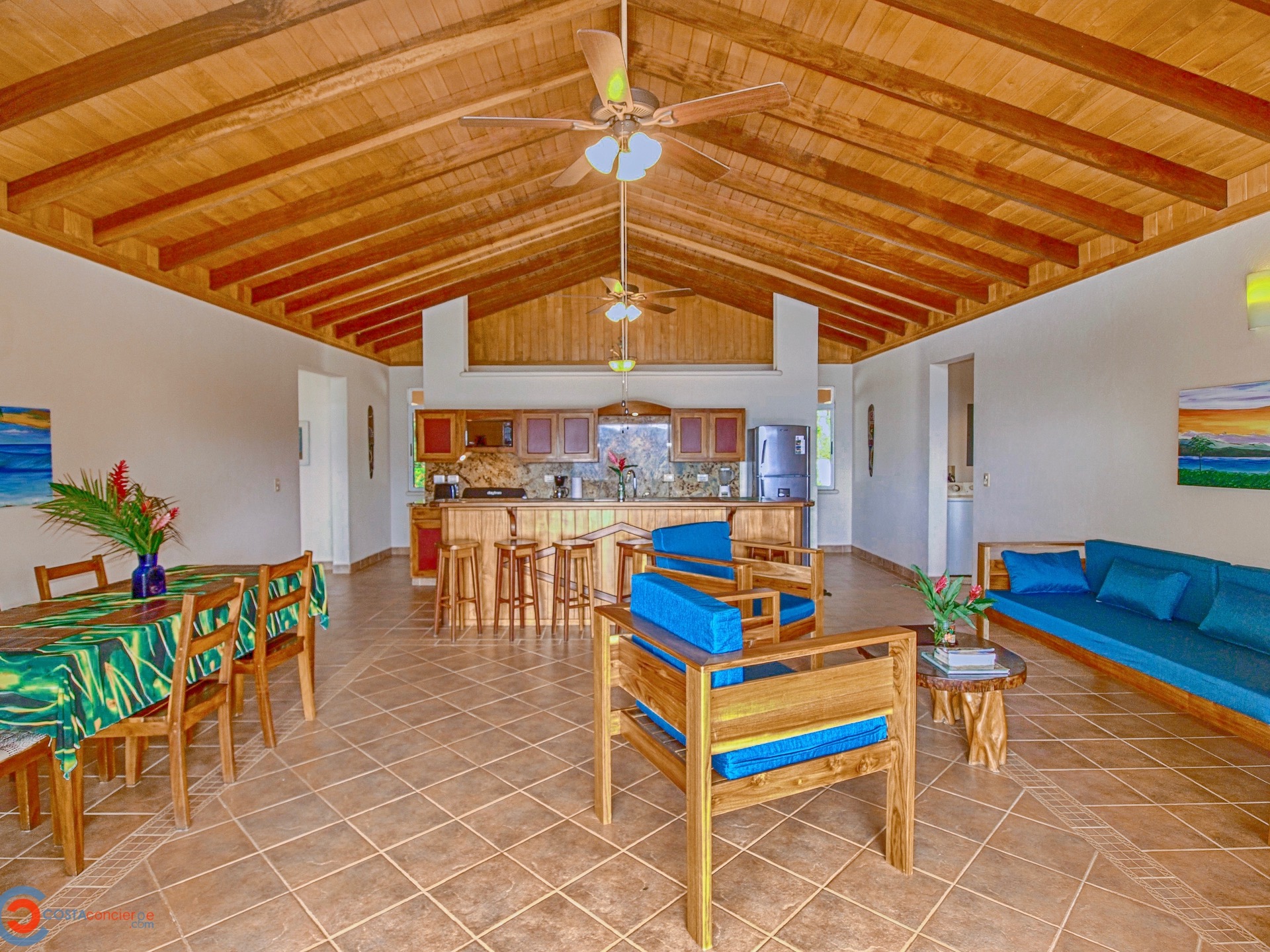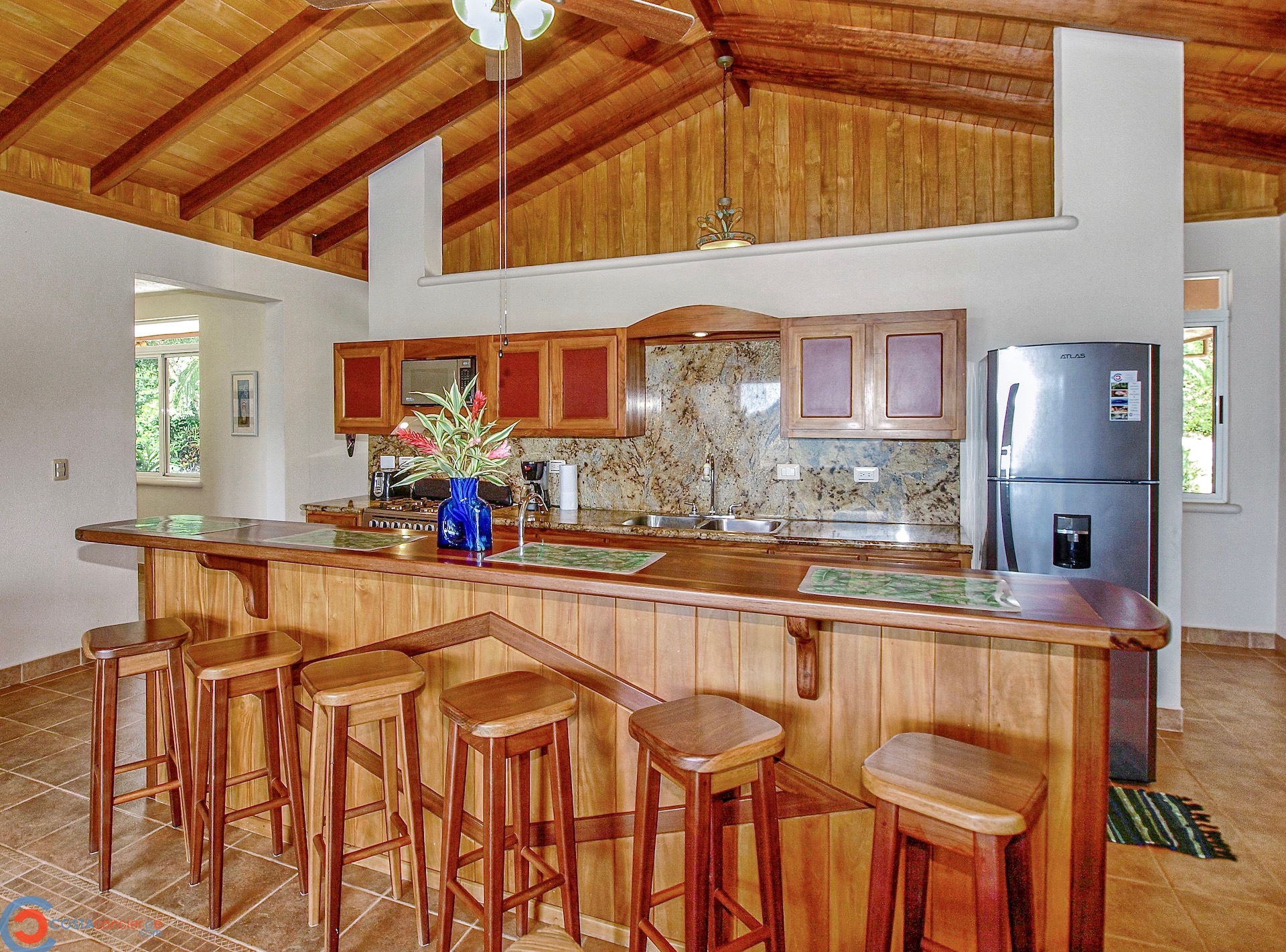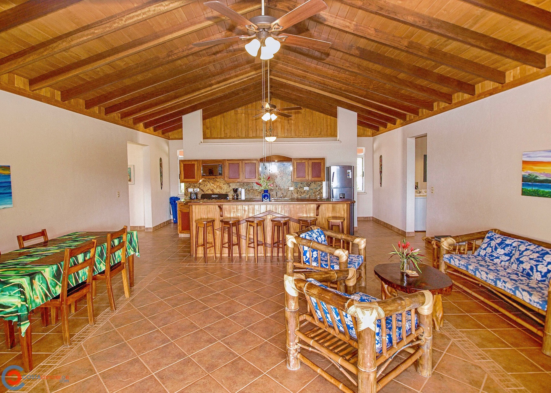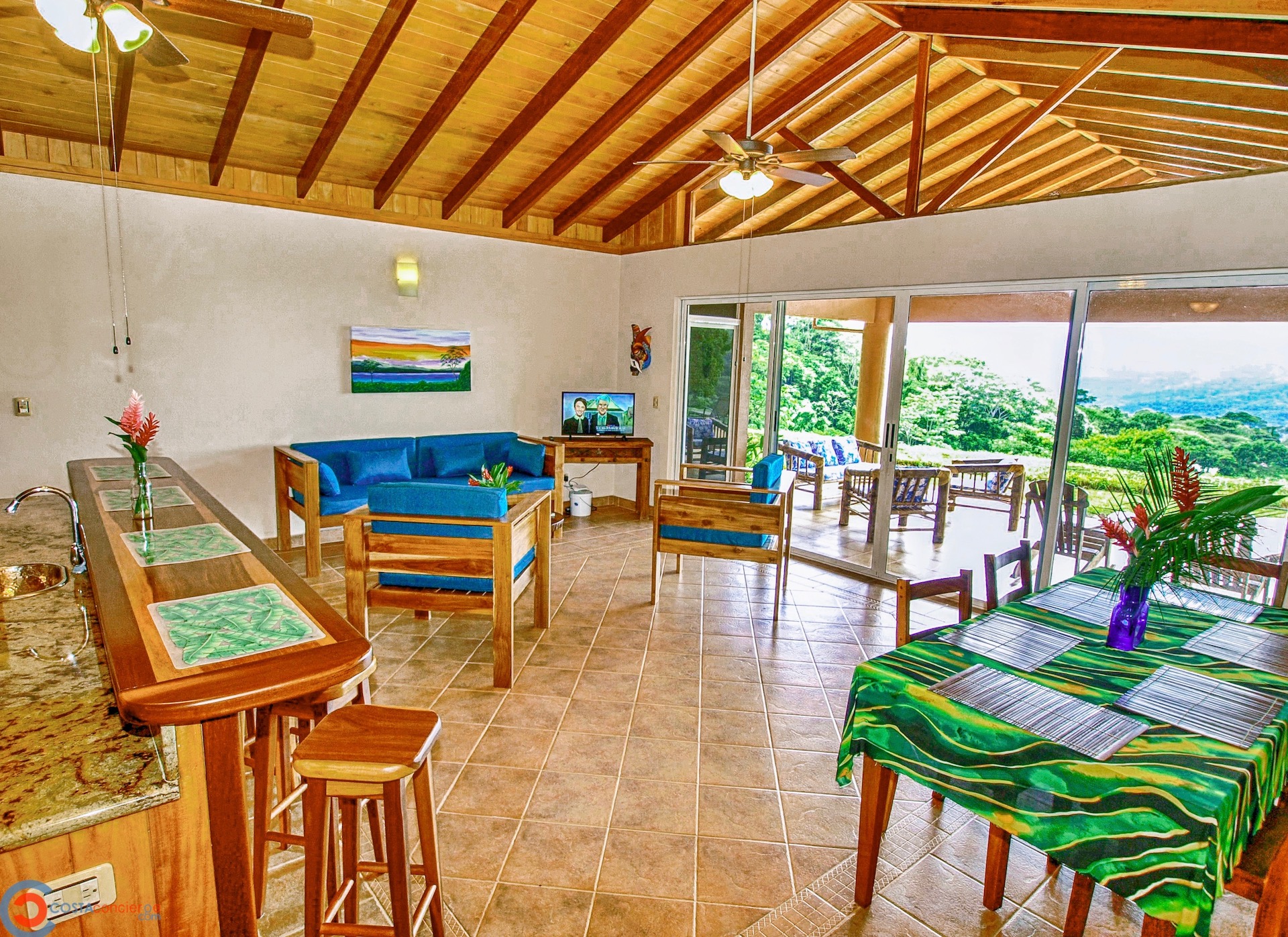 Spectacular ocean-view pool home on 5 acres with several additional building sites located in the desirable & upscale neighborhood of Lagunas in the mountains above Dominical. The property site sits at an elevation of 1,200 feet with year-round cool mountain breezes and fantastic views of the Pacific Ocean, the Baru River Valley and the Osa Peninsula. The house was custom-built to US standards in \'07 and consists of 3 bedrooms, 3 full bathrooms, 2,500 sq ft, concrete block construction, single-hung windows, vaulted custom wood malena ceilings, concrete driveway with remote-controlled security gate, swimming pool, huge covered carport & rear patio. Kitchen has granite counter tops with full back splash, custom teak cabinets, detached island bar finished in teak with bar stools & cocktail sink, gas oven/range, full-size side-by-side refrigerator, microwave, double stainless sink with disposal, fully equipped, and separate laundry room with full-size washer & dryer. The single-story split floor plan is both unique & desirable for Costa Rica with each bedroom having a full-size bathroom & shower, walk-in closets, ceiling fans & sliding glass doors opening up onto the expansive pool deck. The layout can comfortably accommodate 3 couples/families as a vacation rental with each having their own living space & privacy. The 5-acre site is meticulously landscaped with many colorful gardens & mature fruit trees including a covered vivero producing a variety of vegetables, herbs & fruit. There is abundant wildlife on the property including monkeys, sloths, toucans, scarlett macaws, toucans, white-tailed deer, pizotes, wild boar & many other species of birds & reptiles. Lagunas is an organized community that offers the best roads, treated water system and security in the southern zone. Great central location only 10 minutes to the town & beaches of Dominical, 10 minutes to Hacienda Baru National Park, 30 minutes to Quepos/Manual Antonio National Park and 25 minutes to the town & services of San Isidro/Perez Zeledon. There are many outdoor activities available in the immediate area including zip lines, white water rafting, ATV tours, fishing, surfing, kayaking, hiking, waterfalls & much more. Please contact us for a showing!\n\nPhotos on Flickr please click the link below \nhttps://www.flickr.com/photos/dominicalrealty/sets/72157656186979299