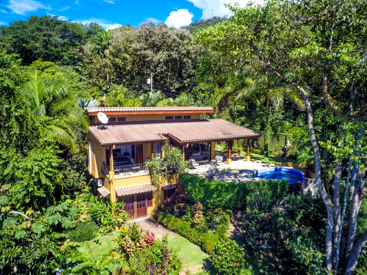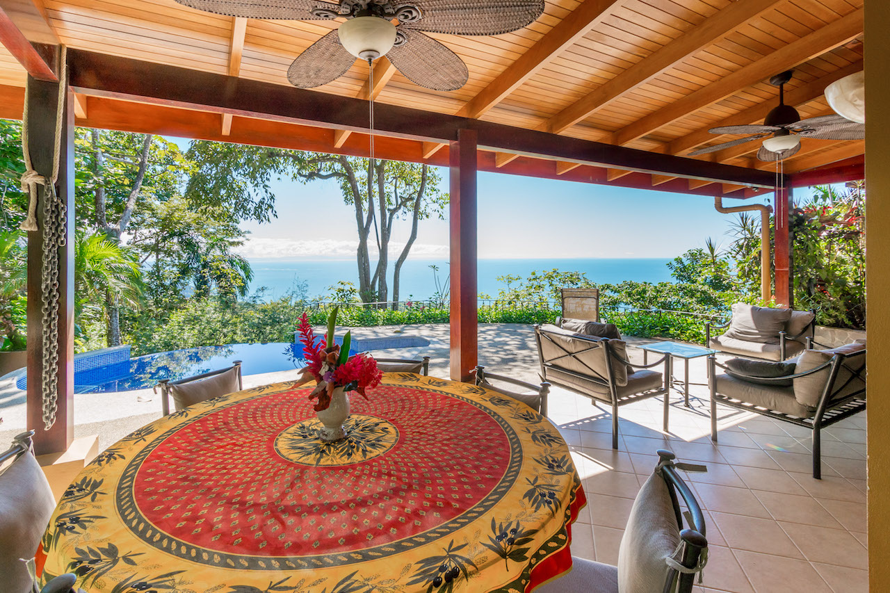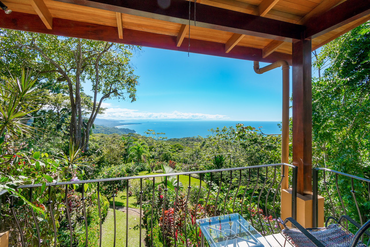 Absolutely stunning ocean and coastline view property with two homes and additional building site situated in Escaleras, Dominical; which is the Beverly Hills of the Costa Ballena with multi-million dollar neighboring homes. Prime real estate just 2.2 kms off the Coastal Highway and 10 minutes to various beaches, Dominical, and Uvita. This turnkey home and guest/caretaker home is ready for you to move in or rent out!\n\nThe main house has a tropical indoor/outdoor living experience mixed with the feel of a Tuscan Villa nestled within your very own botanical gardens. The kitchen with granite counter tops and stainless steel appliances opens to the living room with fold-away doors allowing the outside porch and dining area to become part of the home. Ideally designed for the refreshing ocean breezes and year round warm weather. The master bedroom has its own private ocean view balcony and a bathroom with indoor and outdoor ocean view showers. Downstairs is the guest room with its own on suite bathroom and terrace with gardens full of flowers that attract butterflies and humming birds.\n\nThe perfectly manicured landscaping leads down to the additional building site that could be used for a luxury estate sized home. You could build a custom home on par with others in the immediate area ranging from over $2m to $3.9m. This is one of the best views available in the mountains above Dominical overlooking the Pacific Ocean, famous Whale's Tail formation of Marino Ballena National Park, Cano Island, Ballena Island, Punta Achoite, and all the way to the Osa Peninsula in the south!\n\nThe caretaker house or guest house is beside this area and has its own private gated entrance. The current caretaker home is 2 bedrooms and 1 bath with large kitchen and living room area. Could easily converted to a lovely guest house. \n\nTremendous investment opportunity for two homes plus an additional building site to build your dream estate in the most desirable location the Dominical-Uvita area has to offer!!\n\nHighlights:\n-Amazing jaw-dropping views of coastline, Whale\'s Tail, Cano Island, Pacific Ocean, and Punta Achoite.\n-Easy access only 2.2 kms from paved road and 10 minutes to Uvita, Dominical, and various beaches.\n-High speed internet available, SkyTV, and Ruku for Netflix.\n-Community concessioned well water.\n-Fold away doors offer a completely open concept for the living area.\n-Manicured gardens and yard, plus large extra building site for another future estate size home.\n-Wildlife such as: Howler and White-Face Monkeys, sloths, toucans, parrots, and more.\n-Separate electronic gated entrances for both homes.