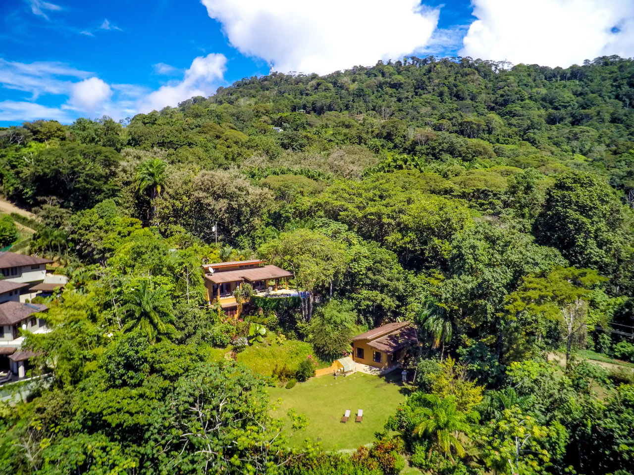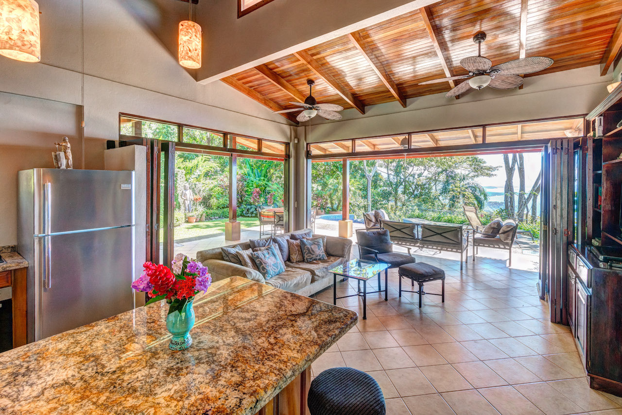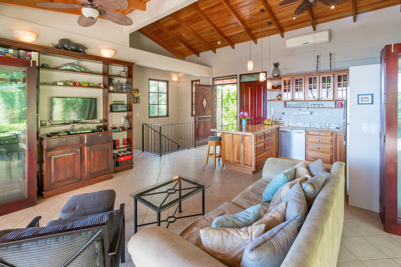 Absolutely stunning ocean and coastline view property with two homes and additional building site situated in Escaleras, Dominical; which is the Beverly Hills of the Costa Ballena with multi-million dollar neighboring homes. Prime real estate just 2.2 kms off the Coastal Highway and 10 minutes to various beaches, Dominical, and Uvita. This turnkey home and guest/caretaker home is ready for you to move in or rent out!\n\nThe main house has a tropical indoor/outdoor living experience mixed with the feel of a Tuscan Villa nestled within your very own botanical gardens. The kitchen with granite counter tops and stainless steel appliances opens to the living room with fold-away doors allowing the outside porch and dining area to become part of the home. Ideally designed for the refreshing ocean breezes and year round warm weather. The master bedroom has its own private ocean view balcony and a bathroom with indoor and outdoor ocean view showers. Downstairs is the guest room with its own on suite bathroom and terrace with gardens full of flowers that attract butterflies and humming birds.\n\nThe perfectly manicured landscaping leads down to the additional building site that could be used for a luxury estate sized home. You could build a custom home on par with others in the immediate area ranging from over $2m to $3.9m. This is one of the best views available in the mountains above Dominical overlooking the Pacific Ocean, famous Whale's Tail formation of Marino Ballena National Park, Cano Island, Ballena Island, Punta Achoite, and all the way to the Osa Peninsula in the south!\n\nThe caretaker house or guest house is beside this area and has its own private gated entrance. The current caretaker home is 2 bedrooms and 1 bath with large kitchen and living room area. Could easily converted to a lovely guest house. \n\nTremendous investment opportunity for two homes plus an additional building site to build your dream estate in the most desirable location the Dominical-Uvita area has to offer!!\n\nHighlights:\n-Amazing jaw-dropping views of coastline, Whale\'s Tail, Cano Island, Pacific Ocean, and Punta Achoite.\n-Easy access only 2.2 kms from paved road and 10 minutes to Uvita, Dominical, and various beaches.\n-High speed internet available, SkyTV, and Ruku for Netflix.\n-Community concessioned well water.\n-Fold away doors offer a completely open concept for the living area.\n-Manicured gardens and yard, plus large extra building site for another future estate size home.\n-Wildlife such as: Howler and White-Face Monkeys, sloths, toucans, parrots, and more.\n-Separate electronic gated entrances for both homes.