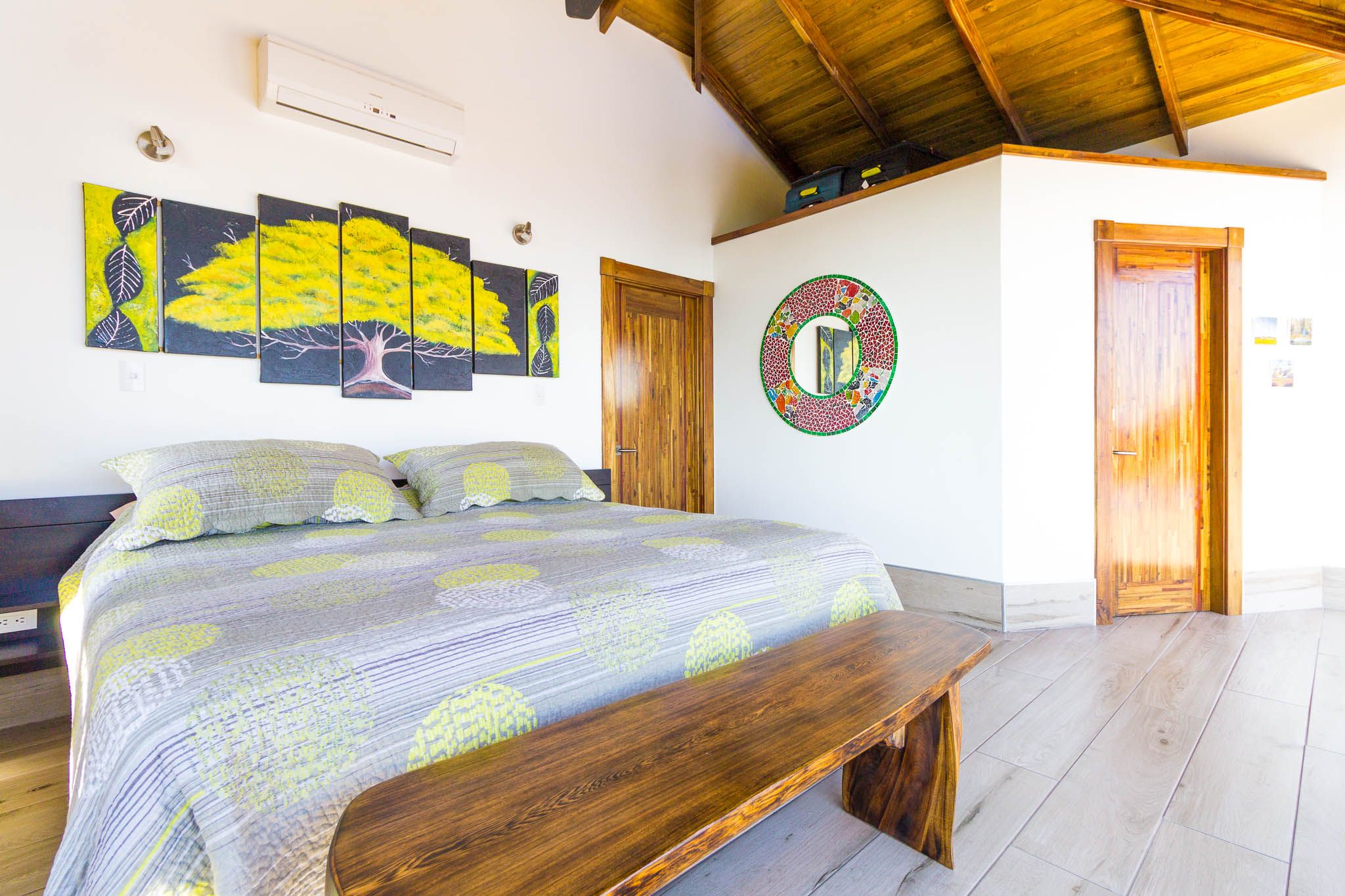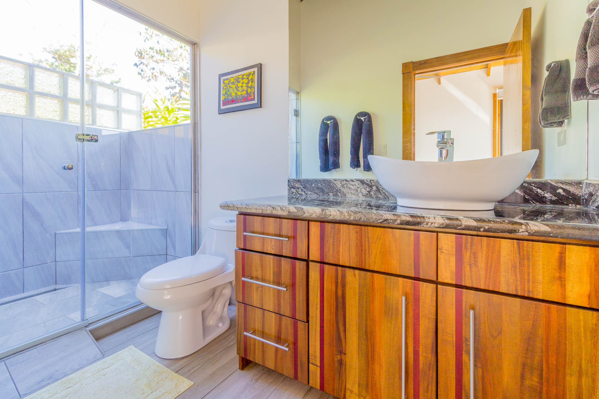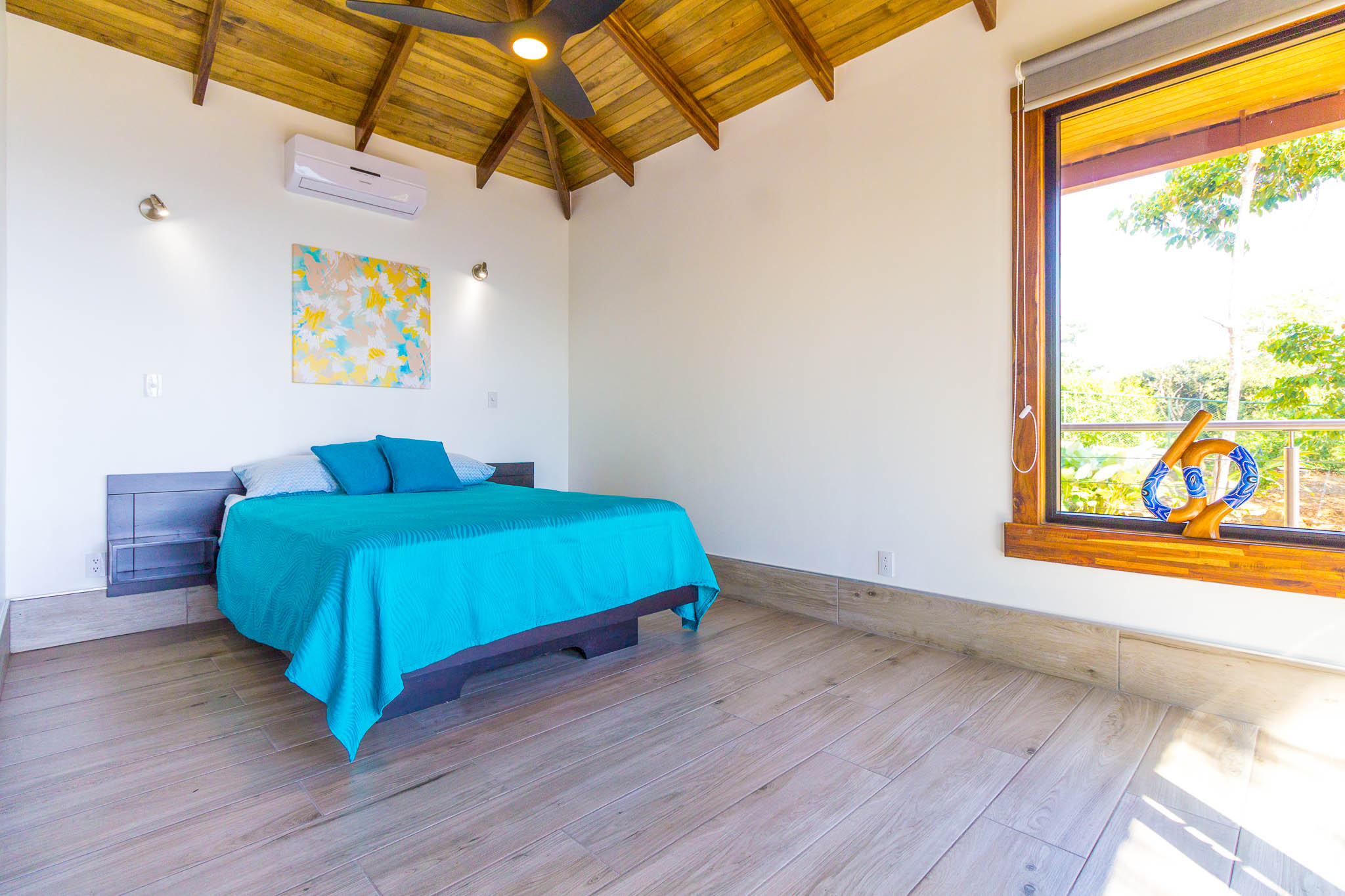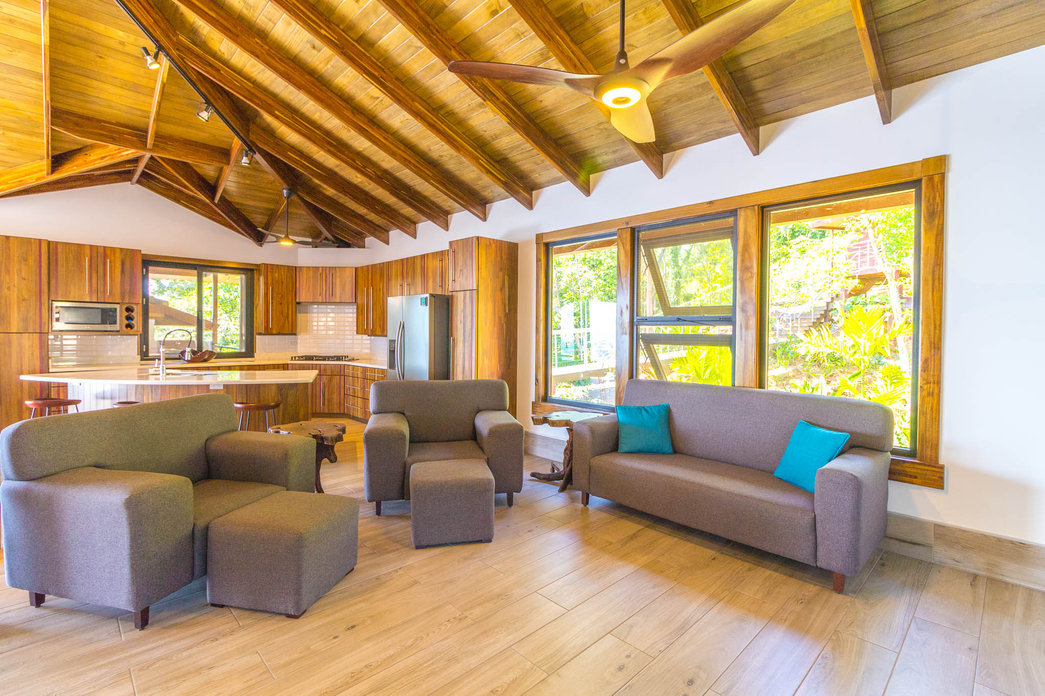 Enjoy unbelievable sunsets from the large infinity pool every day!\n\nThe unique design, painstakingly designed by a North American builder, includes a main open-concept living/kitchen/dining area, with a separate nook with bunk beds that kids are sure to love! The gourmet kitchen has high-end stainless-steel appliances, including a five-burner gas stove and cooktop, dishwasher, microwave, and refrigerator. A beautiful custom-made wooden dining table seats eight and has a prime view of the ocean and sunsets! The patio doors off the dining area open wide to let the indoor living space flow seamlessly into the outdoor living space, with a seating area, a full outdoor kitchen, and, of course, the amazing saltwater pool! \n\nThere are three full individual bedroom suites off the main area, each with beautiful floor-to-ceiling glass walls so that you can enjoy the view no matter which room you\'re in! The comfortable, spacious bedrooms are each their own individual cabina with ensuite bathrooms, including gorgeous, private outdoor showers, marble countertops, and ceramic basin sinks. The master bathroom also includes a luxurious soaking bathtub. Two bedrooms are just off the main area of the house and are just steps to the pool, while the third bedroom is across a charming walk bridge on a more private part of the property. \n\nThe attention to detail and design in this house is amazing. There is beautiful custom woodwork throughout the house, with teak stairs and walkways and acacia cabinetry, furniture, and beams throughout the house, with purple heart wood accents. The accordion screens and telescoping patio doors offer maximum flow throughout the house. Inset lights on the stairs and walkways give a soft glow at night. The fully fenced, .6-acre property is beautifully landscaped, and monkeys, toucans, and sloths regularly visit the property! The property has high-speed Internet, abundant storage, a dry room, and is conveniently located just a few minutes from the main highway in the prestigious Escaleras neighborhood. Close to Dominical and Uvita, everything you need is just minutes away, while you get to enjoy the peace and tranquility of this beautiful home! It is an oasis, but with all the modern conveniences you desire!
