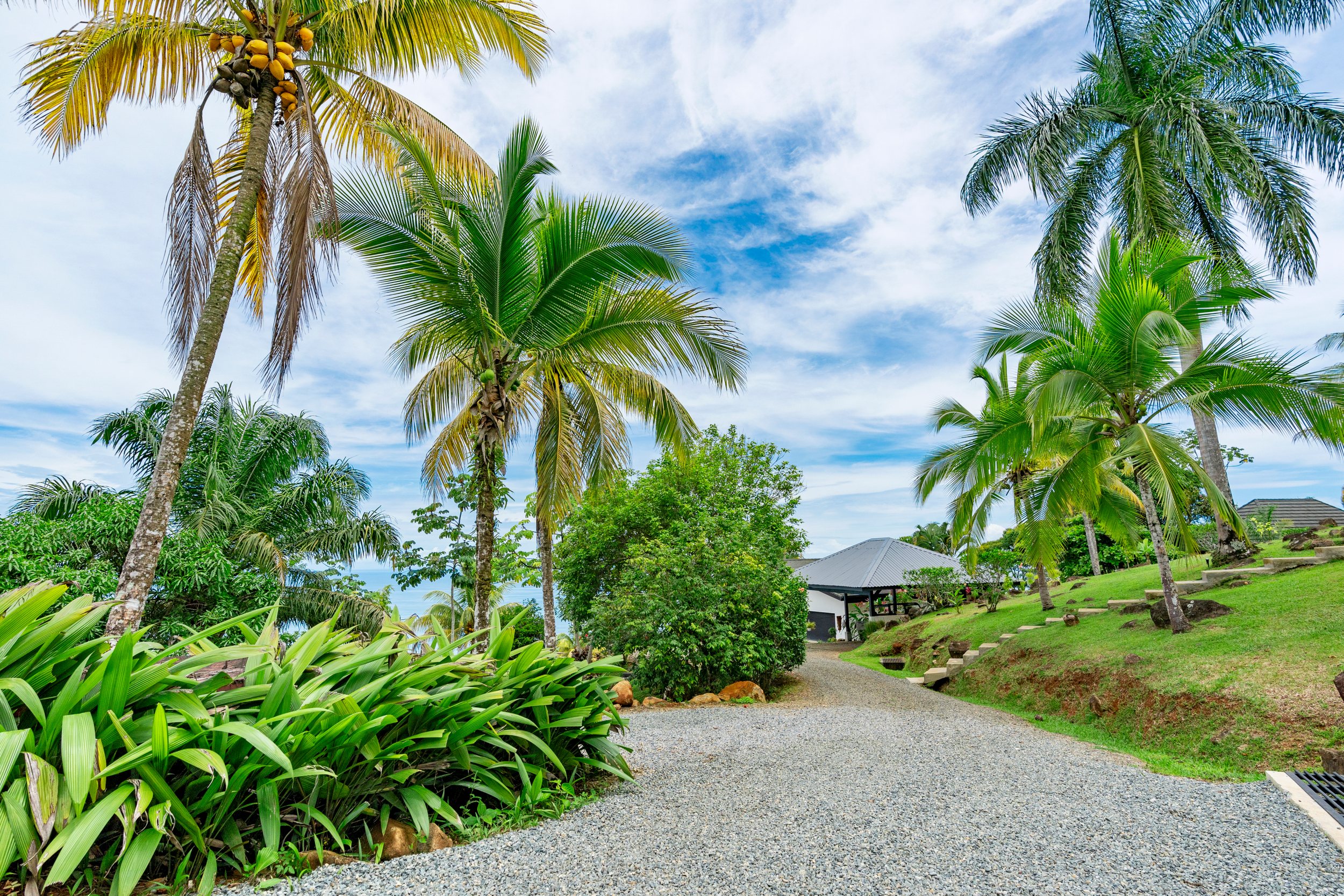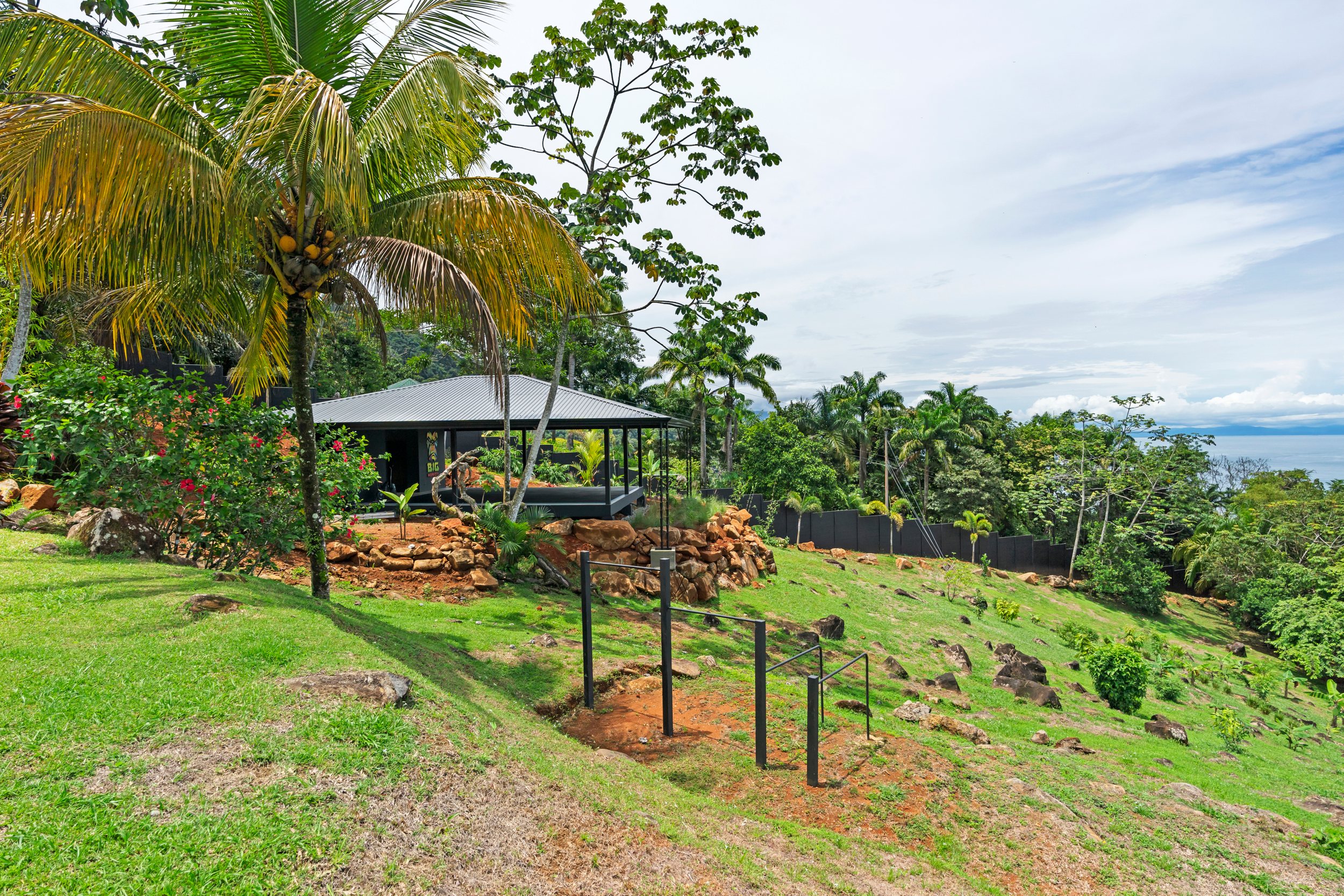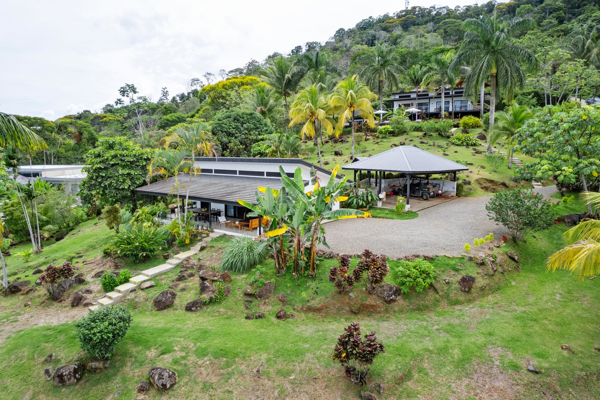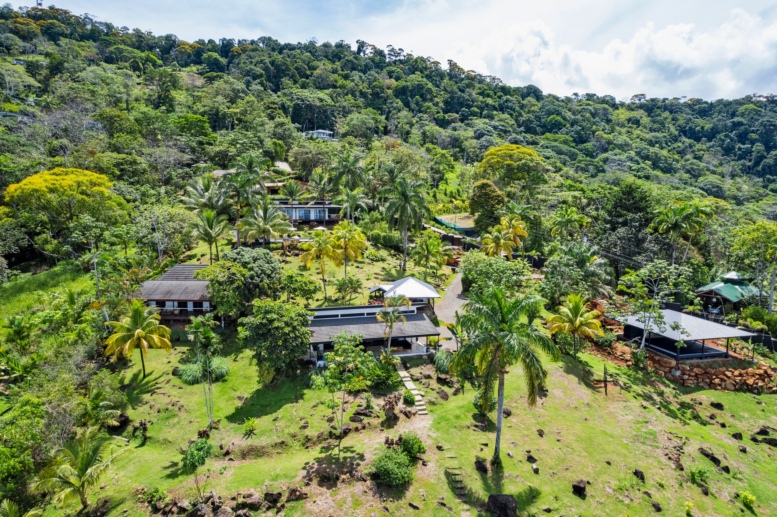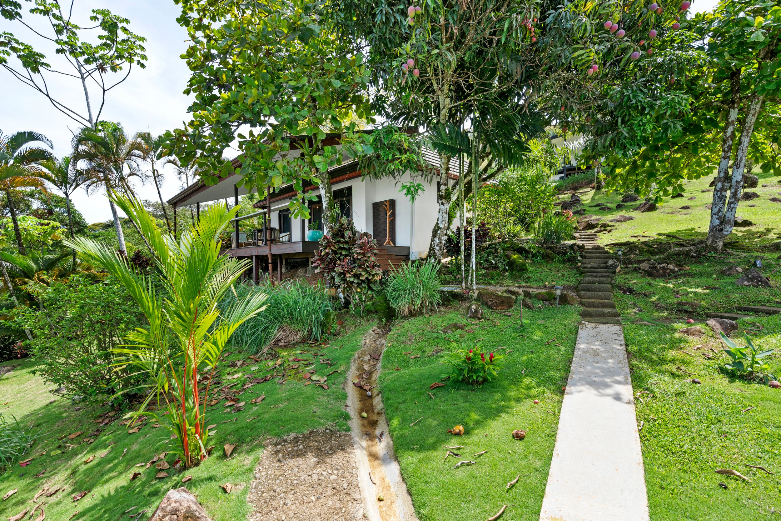 The Property Some of the most usable land available in the Escaleras mountains, a true rarity! Gently sloped terrain with ocean views would allow a new owner to build their dream estate home or continue with more villas creating a rental business and/or even boutique resort. Plenty of areas to build on the lower half of the land. The rocks and boulders scattered throughout make for interesting landscaping possibilities. There are also 20-year-old royal palms and mature landscaping around the pool and villas; plus many types of fruit trees including: mango, citrus, papaya, coconut palms, abiu (star apple/caimito) and more. Plus a ton of new fruit trees were planted last year for future edible landscaping.