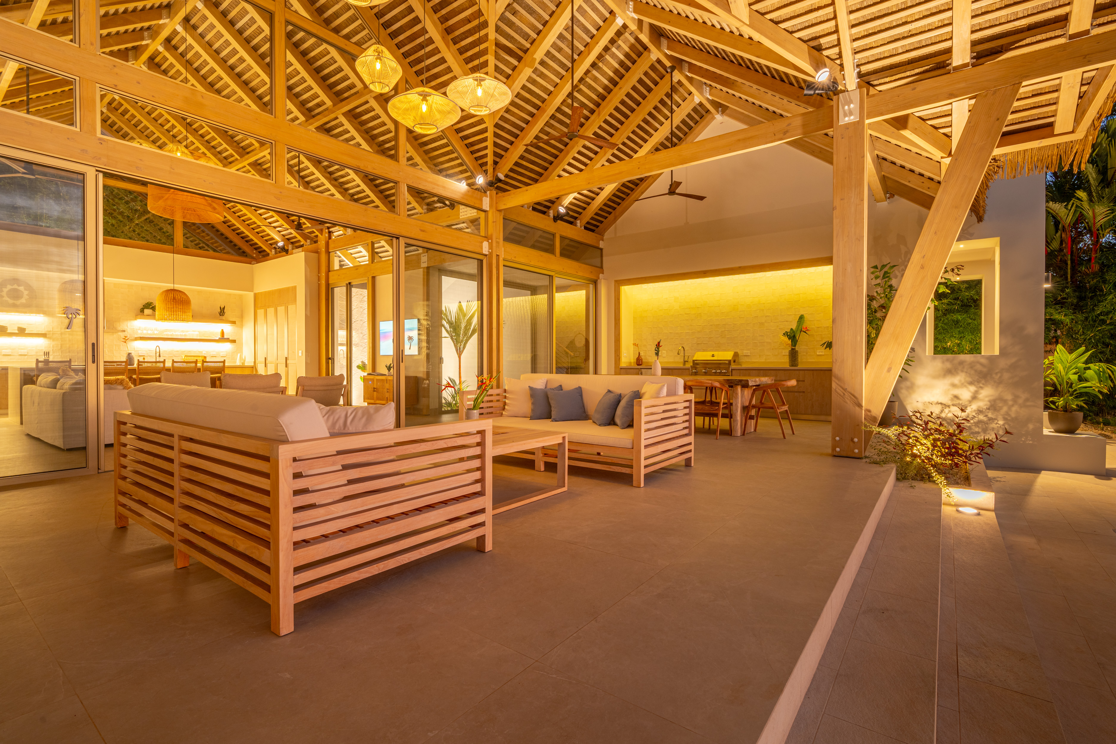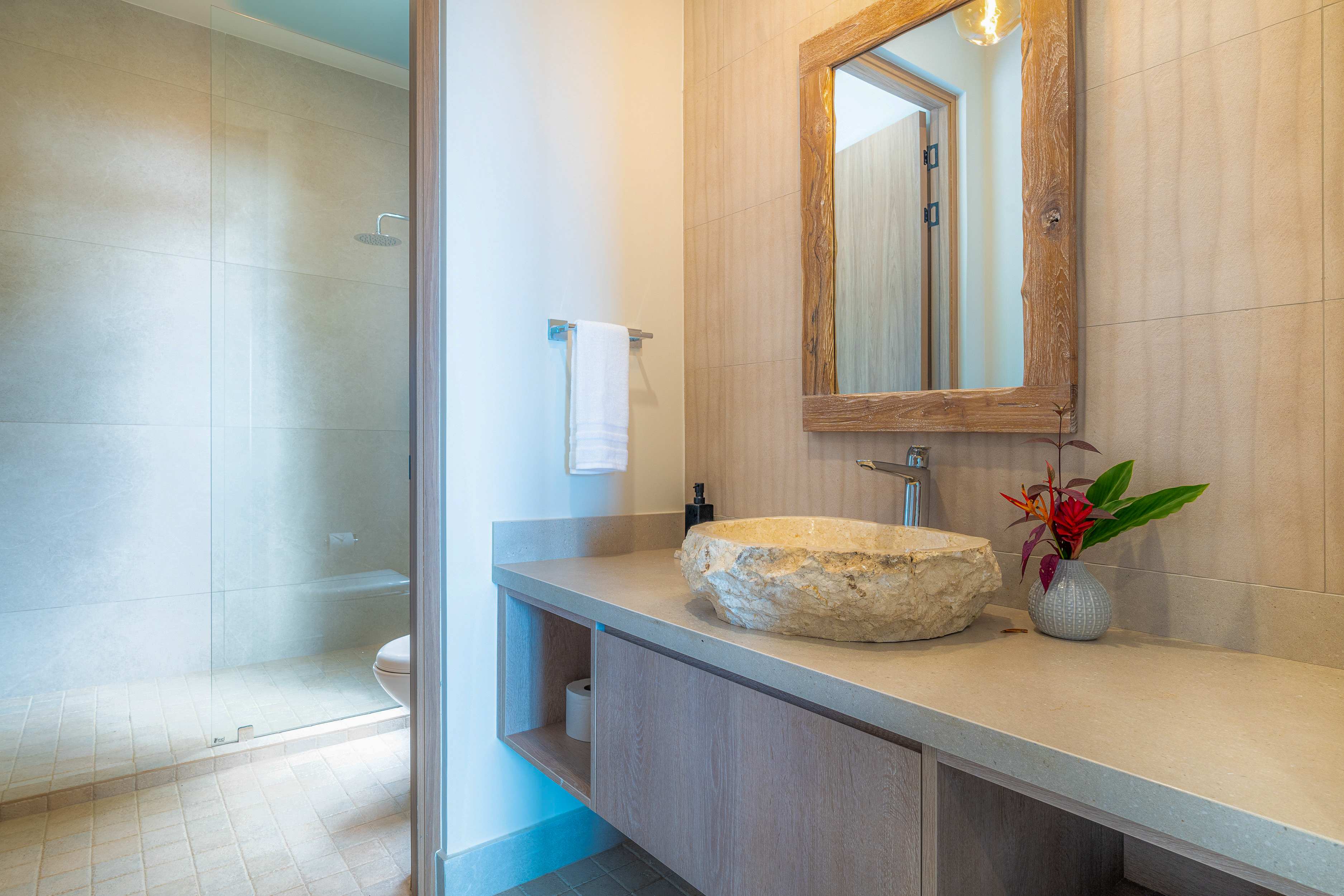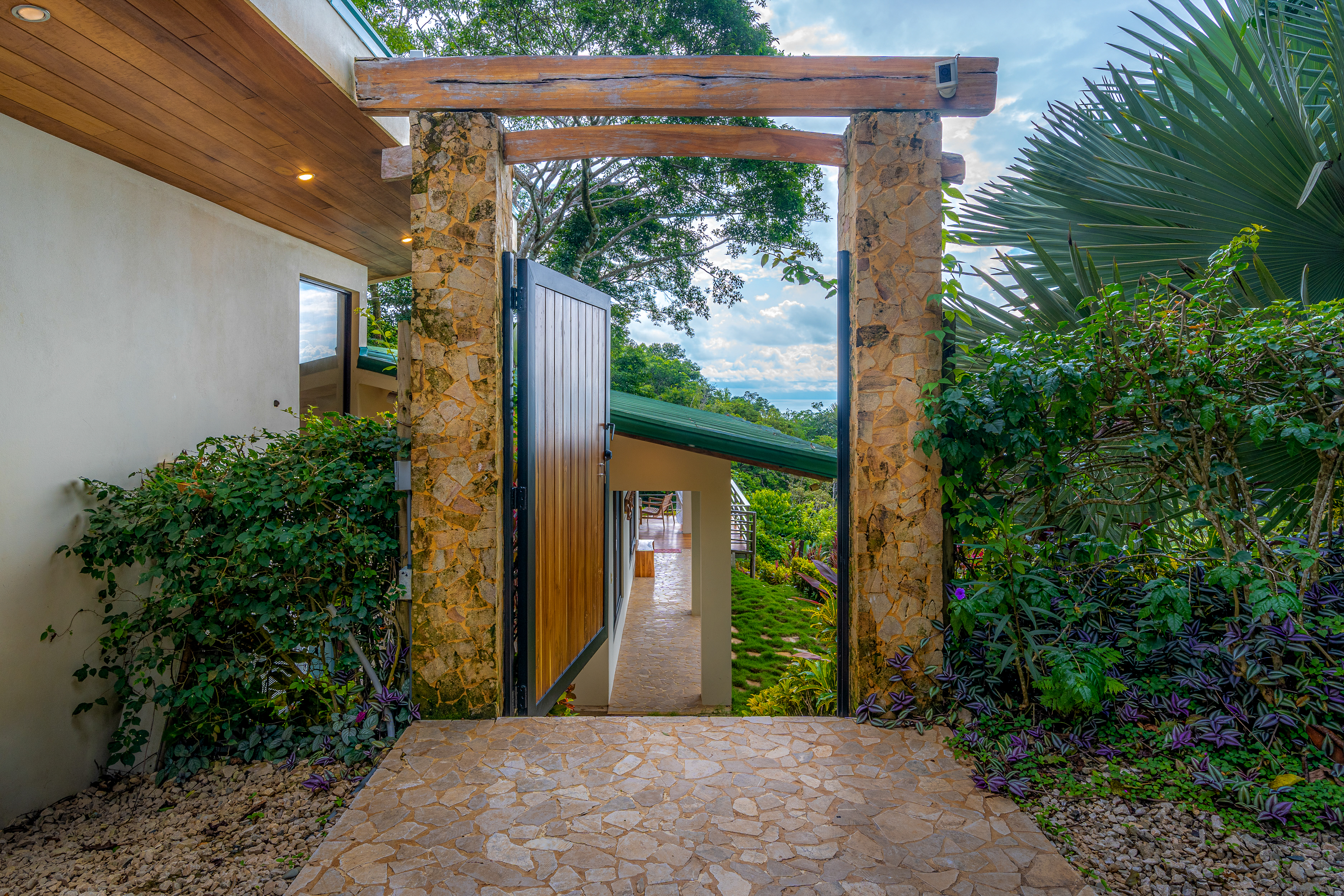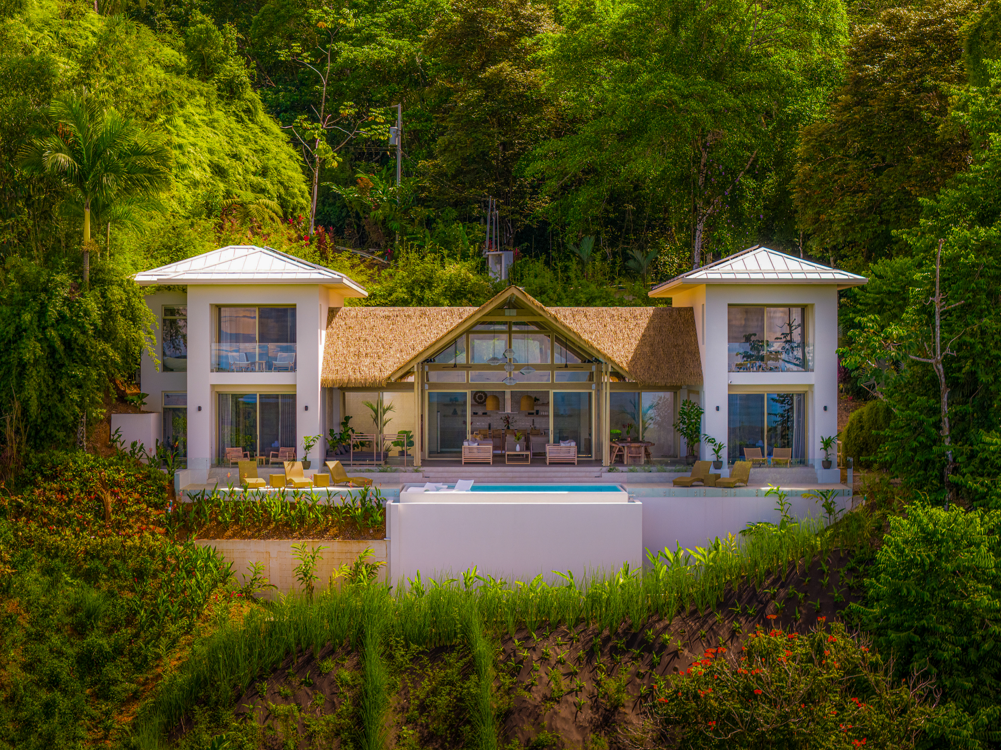 The principal residence is a four bedroom luxury home built by one of Costa Rica's most trusted national builders. The owner and architect shaped the design with a clear goal: to bring the landscape into every moment of daily life. The main living room rises to a vaulted ceiling that reaches roughly twenty seven feet, which amplifies the light, the air, and the sense of space. High ceilings, clean lines, and wide openings are all placed to draw your eye toward the Pacific or into the canopy where monkeys, toucans, and butterflies move from branch to branch. The flow between inside and outside is effortless, and the quality of the craftsmanship is evident in every finish and detail.