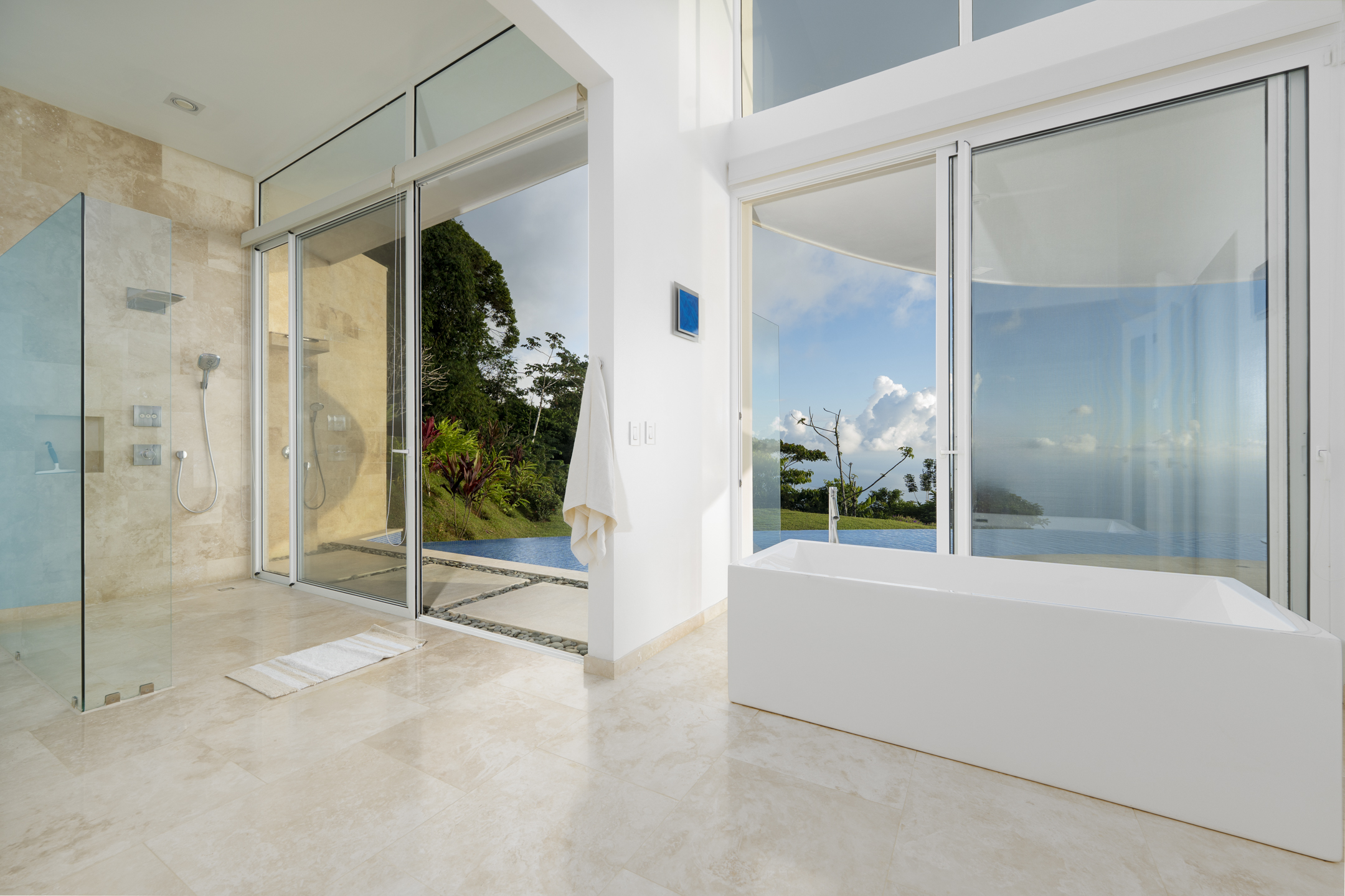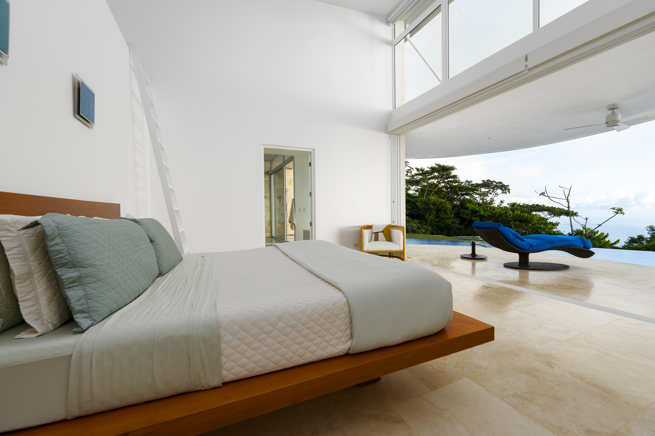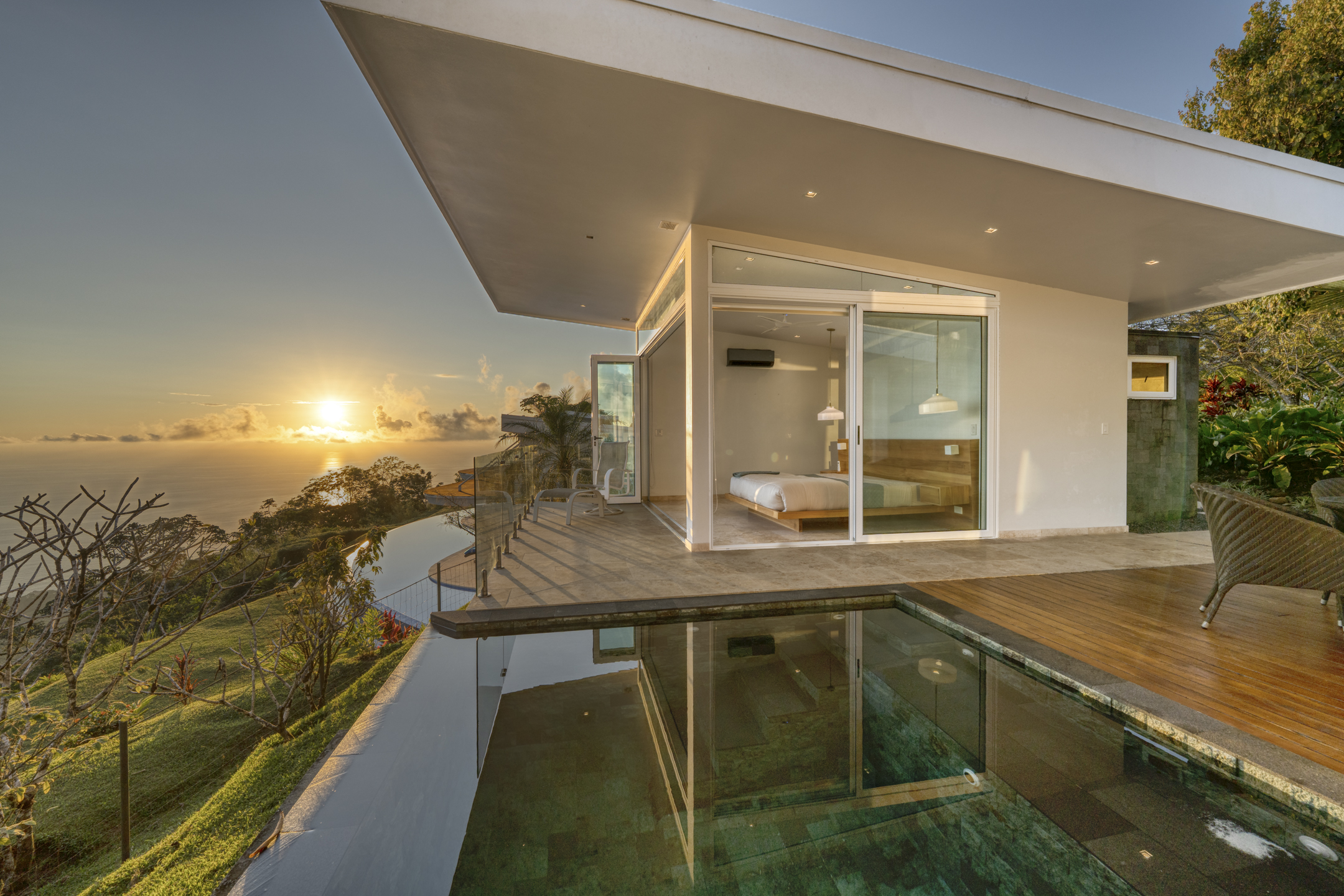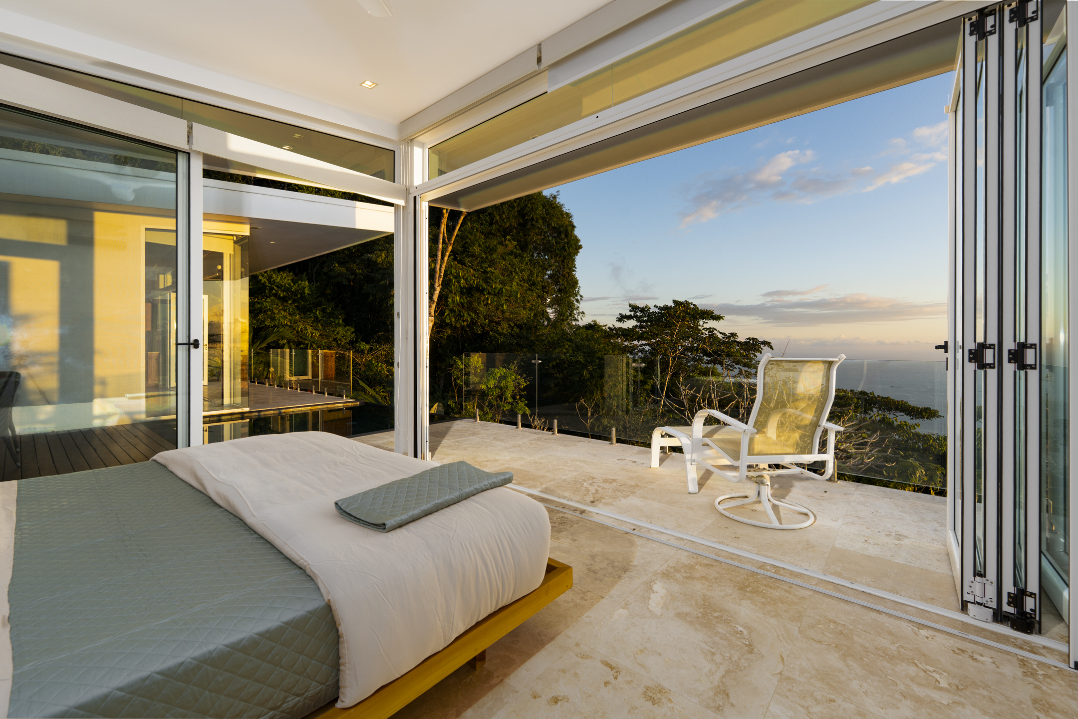 Mornings at Casa Luz are a ritual. From the primary suite, the day begins as the sun rises over the Pacific, illuminating the horizon while the rainforest below comes alive. Whether you are standing beneath the glass-wrapped shower, soaking in the freestanding tub, or enjoying the private loft of the suite, the view is always present--quietly powerful, endlessly inspiring.