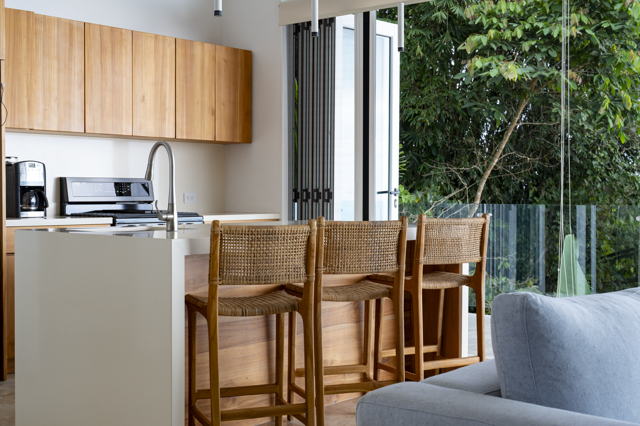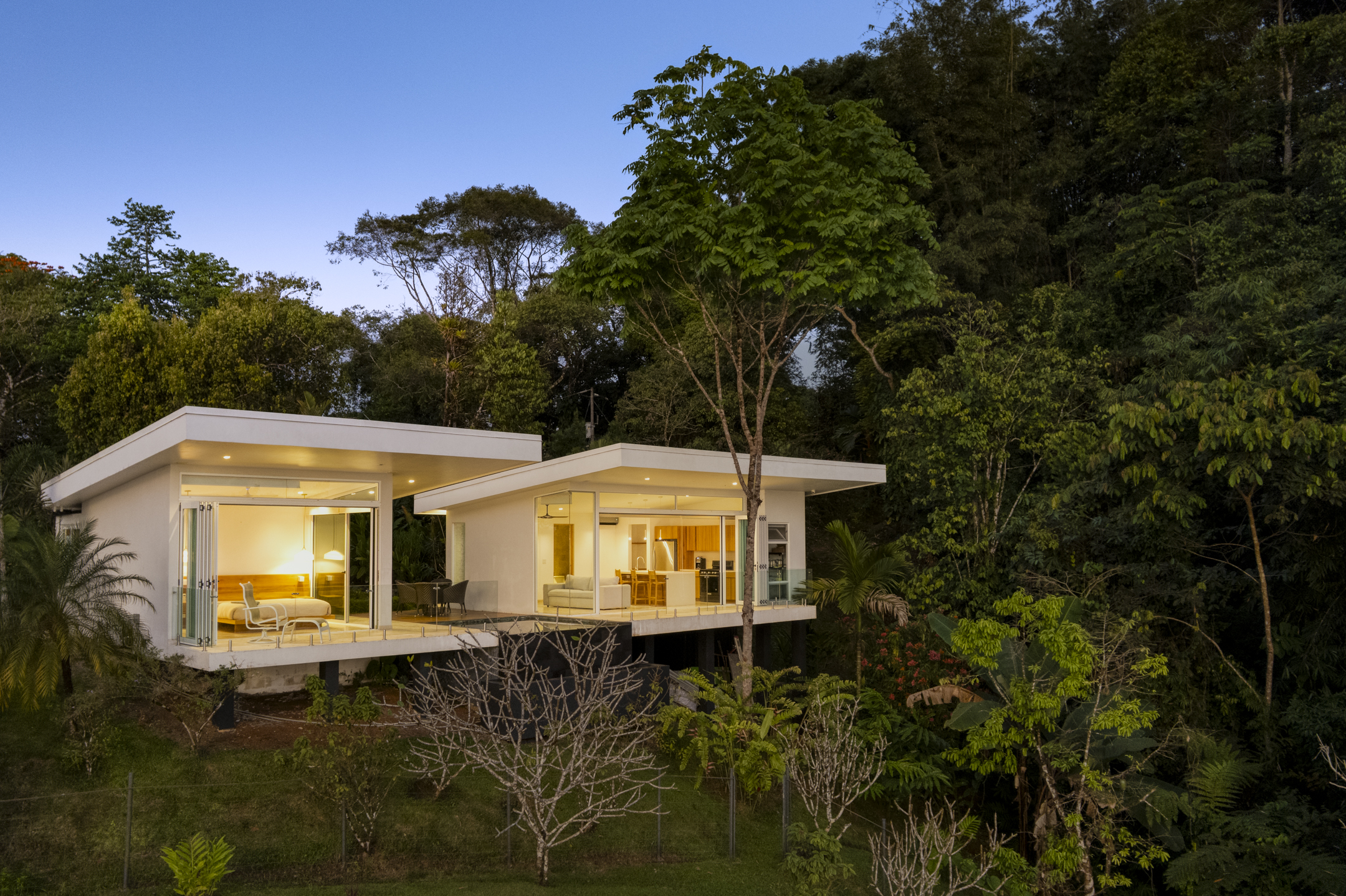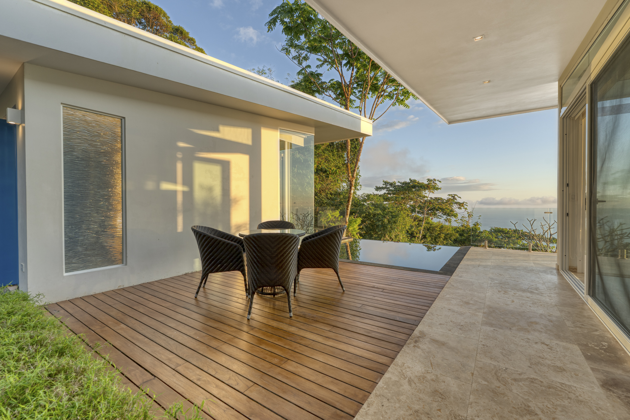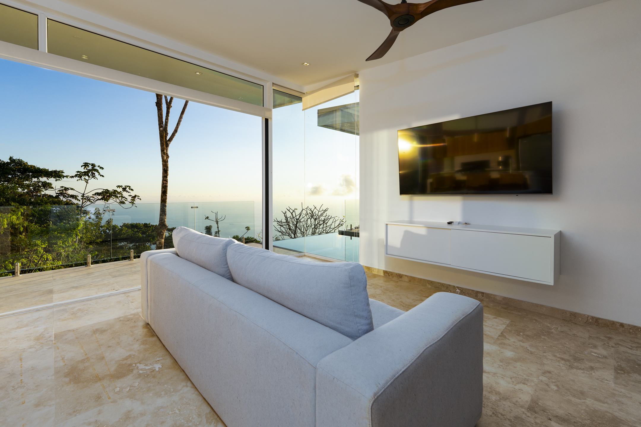 Mornings at Casa Luz are a ritual. From the primary suite, the day begins as the sun rises over the Pacific, illuminating the horizon while the rainforest below comes alive. Whether you are standing beneath the glass-wrapped shower, soaking in the freestanding tub, or enjoying the private loft of the suite, the view is always present--quietly powerful, endlessly inspiring.