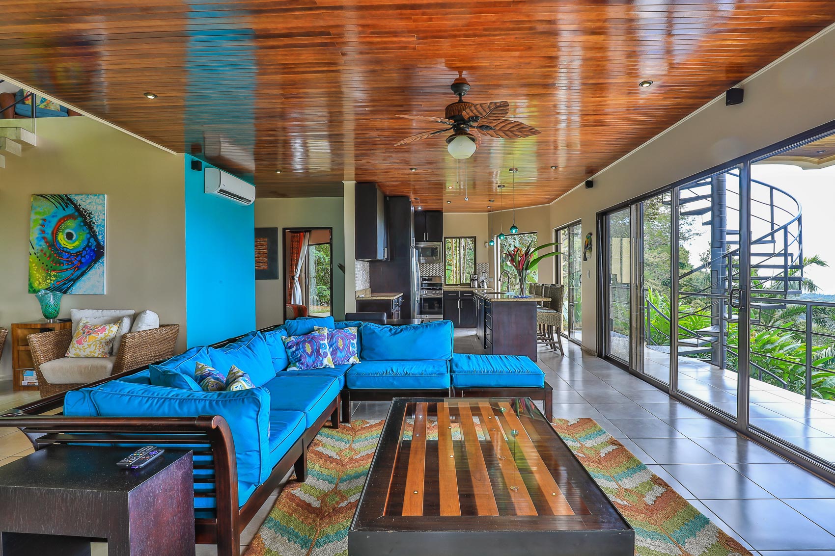 Behold the views: Enjoy incredible panoramas from every window in every room of the Pacific coast south to Isla del Cano upwards to Manuel Antonio from this 2-story villa situated on one of the highest peaks of Paradise Breezes.
