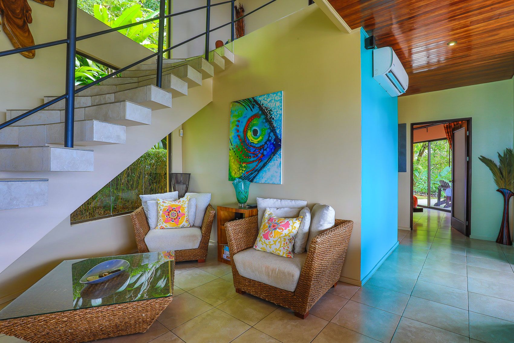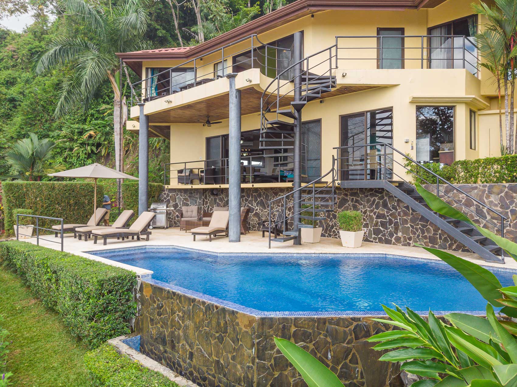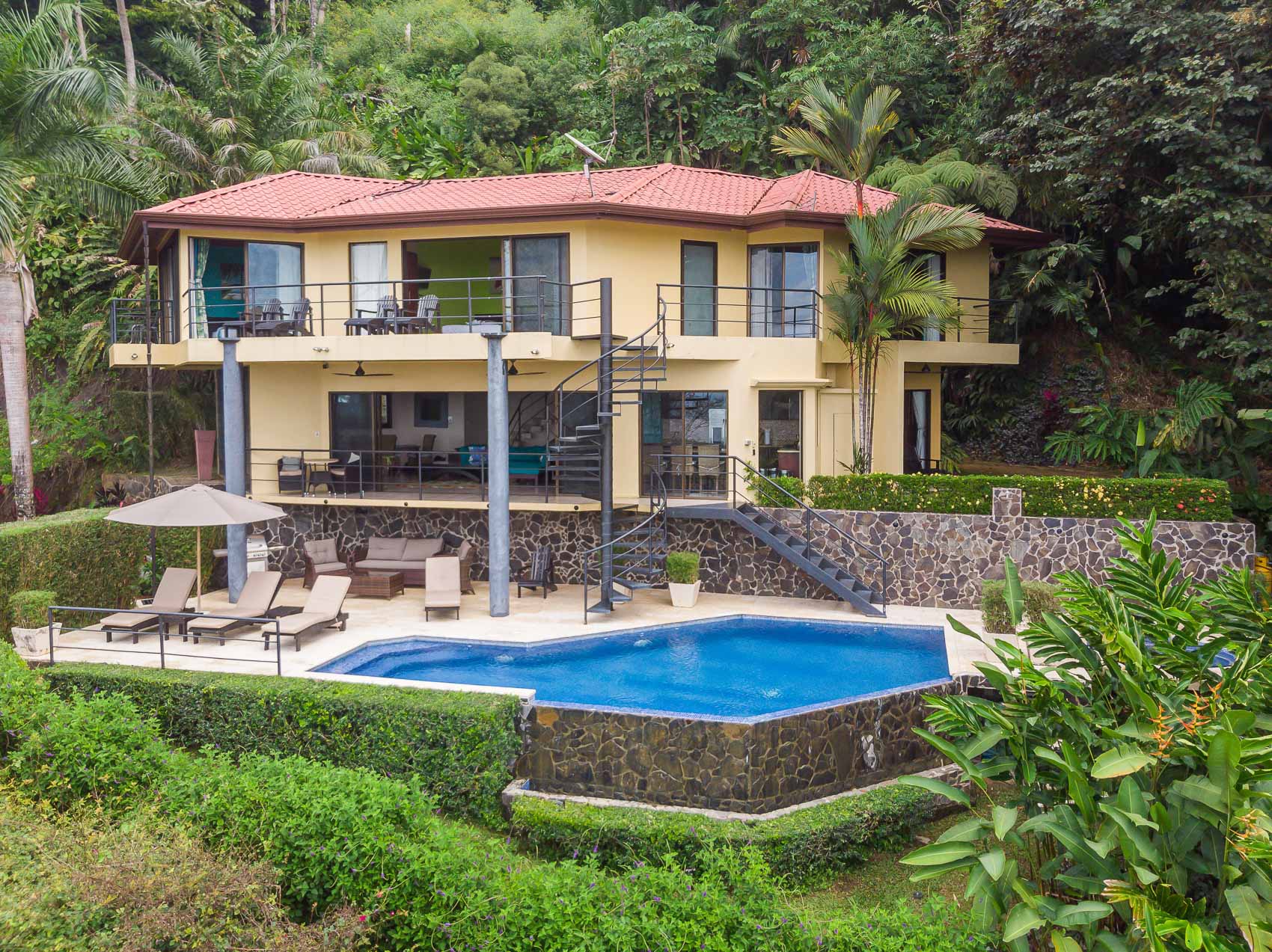 This is largest of the Paradise Breezes Villas and will literally take your breath away with unforgettable panoramic views. Entry into Paradise Breezes is through a secure gated entrance and the homes resides a short easy 2 minute drive up a well maintained road through natural Costa Rican fauna. Nestled away amongst a backdrop of serene jungle, the home of Villa Buena Vista boasts majestic wide-open views over the Pacific Ocean. Listen to the waves of Dominical, Guapil and Hatillo crashing in the background while gazing upon the sunsets right out front.
