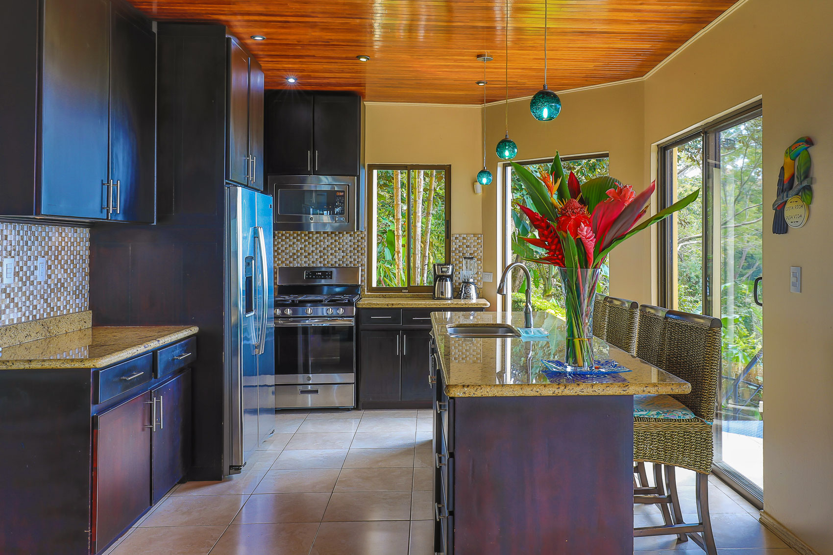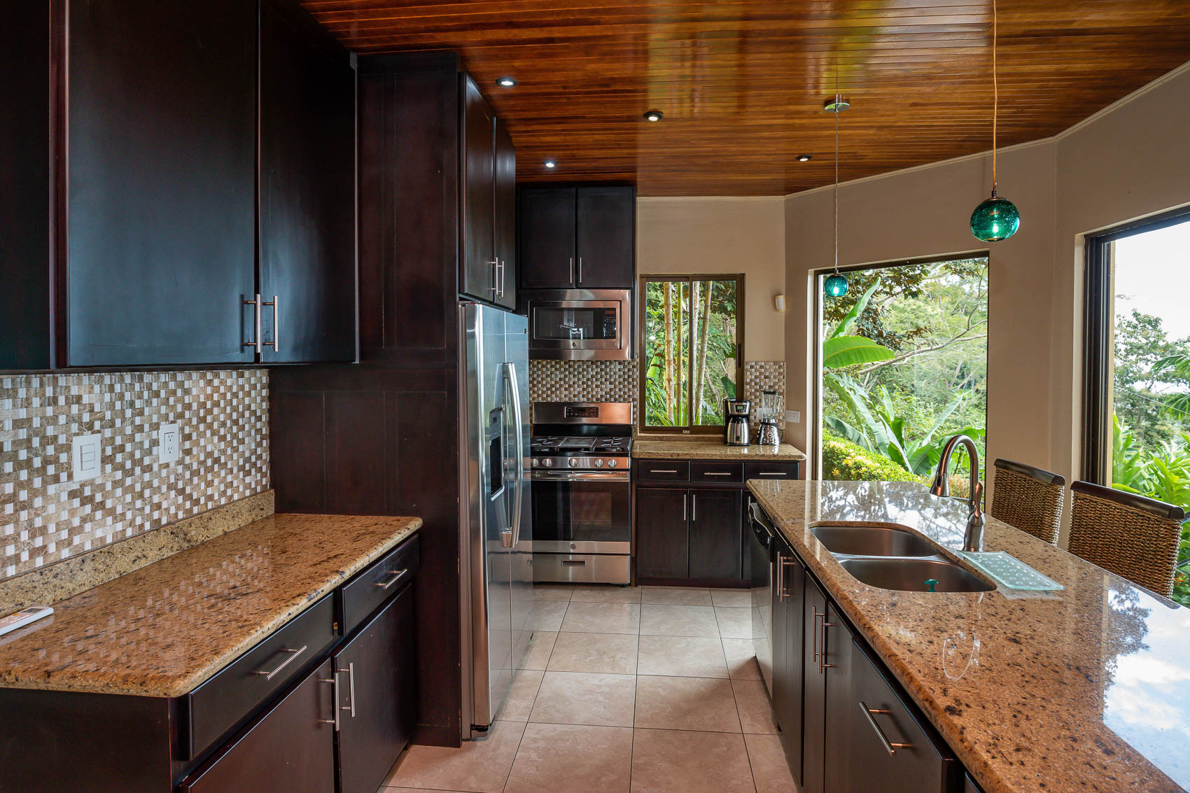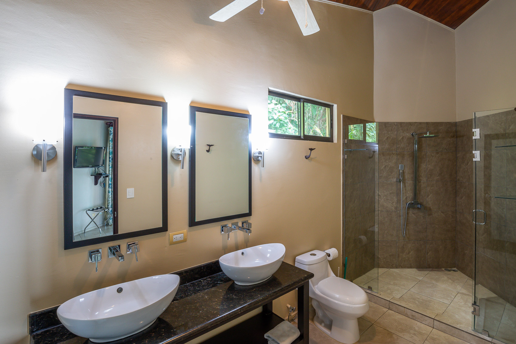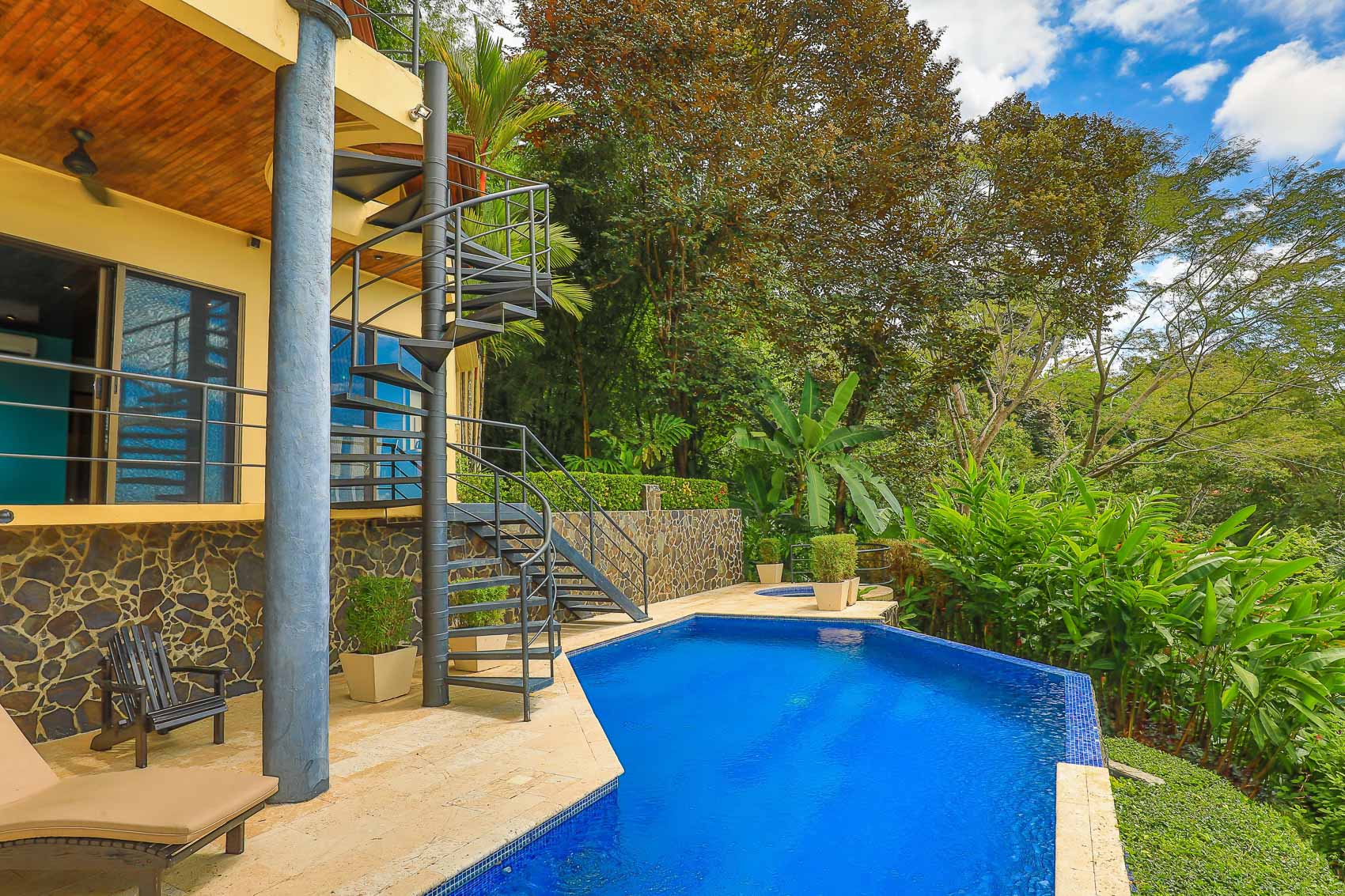 This is largest of the Paradise Breezes Villas and will literally take your breath away with unforgettable panoramic views. Entry into Paradise Breezes is through a secure gated entrance and the homes resides a short easy 2 minute drive up a well maintained road through natural Costa Rican fauna. Nestled away amongst a backdrop of serene jungle, the home of Villa Buena Vista boasts majestic wide-open views over the Pacific Ocean. Listen to the waves of Dominical, Guapil and Hatillo crashing in the background while gazing upon the sunsets right out front.