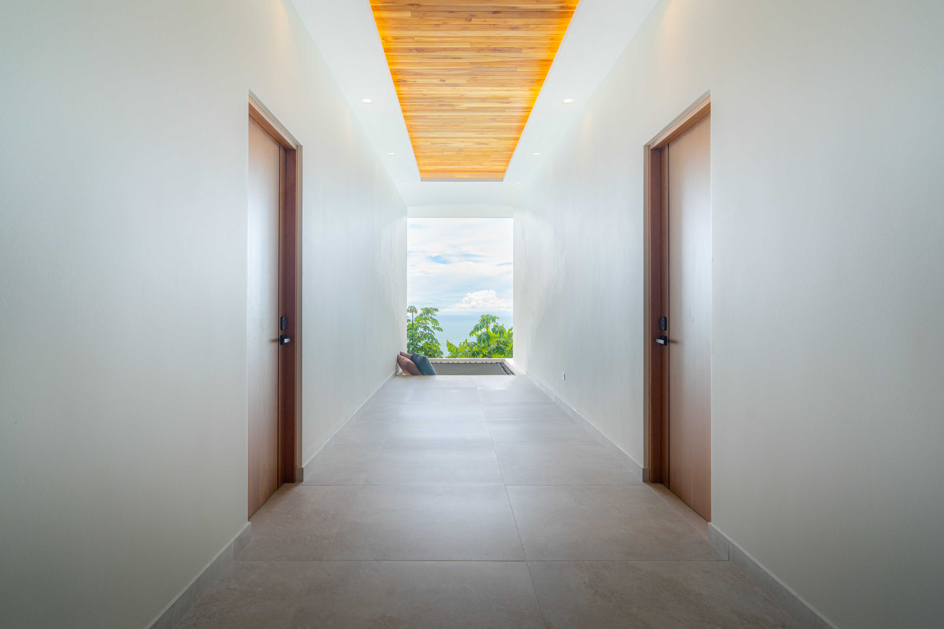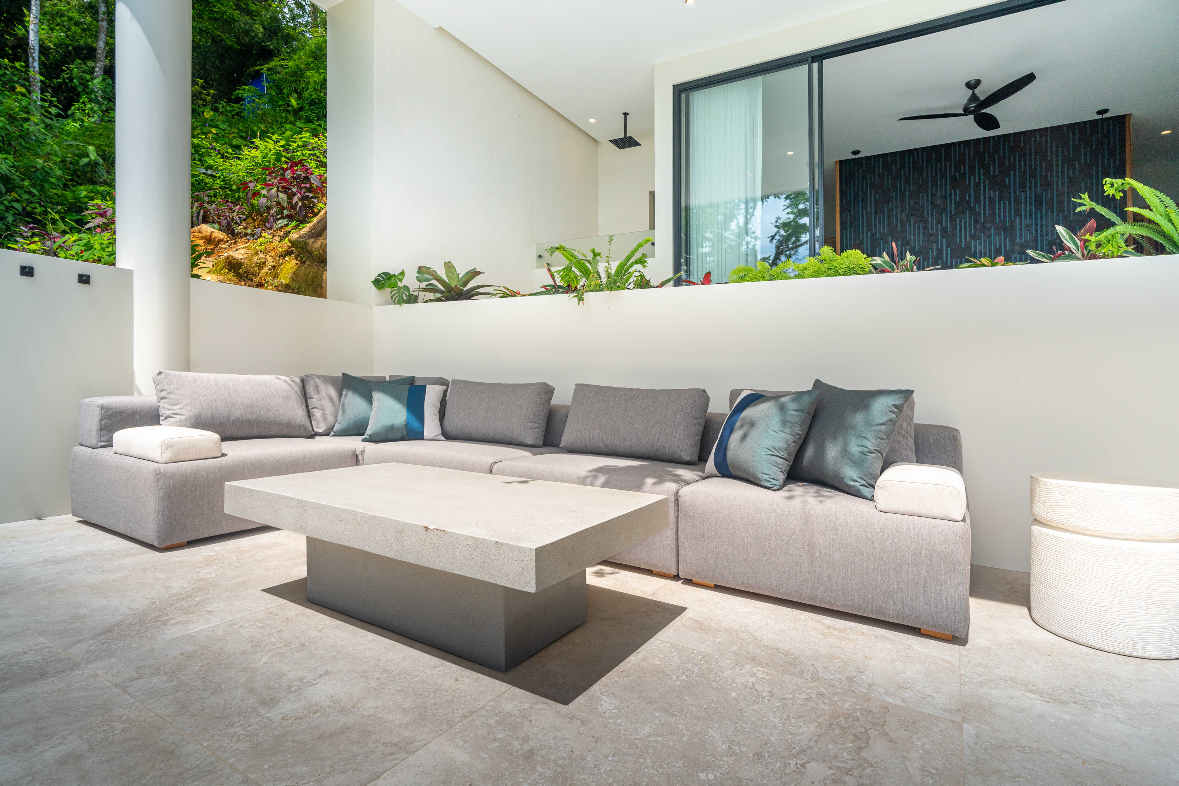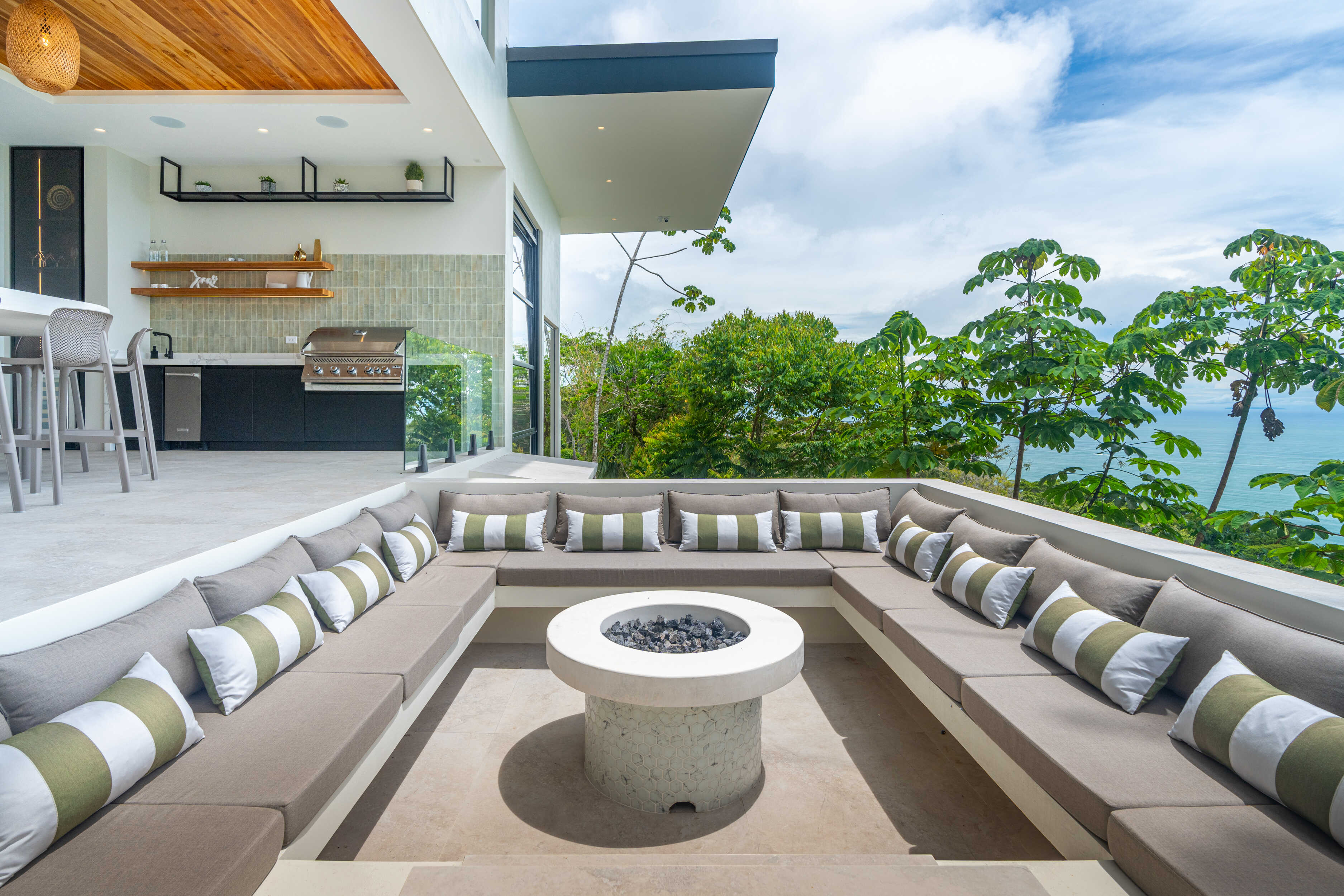 No expense was spared. Every piece of furniture was custom made in Costa Rica and Bali, with materials and fabrics chosen to endure the climate of the Southern Pacific. The villa is crowned with a standing seam insulated steel roof, built strong against rain and sun alike. Lush gardens, both inside and out, bring nature into every corner of the home, including a soaring second-level atrium.