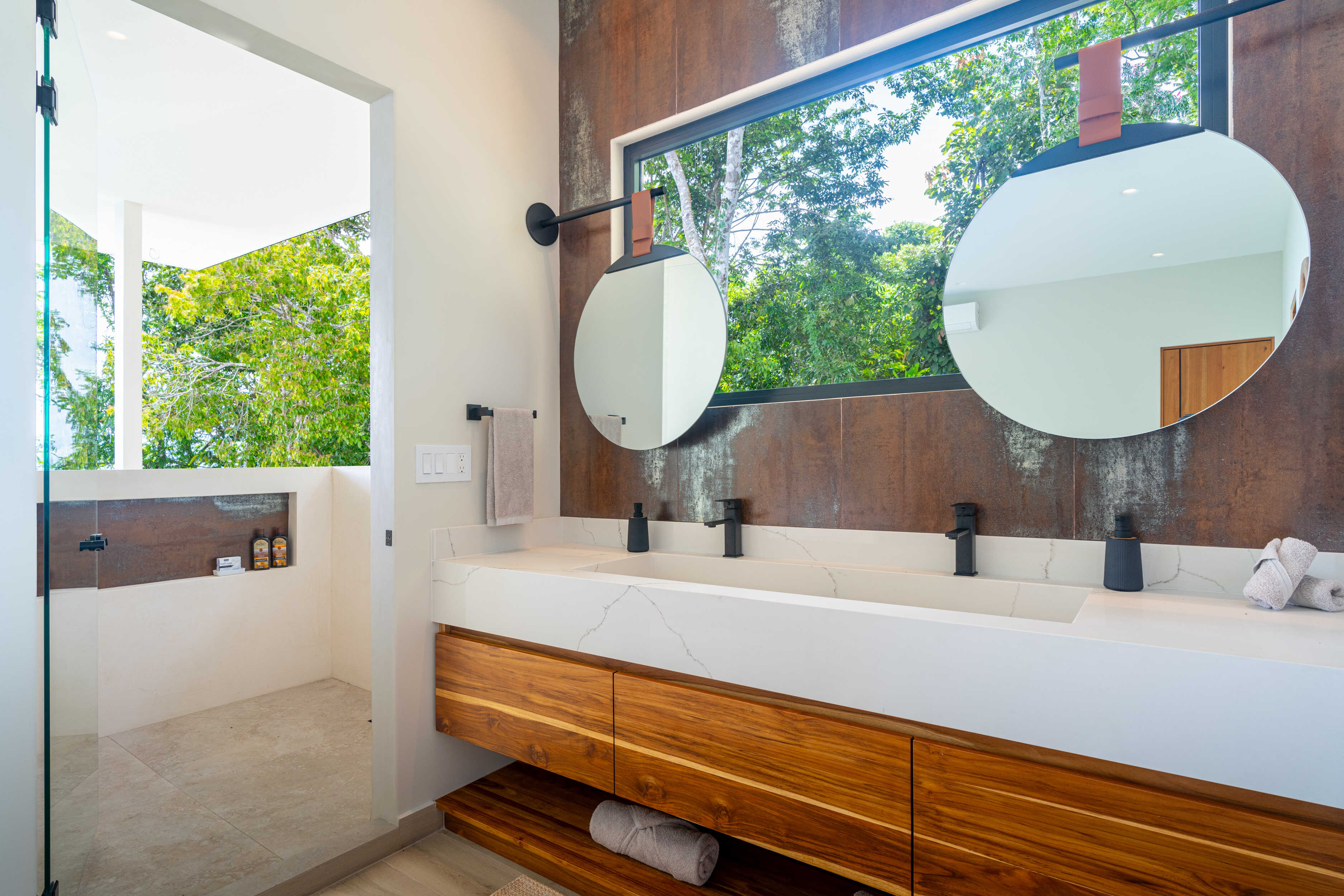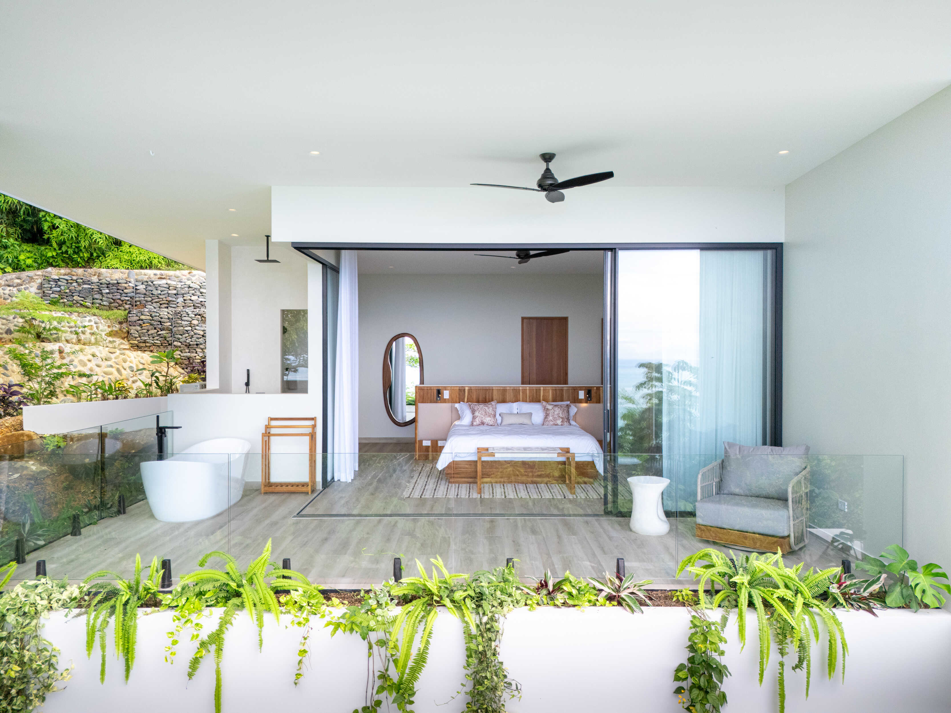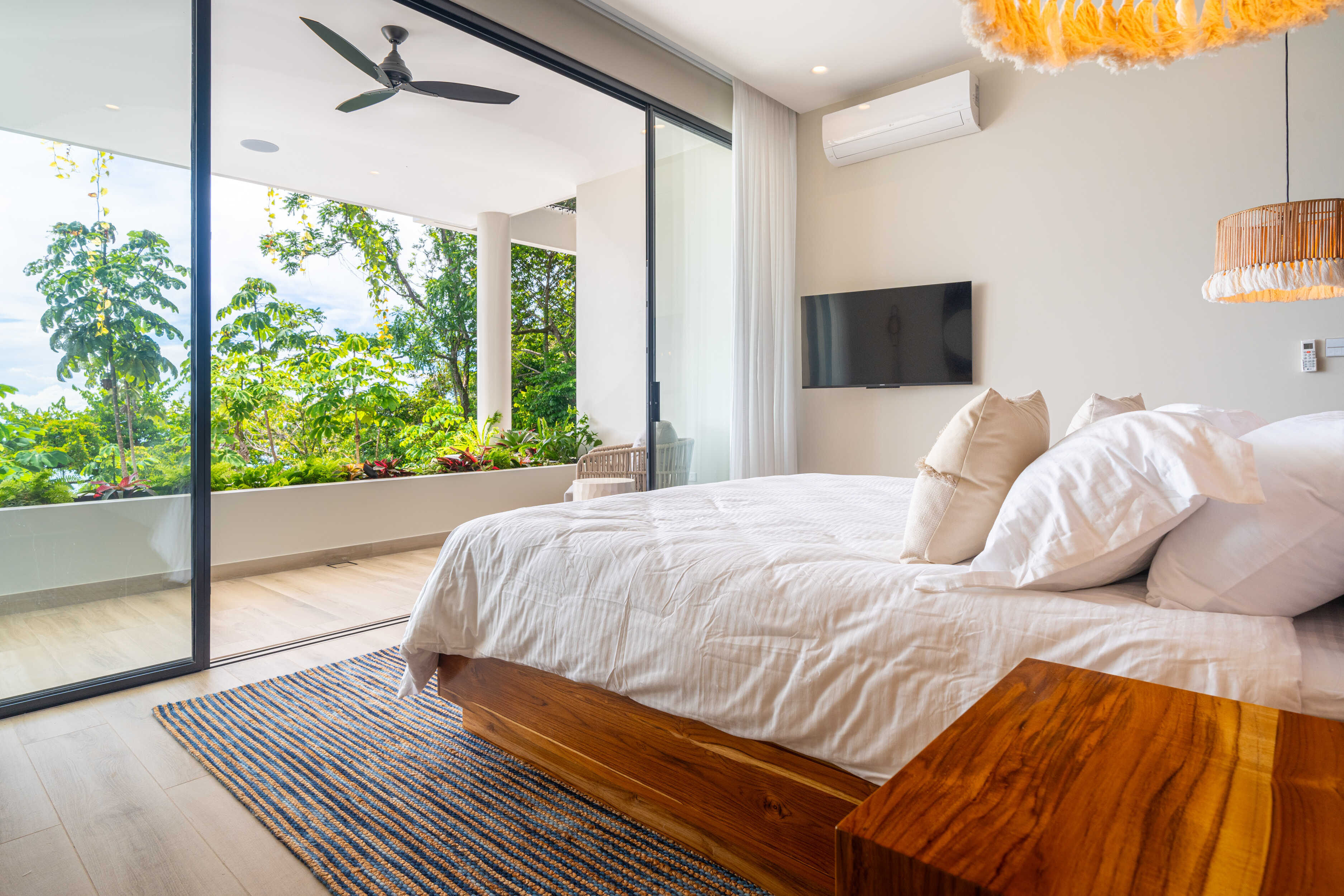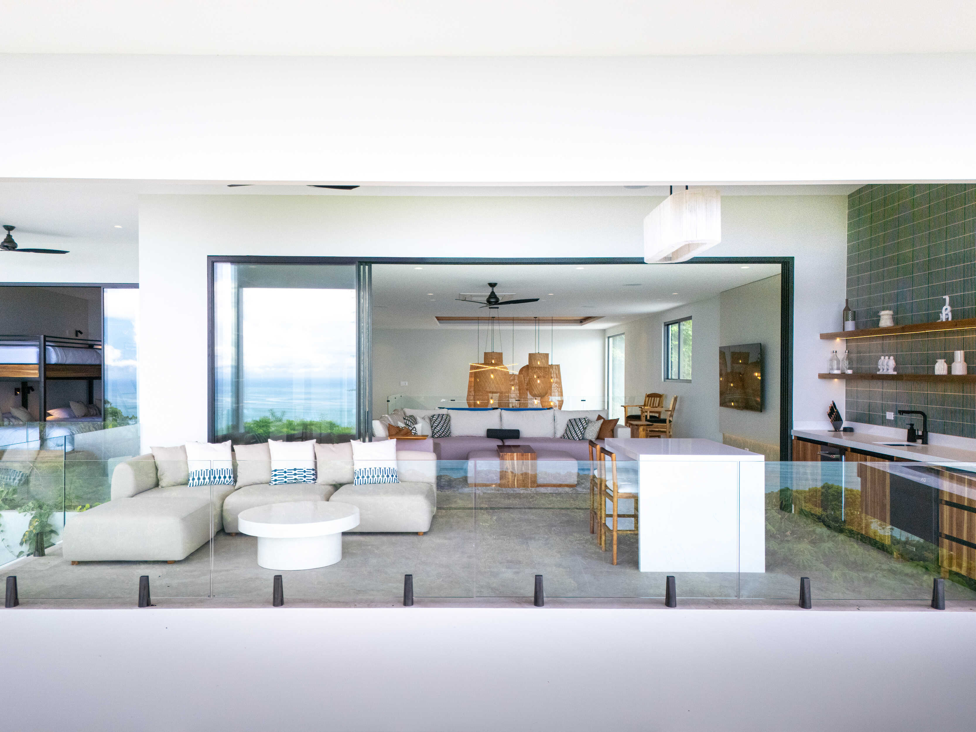 No expense was spared. Every piece of furniture was custom made in Costa Rica and Bali, with materials and fabrics chosen to endure the climate of the Southern Pacific. The villa is crowned with a standing seam insulated steel roof, built strong against rain and sun alike. Lush gardens, both inside and out, bring nature into every corner of the home, including a soaring second-level atrium.
