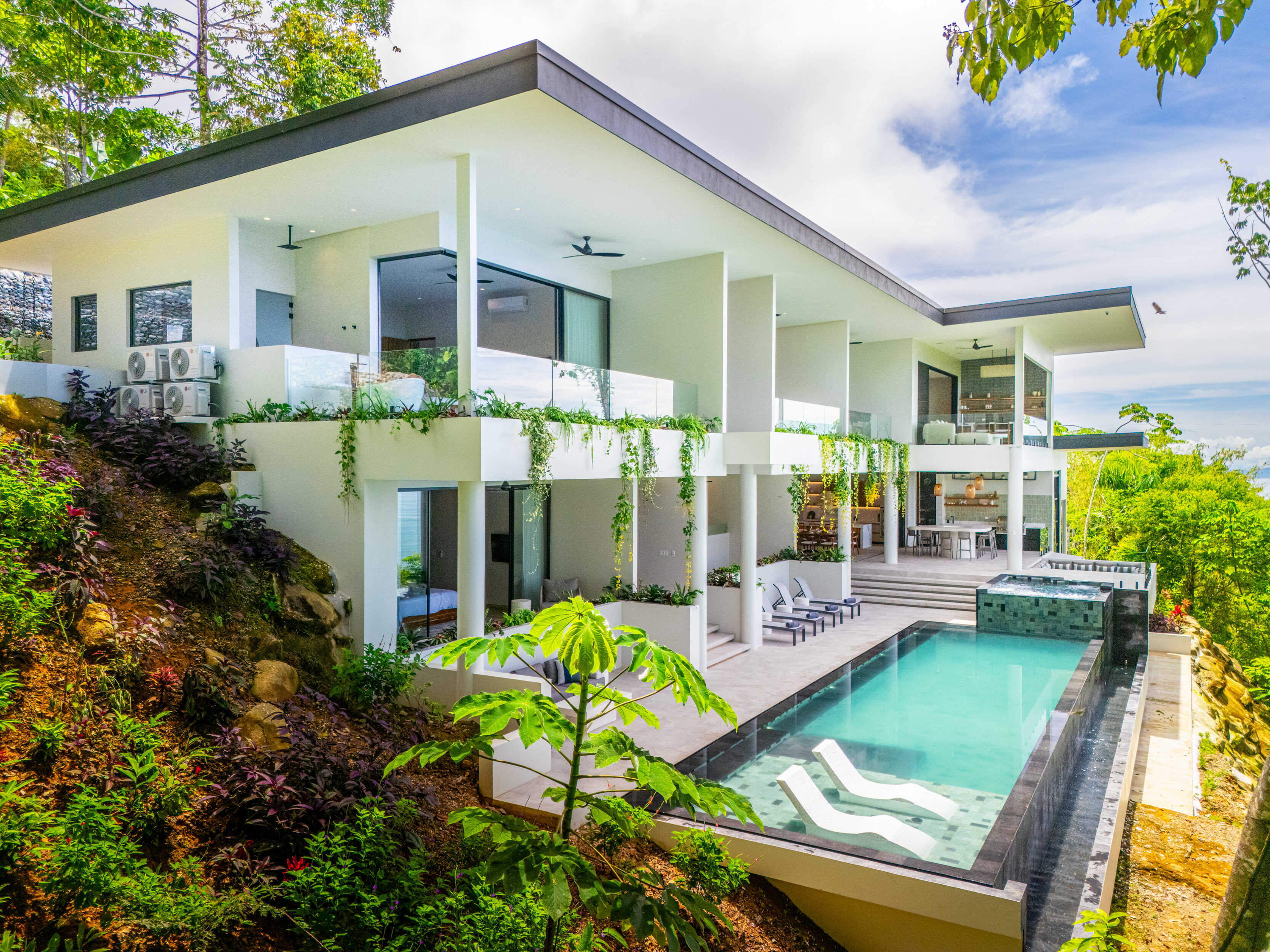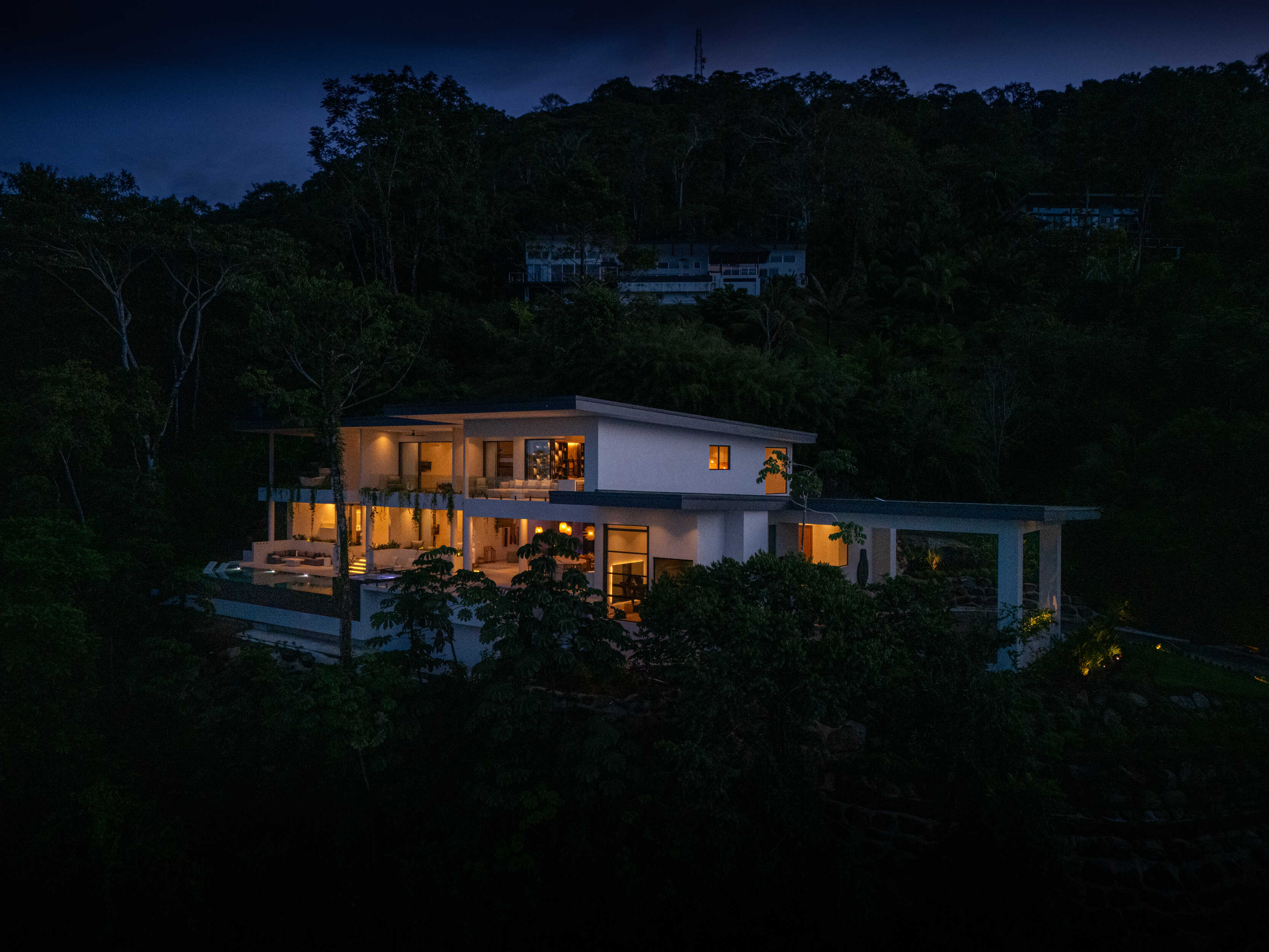 Set on 5,500 m2 (1.36 acres), with a villa of 13,000 sq ft Acqua Blu is more than a home. It is a stage for nine months of sunsets each year, a sanctuary alive with birds, monkeys, and the rhythms of the jungle. The ideal elevation of 1300 feet ensures year round breezes and sets the stage for the most magical vistas.