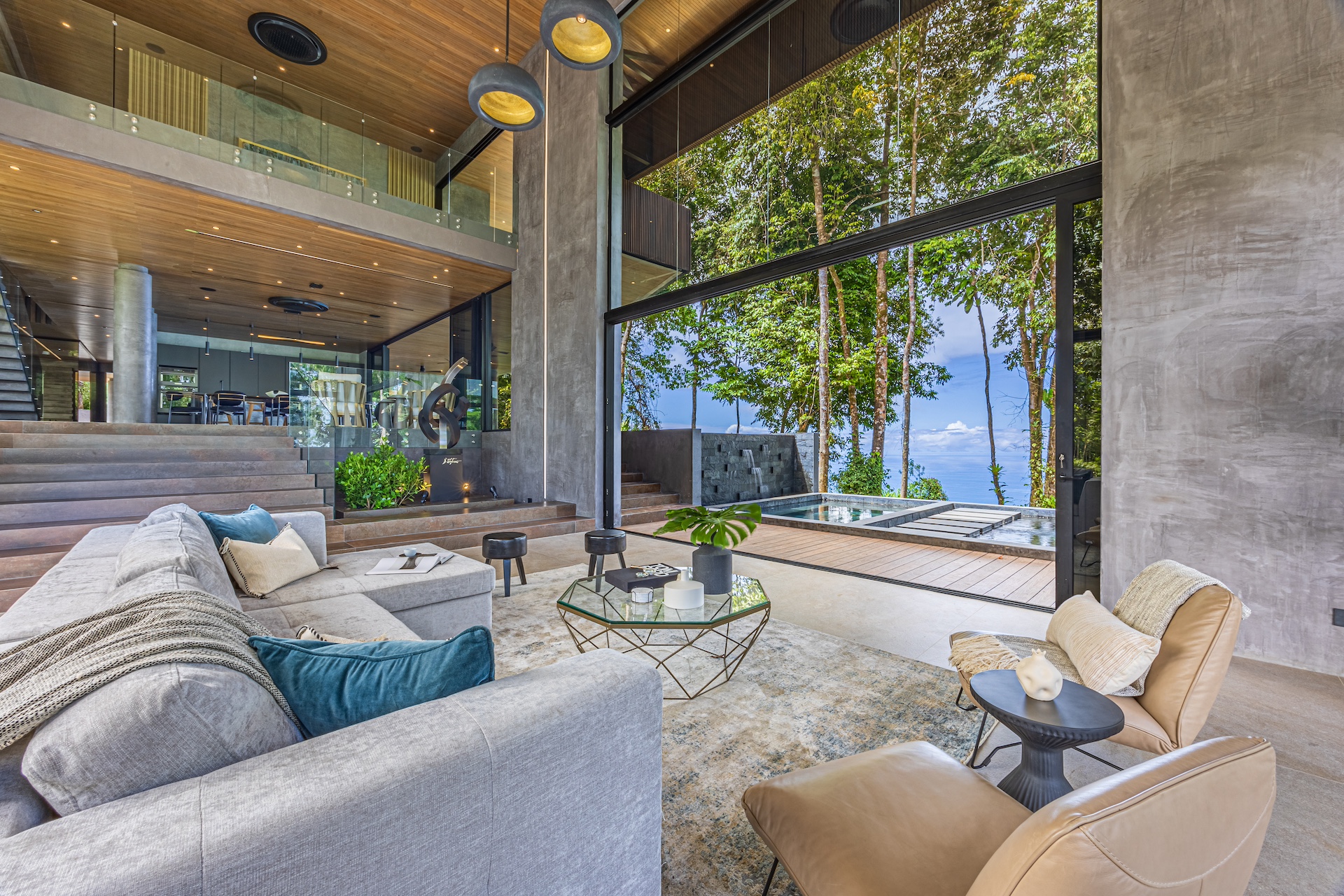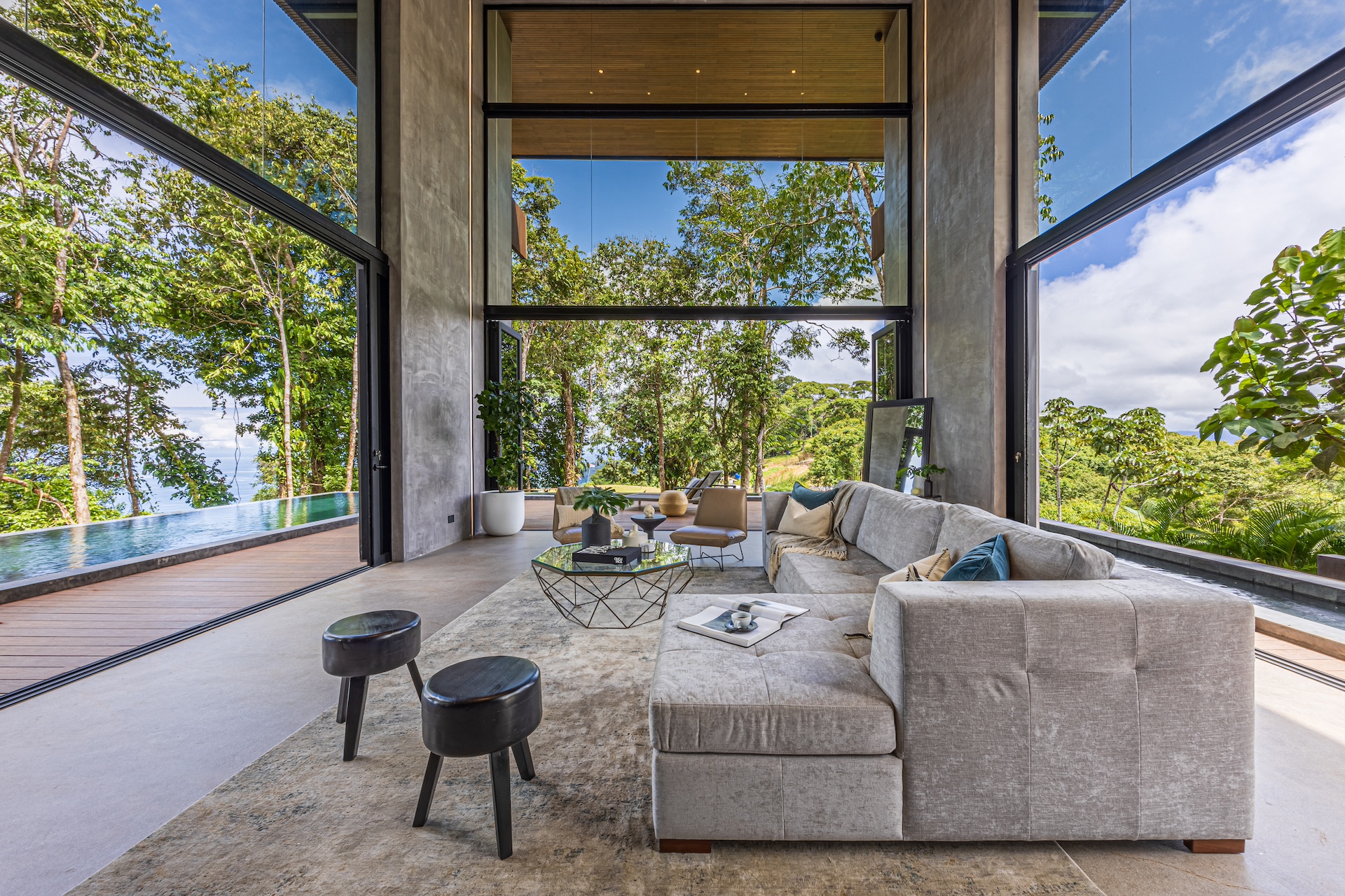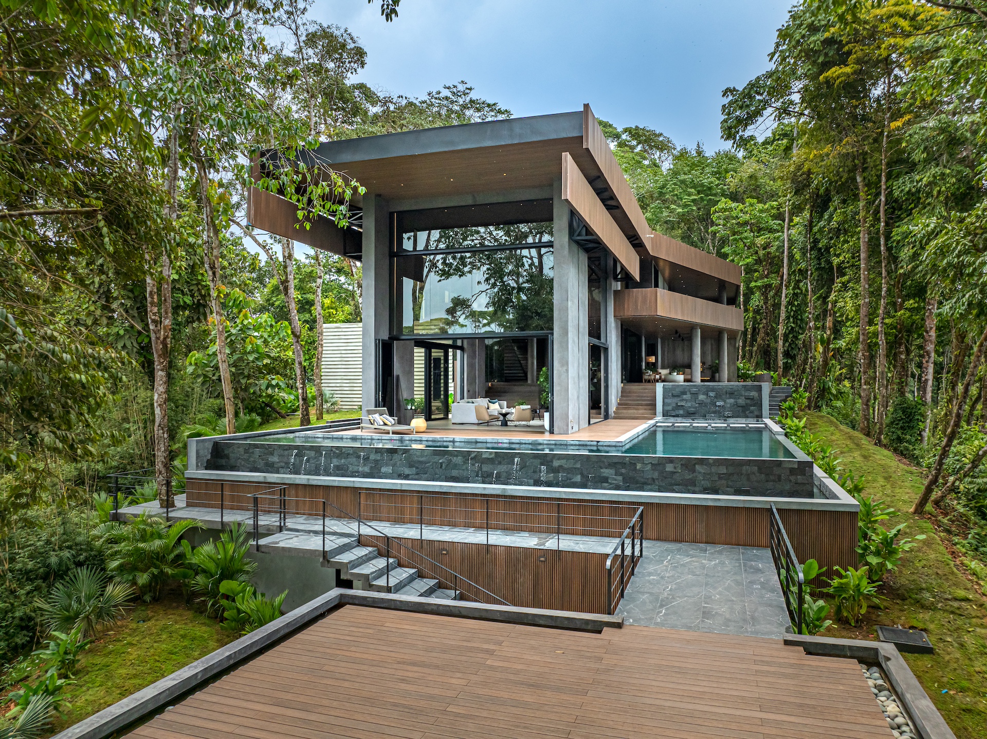 The villa Corazon de la Selva is as majestic as the jungle where it is set. On approach, this new, luxury home is beautifully framed by the wooded environment - distinct and aptly placed. Perched on a ridge overlooking the Pacific, Corazon de la Selva commands soul-restoring ocean views. Its floor-to-ceiling windows invite the wilderness in and charge the interiors with natural energy while beckoning refreshing breezes throughout. Designed in the NeoTropical modern style by architect Eric Bogantes of ALIANZ, it uses concrete and glass in perfect proportion. The rooms are expansive yet never overwhelm, instead they embrace, comfort and inspire.