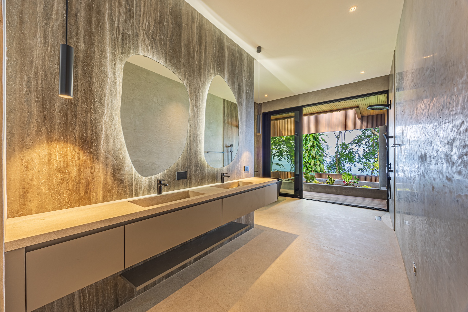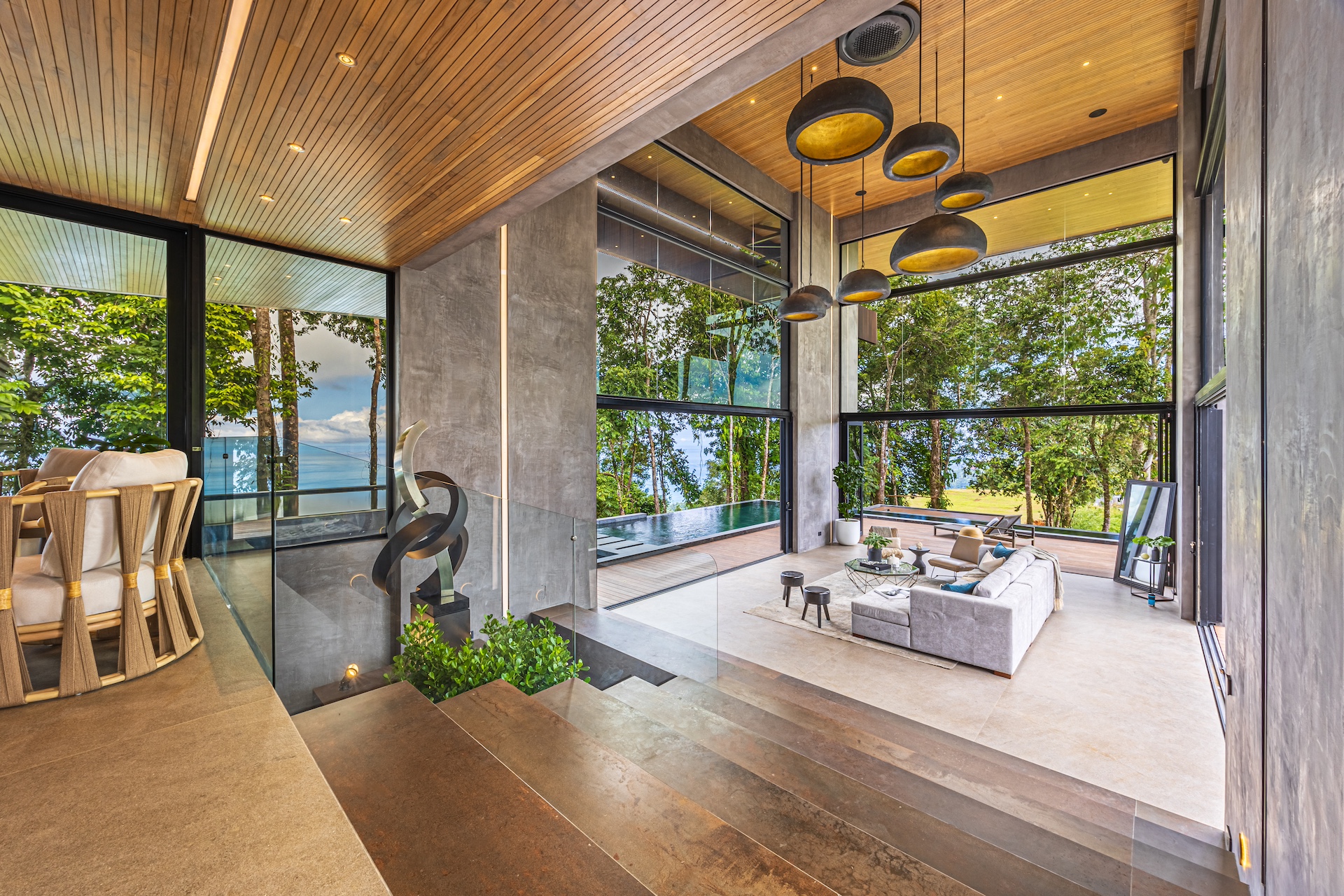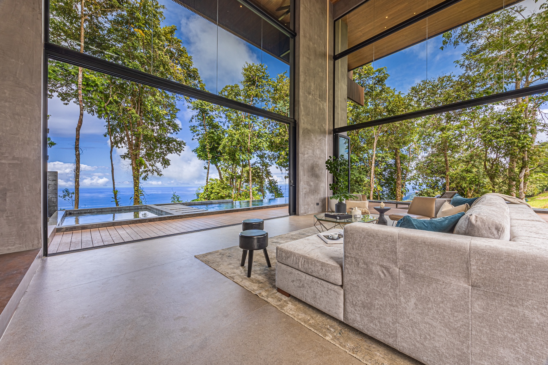 The villa Corazon de la Selva is as majestic as the jungle where it is set. On approach, this new, luxury home is beautifully framed by the wooded environment - distinct and aptly placed. Perched on a ridge overlooking the Pacific, Corazon de la Selva commands soul-restoring ocean views. Its floor-to-ceiling windows invite the wilderness in and charge the interiors with natural energy while beckoning refreshing breezes throughout. Designed in the NeoTropical modern style by architect Eric Bogantes of ALIANZ, it uses concrete and glass in perfect proportion. The rooms are expansive yet never overwhelm, instead they embrace, comfort and inspire.