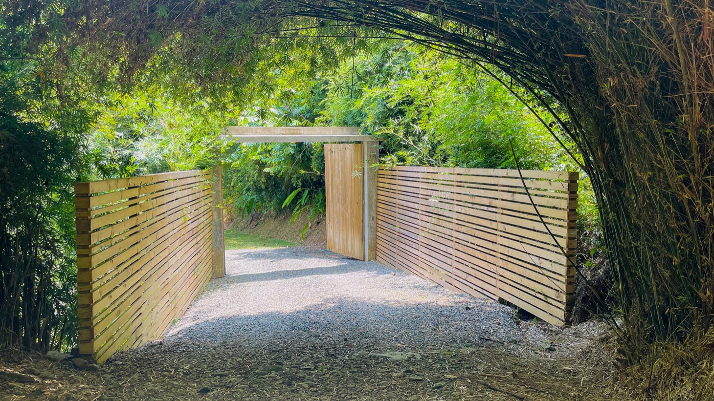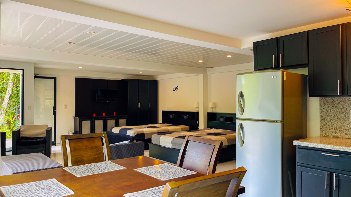 Guest Studio: Located at the gated entrance to the main part of the land with a covered parking structure it has a full kitchen and equipped with all furnishings and A/C. This studio structure has a spacious deck in a serene forested setting.