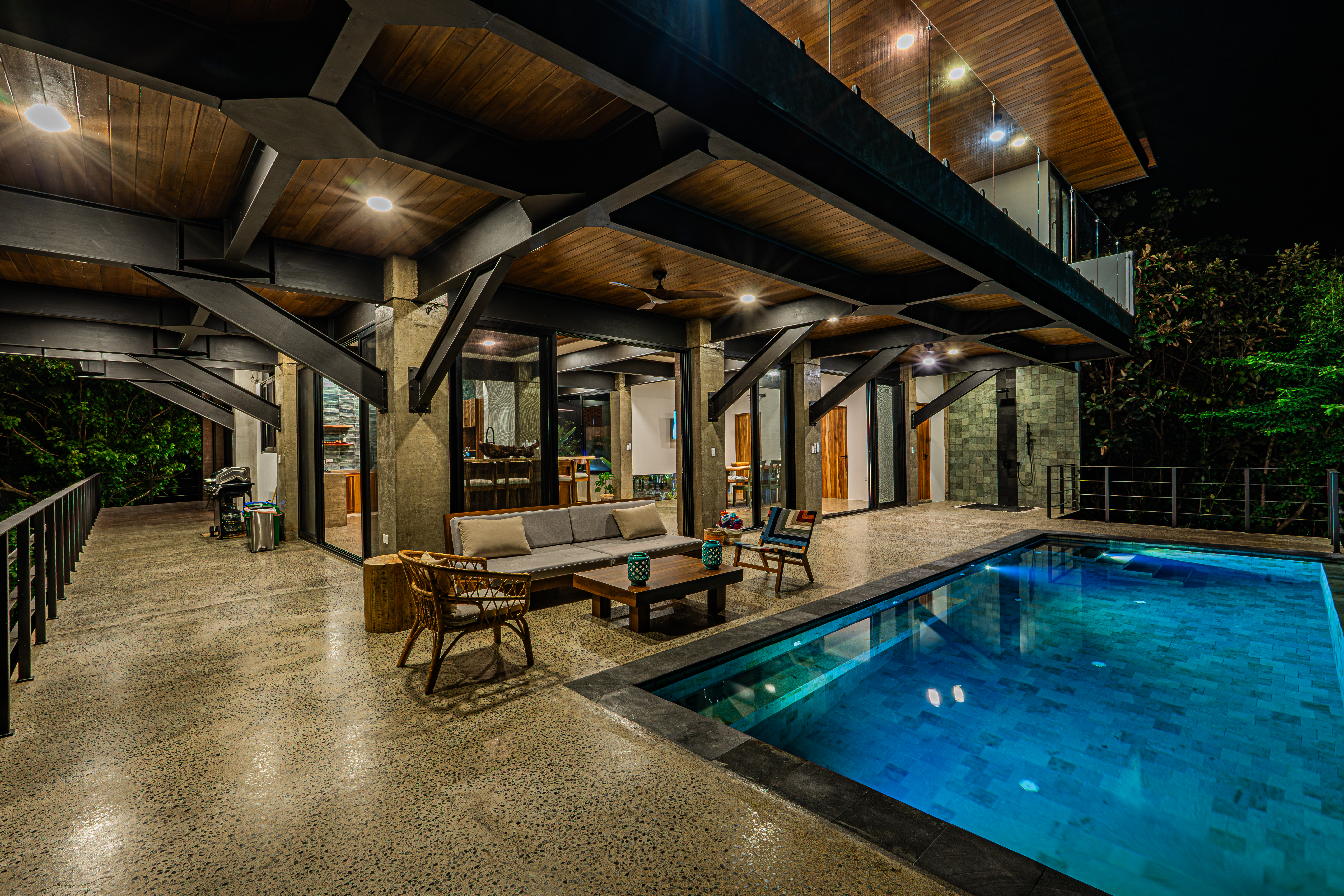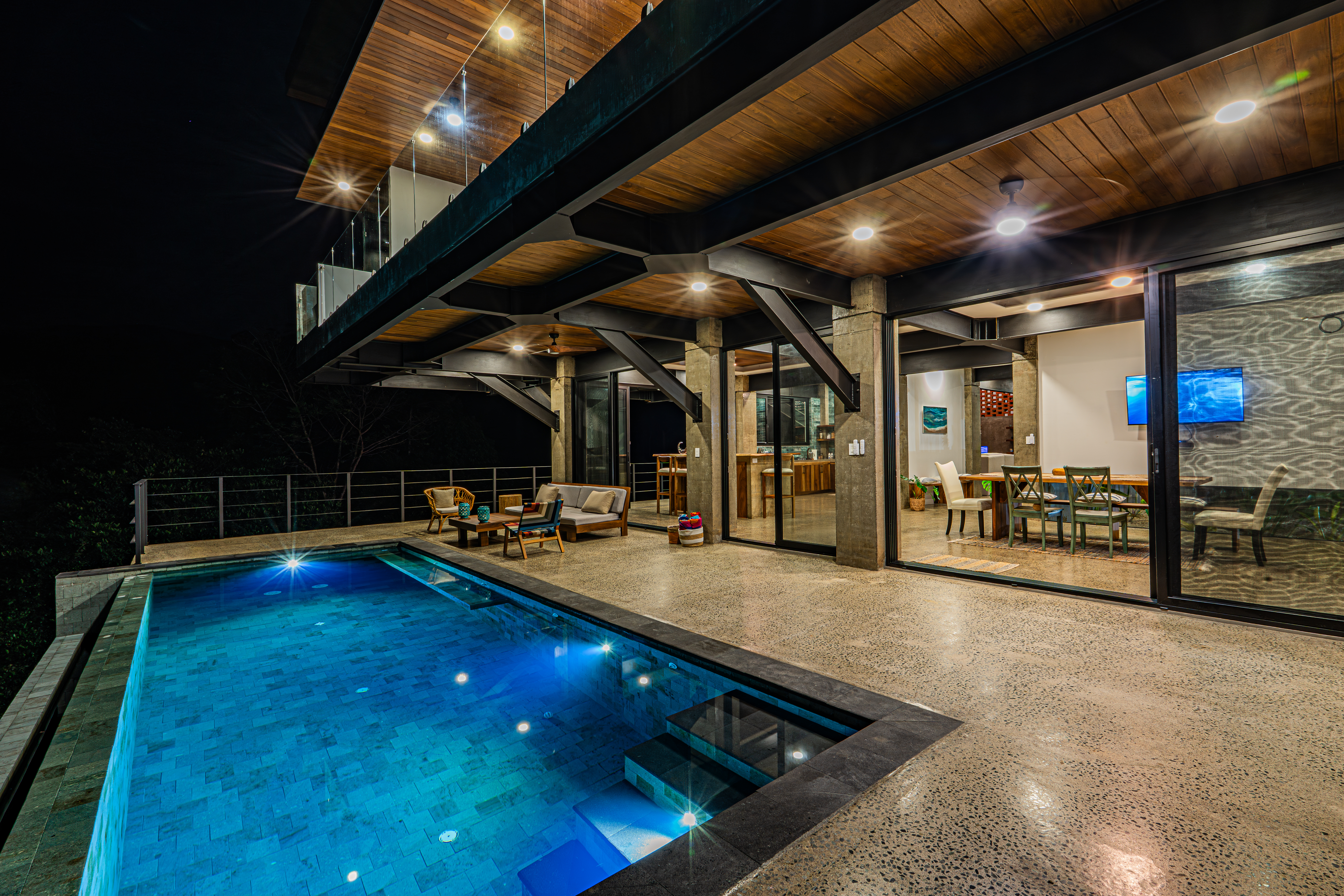 The property is not just a house; it's a lifestyle. Step out onto the terrace, and you'll be greeted by an infinity pool that seemingly extends into the endless Pacific Ocean. This serene oasis offers the perfect spot to unwind, entertain, and savor the breathtaking sunsets over the horizon.