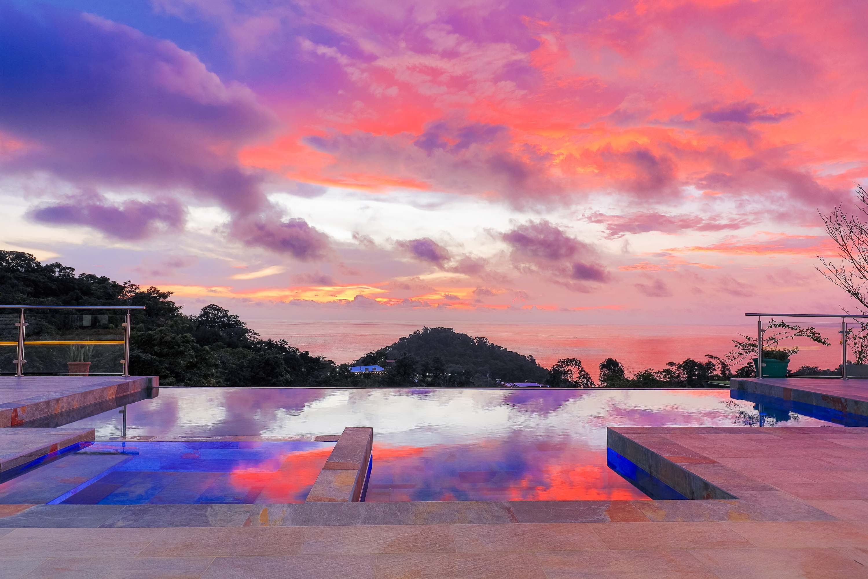 The main house opens up to a huge 2000 square foot terrace with the most amazing deep emerald pool where you can enjoy the sunset and sip on your favorite tropical drink. The pool also has a jacuzzi that sits inside the pool.